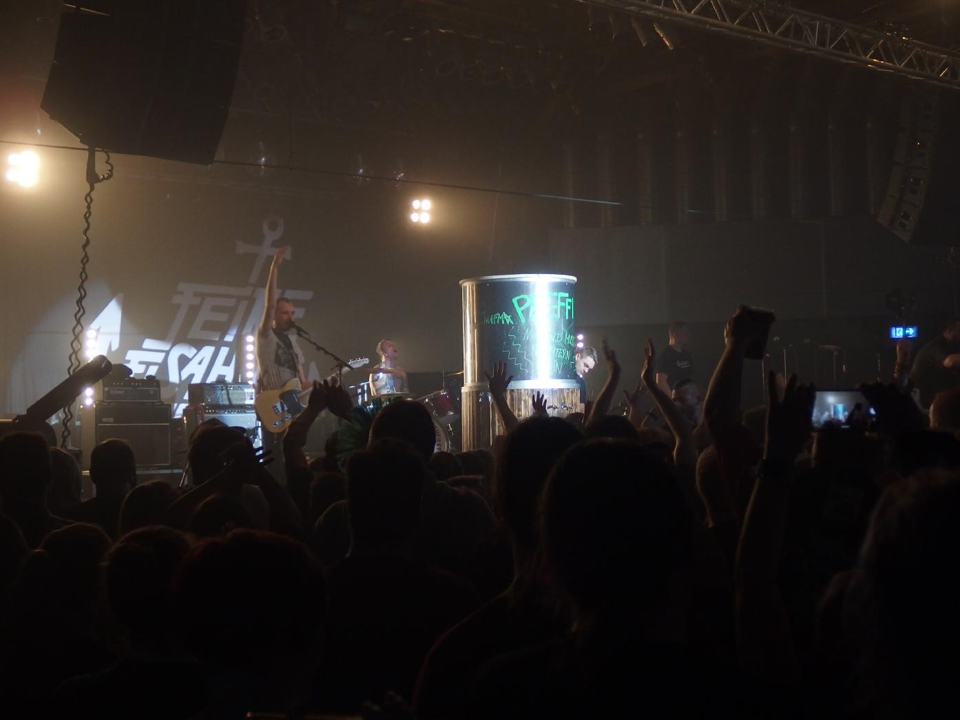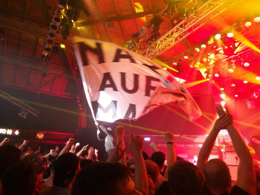 Aber natürlich wurde auch das Partypublikum angesprochen. Es gab Gummi-Boot-Diving, einen Pfeffi-Spender, das Publikum durfte mit auf die Bühne und auch Flaggen wurden geschwenkt. Zwar divte Monchi nicht in die Menge, aber das muss ja auch nicht immer sein. Musikalisch lag der Fokus auf den letzten beiden Alben, aber auch das Debüt wurde bedacht. Nach dem regulären Set gabs noch zwei Zugabensets, die es meines Erachtens nicht mehr gebraucht hätte, denn alle Hits wurden schon vorher gespielt. Und bei diesem Konzert wurde mir erst bewusst, wie viele Hits die Band hat: Wut (sogar mit Rap-Passage), Warten auf das Meer, das obligatorische Komplett im Arsch, Für diese eine Nacht, Bleiben oder gehen… Wahnsinn!