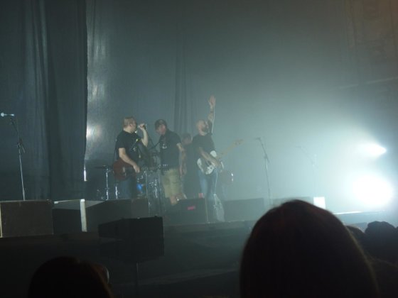 Und dann gings auch schon los, gings auch schon los, heute Nacht… Natürlich mit den beiden Megahits Alles auf Rausch und Zurück in unserer Stadt. Ziemlich weit vor im Gewühle waren dann auch die ersten paar Songs im Pogorausch vergangen. Gerade zu Beginn wurden einige Kracher ausgepackt… Das trocknet die Kehle aus und es ging zum Bierstand. das kostete mich zwei Songs… Da merkt man halt auch in welchen Dimensionen die Band heute spielt. Damit kommt man aber leider auch zur eigentlichen Crux des Abends… Natürlich kann man nicht erwarten, das dann alle Leute auf einer Wellenlänge sind… Aber wenn ich in „meiner Stadt“ dann nur eine Handvoll Leute erkenne, bei einem 3.500er Publikum, naja, dann kommt man so ins Grübeln. Da sind dann die Festivalfans, die Spaßjugend und plötzlich laufen da Jungspunde mit nacktem Oberkörper rum und es wird großspurig ein Circle Pit angekündigt, wo sich dann drei, vier Typen gegenseitig hochleben lassen. Und dieses bescheuerte Hinknien, wie bei den Onkelz…