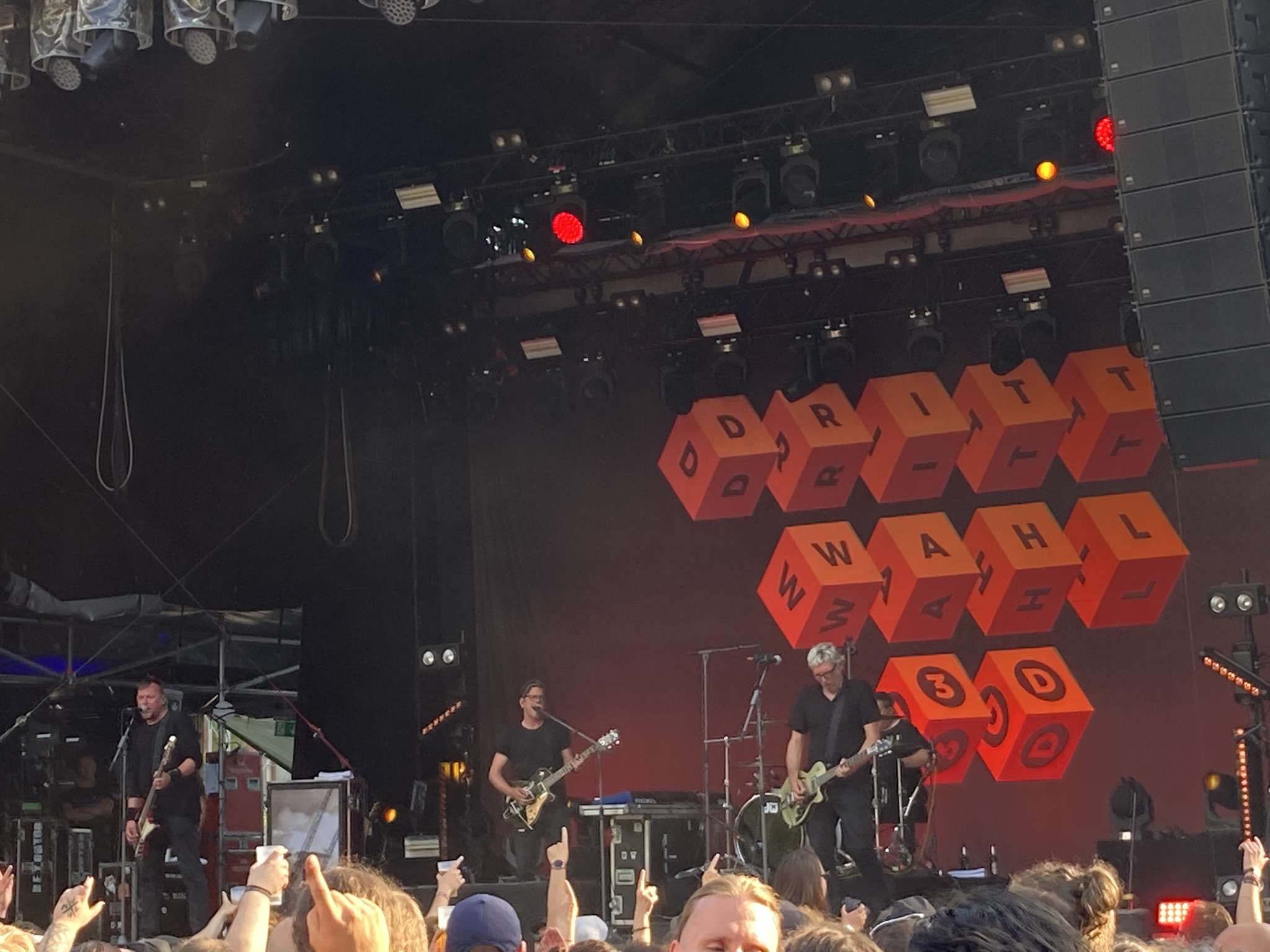 Den Lobpegel muss ich nun allerdings etwas runterdrehen, denn mit Dritte Wahl betraten zwar alte Helden von mir die Bühne, dennoch war es eher so, als wenn es nur noch Schatten eben dieser waren. Klar, musikalisch haben sie, seit ich sie Mitte der 90er das erste Mal live gesehen habe, ordentlich was drauf gepackt und das bewiesen sie hier auch wieder. Dennoch vermisste ich etwas die Energie, die ich an ihnen immer so geliebt habe. Auch ließen sie eine gewisse Kante vermissen, was ihnen auch immer das bisschen mehr an Härte beschert hat. Ein Grund dafür war auch sicherlich die Setlist, die mehr mit neueren Songs, als mit Klassikern aufwartete. Selbst ein Klassiker wie Mainzer Straße fehlte leider. Anstatt also im Pogo zu versinken, schaute ich auf ein Publikum, welches sich bei Liedern wie Zeit bleib stehen oder Fliegen im Hymnengesang verlor. Aber gut, vielleicht ist es auch das was viele mittlerweile wollen. Ich bin da anscheinend etwas gestrig.