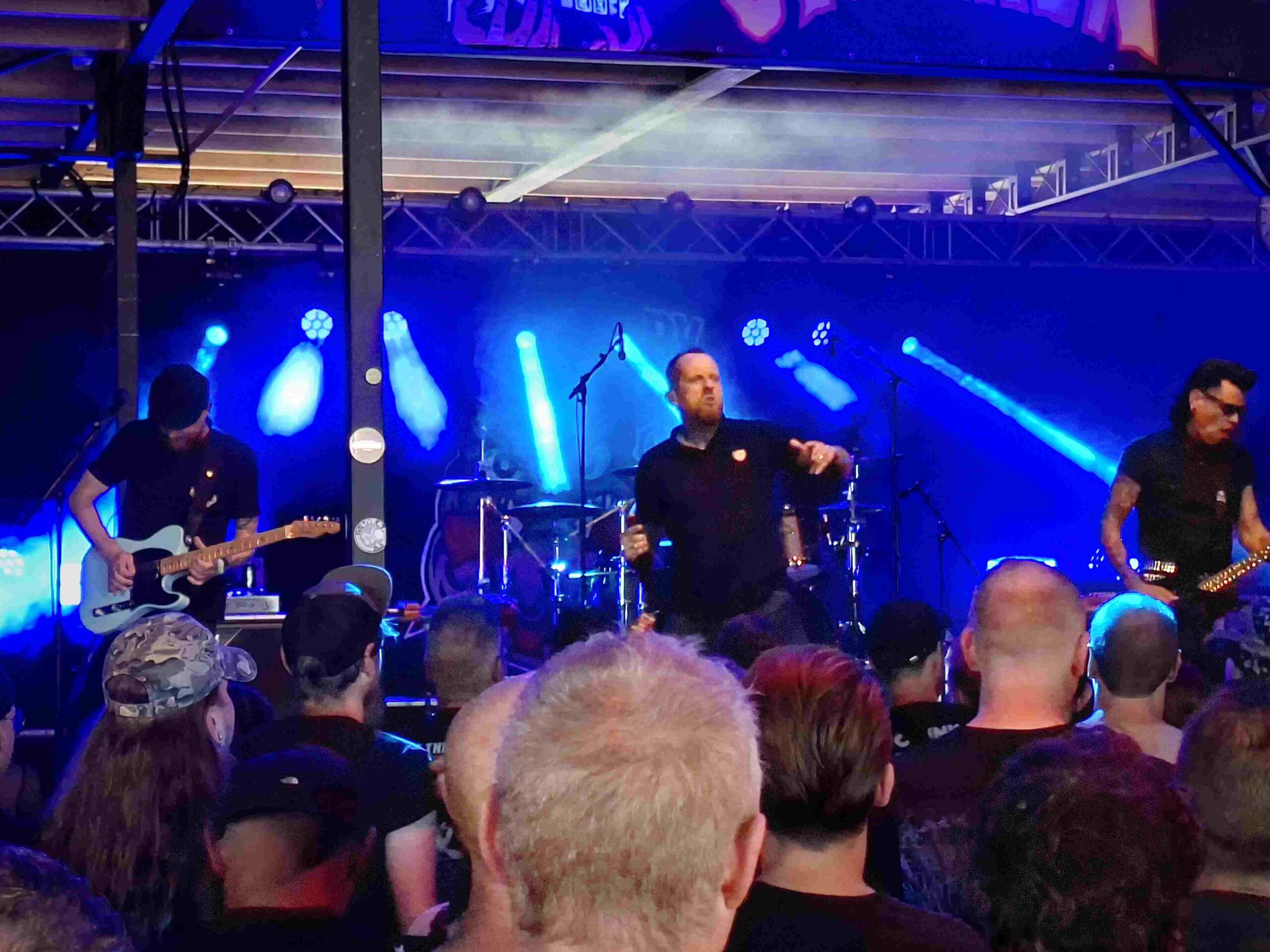Eine weitere Band, auf die ich mich im Vorfeld riesig gefreut hatte, waren die Street Dogs. Das letzte Mal, als ich sie gesehen hatte, war auf der Persistence Tour 2019 in Oberhausen. Leider ging damals kurz nach dem Street Dogs ihren Auftritt begonnen hatten, der Feueralarm los. Wir mussten alle die Halle verlassen, und wegen der Timeslots konnten sie, nachdem die Halle wieder begehbar war, nicht mehr viel spielen. Ärgerlich! Jedenfalls hat man es bei Street Dogs mit Legenden zu tun. Craig Silverman, der unter anderem bei Agnostic Front, Slapshot und Blood For Blood gespielt hat. Und natürlich Mike McColgan der Mitbegründer und erster Sänger der Dropkick Murphys war. Die Street Dogs gaben von Anfang an alles. Klassiker? Welcher Song ist schon kein Klassiker? Punk Rock And Roll, Back To The World, Tobe’s Got A Drinking Problem….
