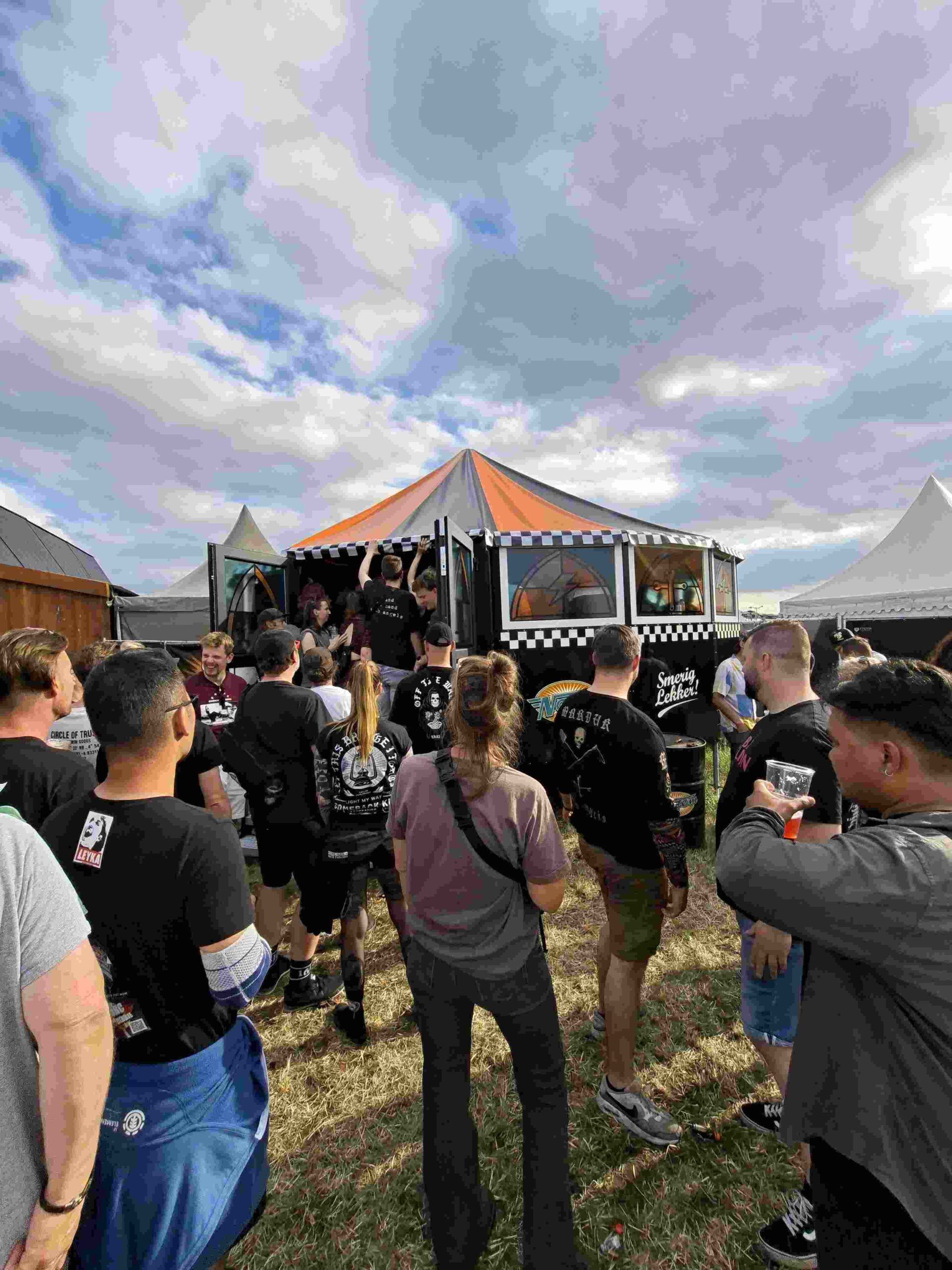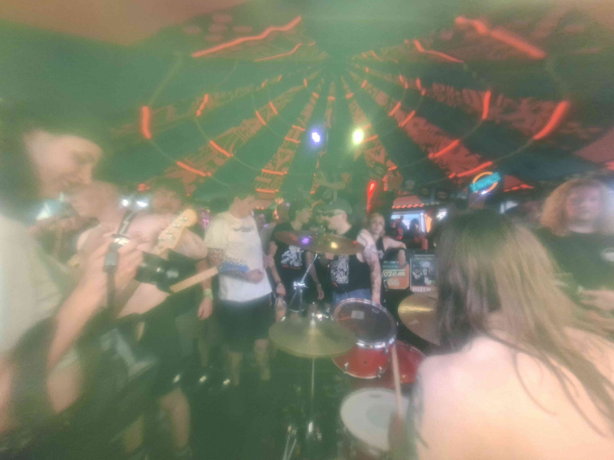 Nach dem Aufbau und ein paar Dosen kühlen Biers und einigen scharfen Mexikanern ging es aufs Infield, um sich Bands anzusehen. Wir waren ja nicht zum Spaß hier.