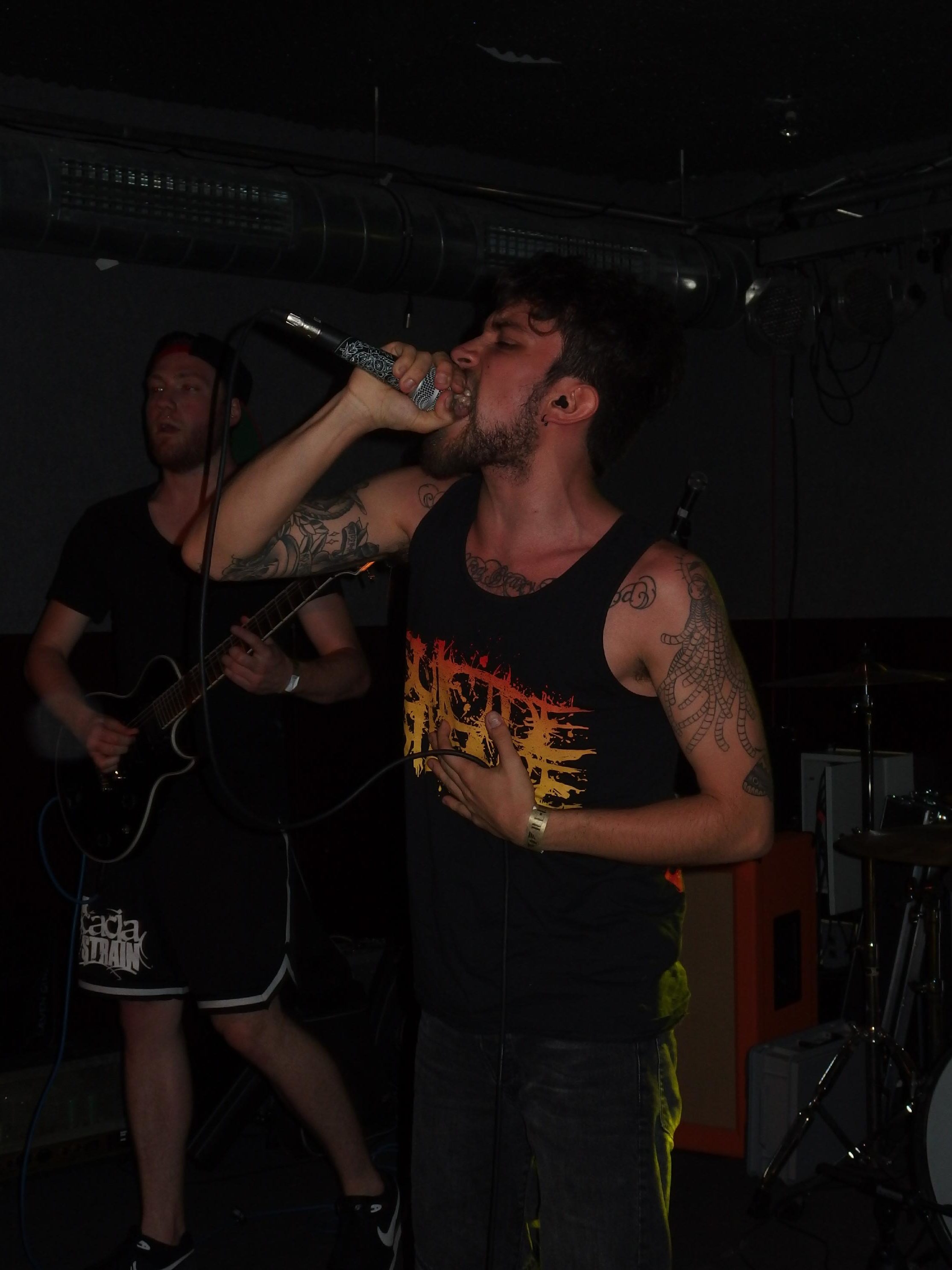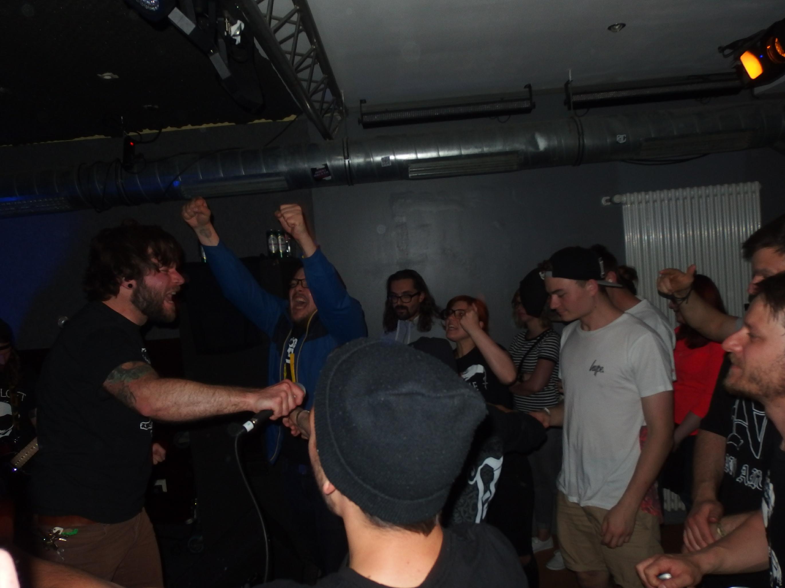 Words of Revolt aus Baden-Württemberg eröffneten den Abend und wollten so rein musikalisch nicht reinpassen. Behaupten sie doch „eine Mischung aus klassischem Hardcore, modernem Melodic Hardcore und brutalen Vocals“ zu spielen, handelt es sich doch eher um Metalcore mit Death-Metal-Vocals. Naja, ich will jetzt nicht allzusehr über die Band meckern. Immerhin habe ich mir ihren Gig bis fast zum Ende angeguckt, aber warm wurde ich mit der Musik nicht wirklich.