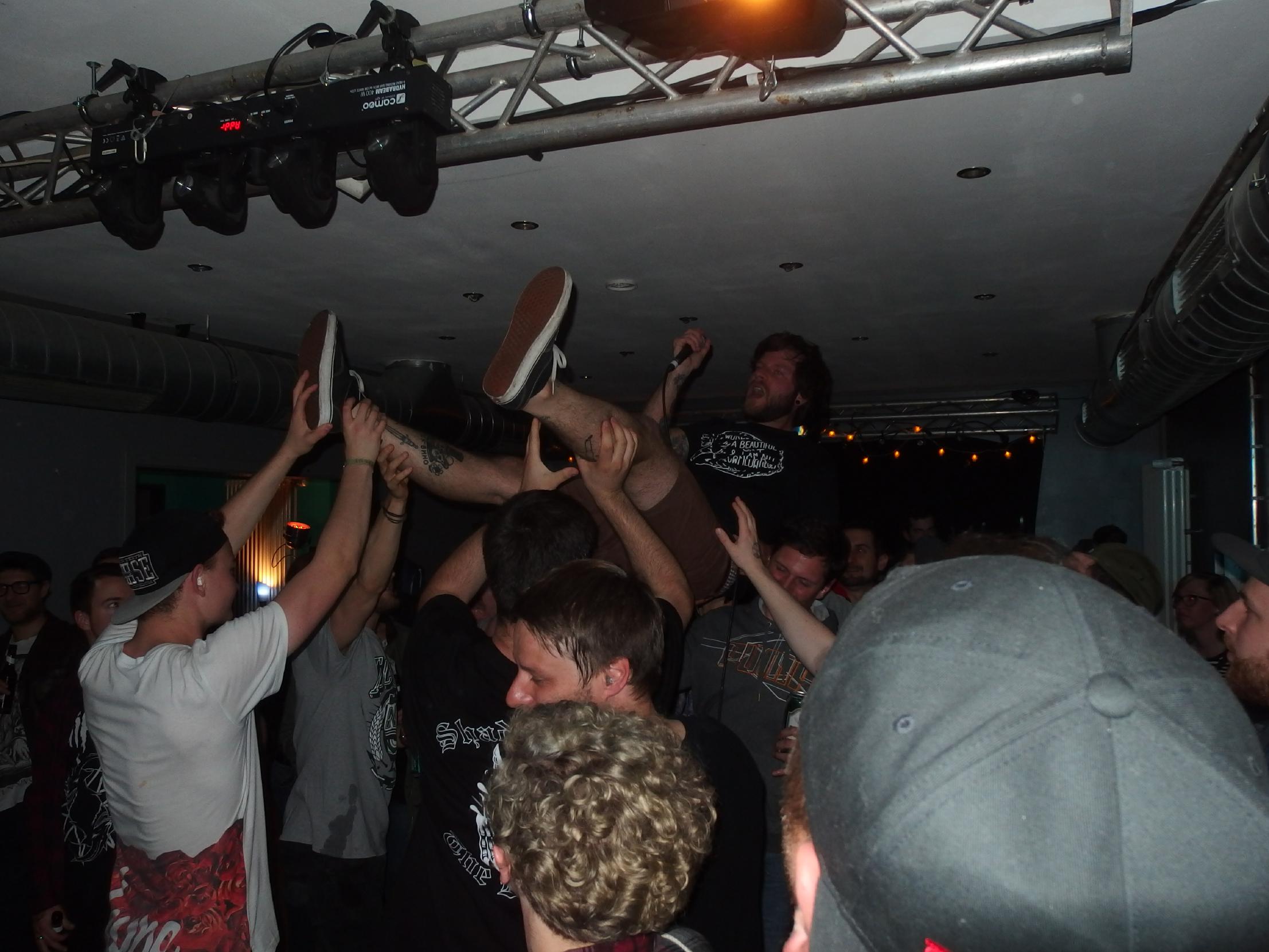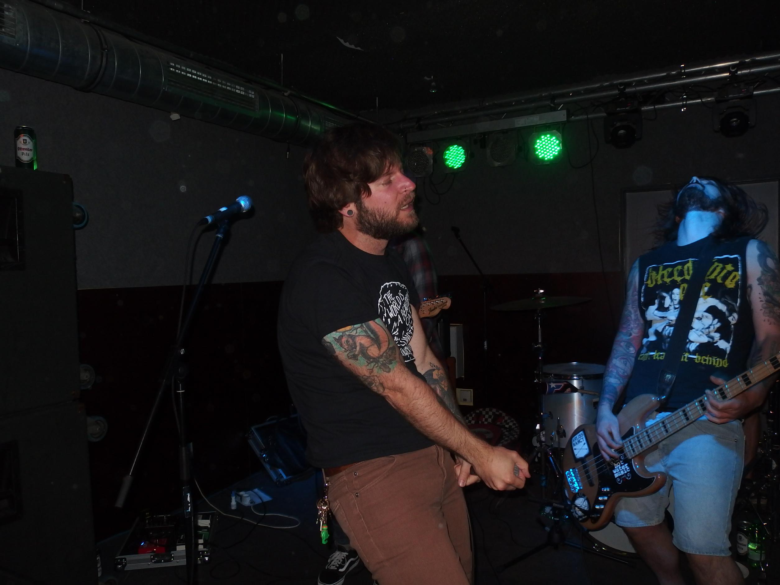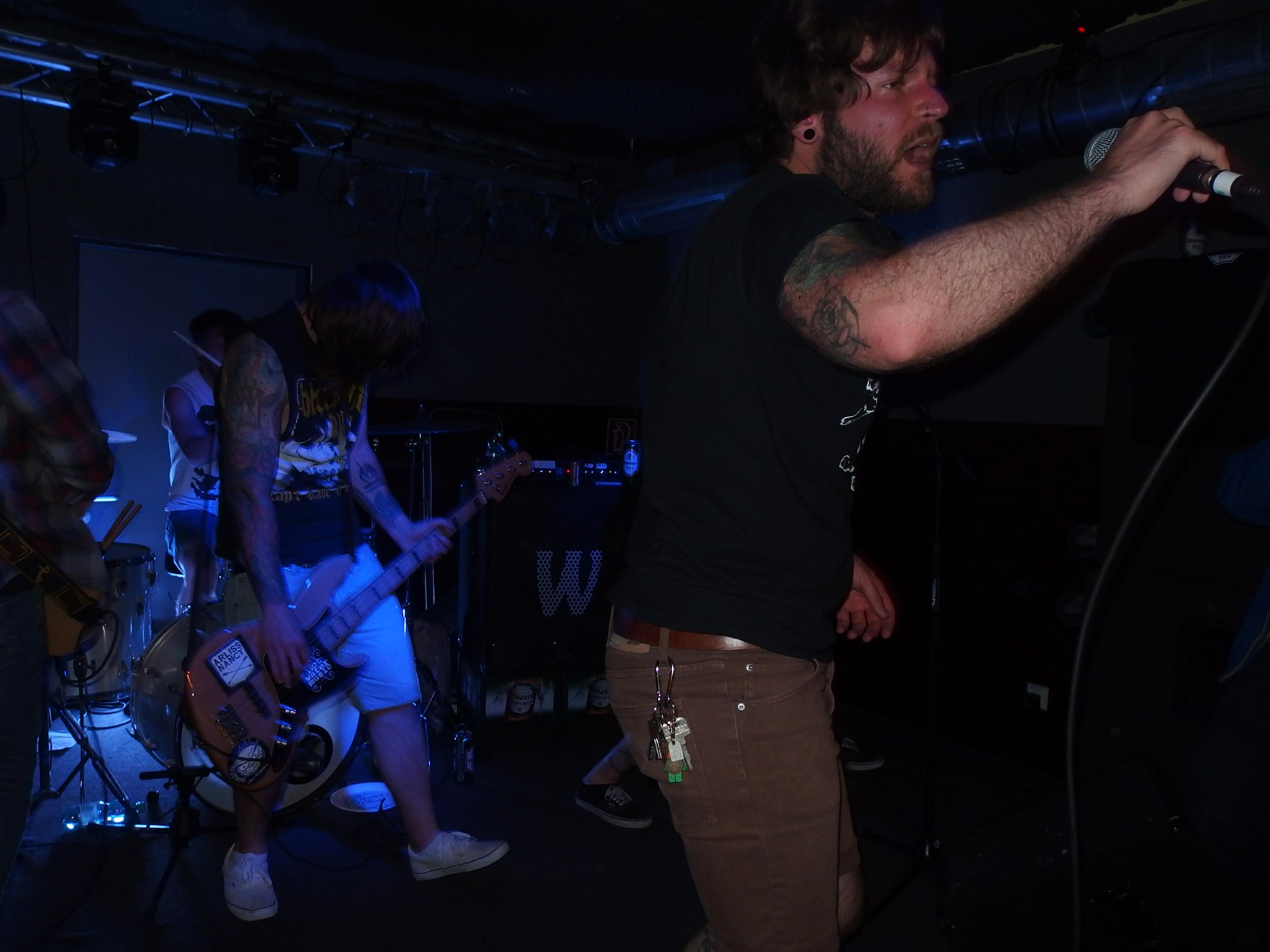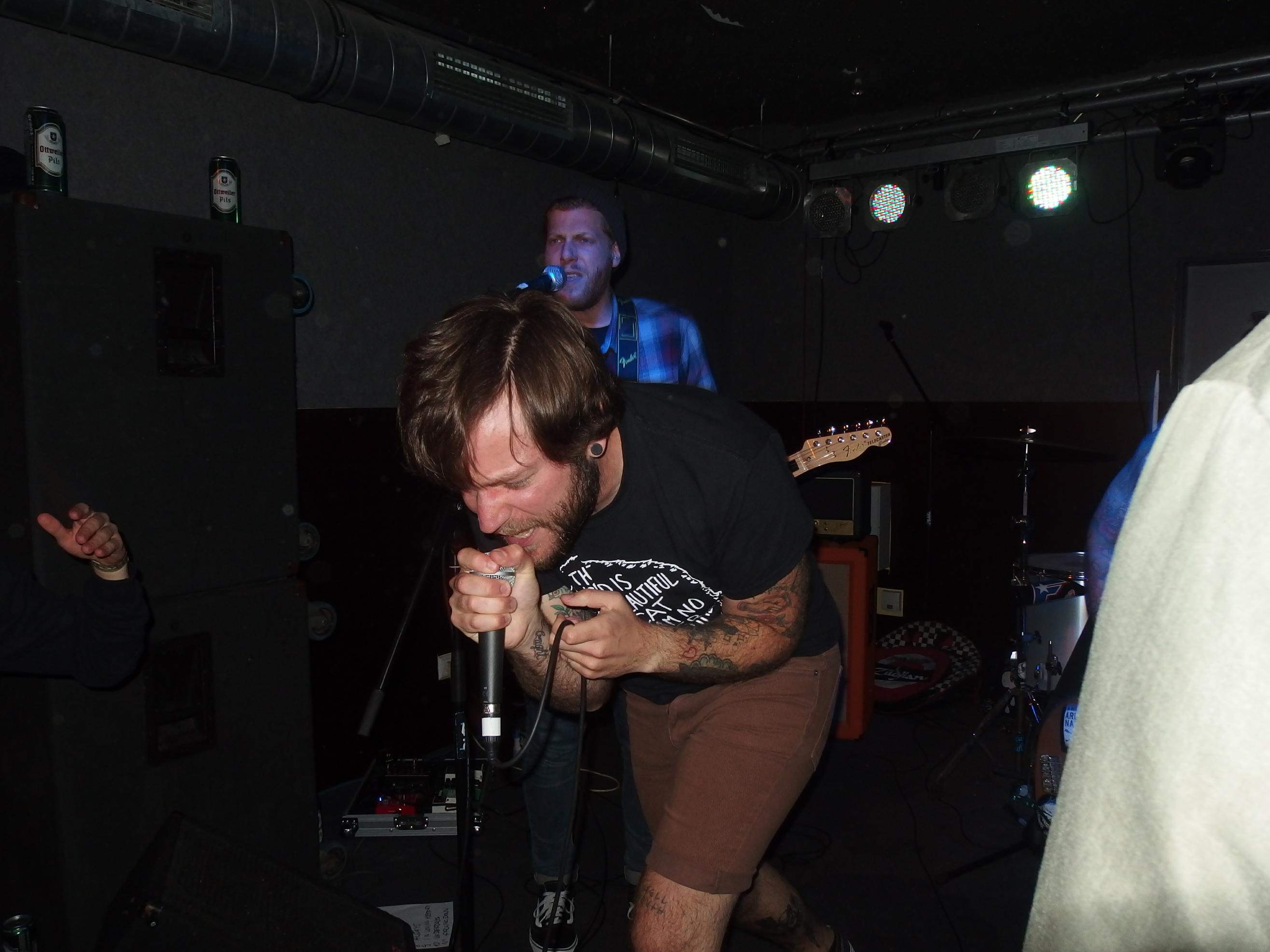 atmen, weiter… aus Landau sind so Indie, die haben nichtmal ein Facebook-Profil. Dafür hammergeile Songs. So ein bisschen in Richtung alte Pascow oder Kaput Krauts mit ein bisschen mehr Hardcore, tiefsinnigen Texten und schönem Understatement. Am Tag vorher noch in Trier unterwegs und etwas verkatert lieferte die Band mit den deutschen Texten einen soliden Gig ab. Ein Demo ist über ihre Bandcamp-Seite erhältlich. Die vier Songs wurden glaube ich auch alle gespielt, plus ein paar bisher noch nicht erhältliche, zum Beispiel das famose Frankfurt/Oder, das sich mit der Tristesse der Großstadt auseinandersetzt, oder das nicht minder geniale Zähne brechen. Die Band sollte man im Auge behalten.