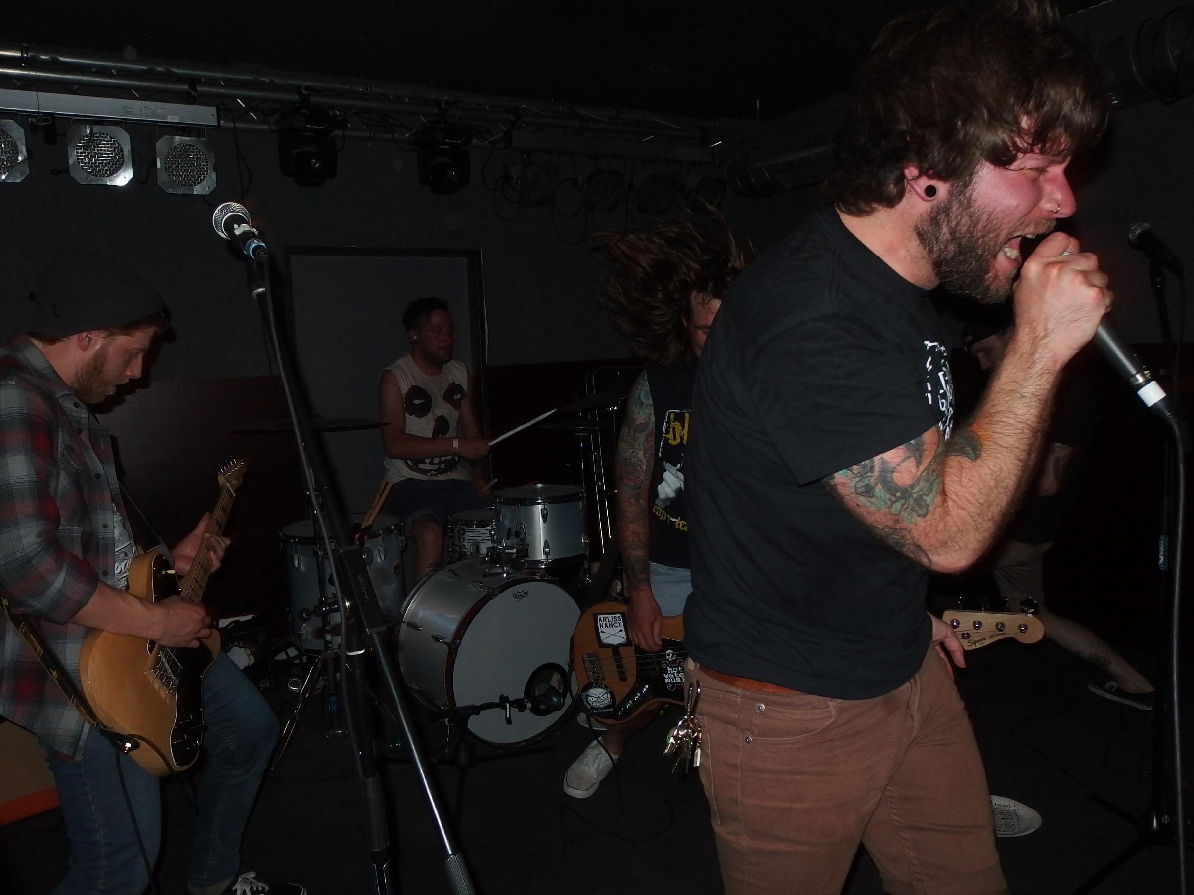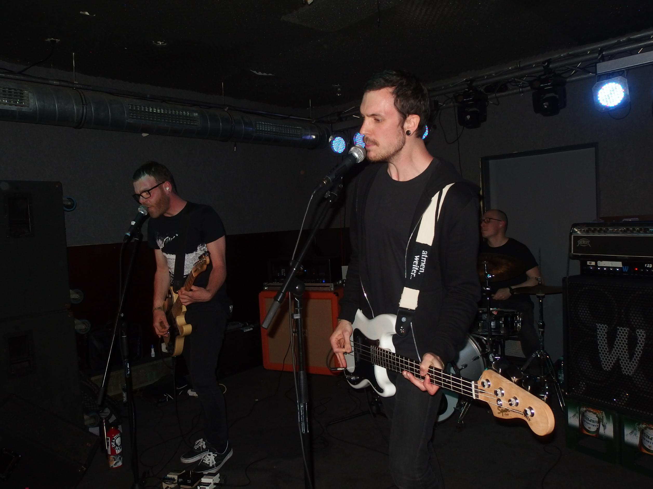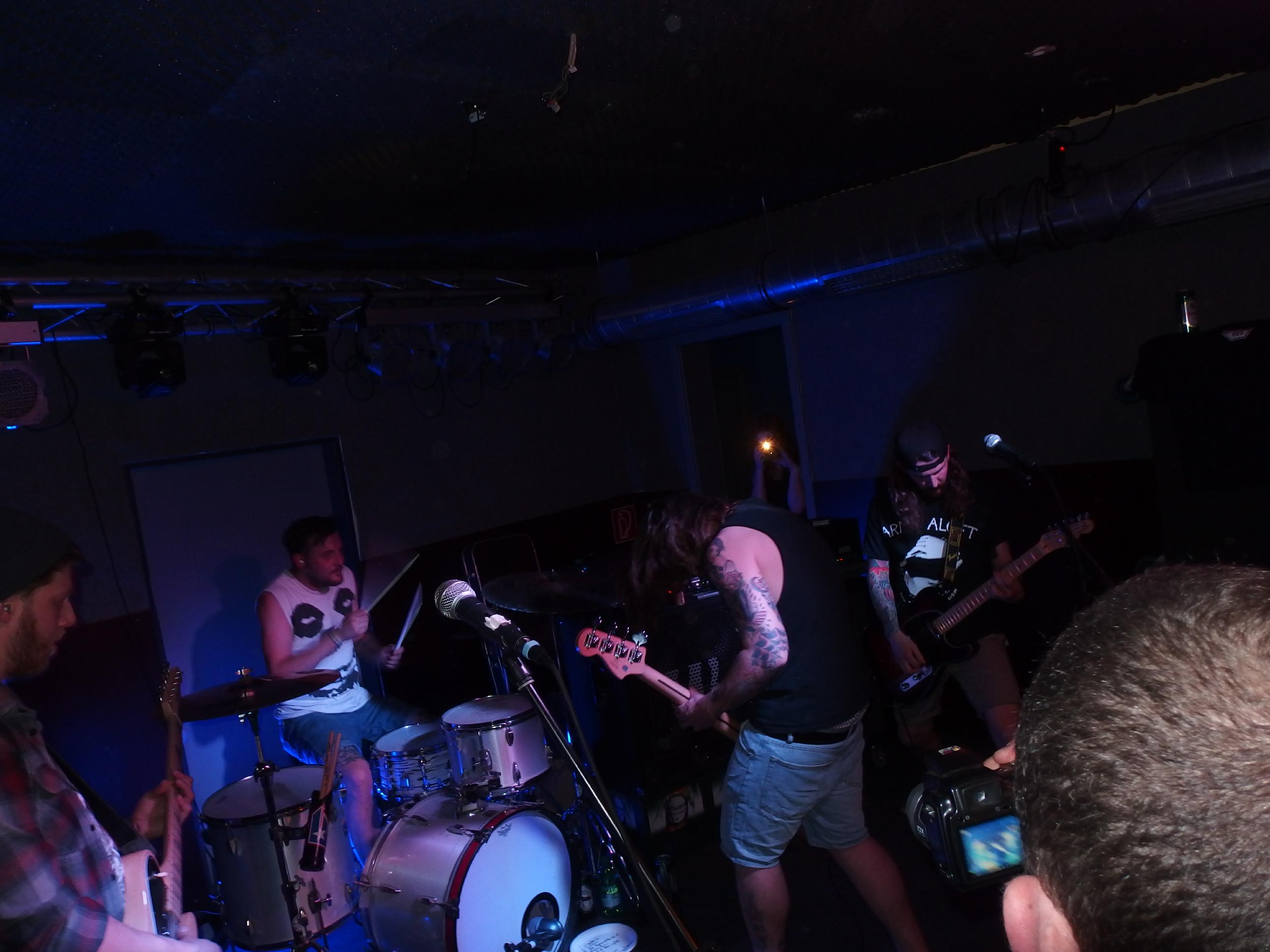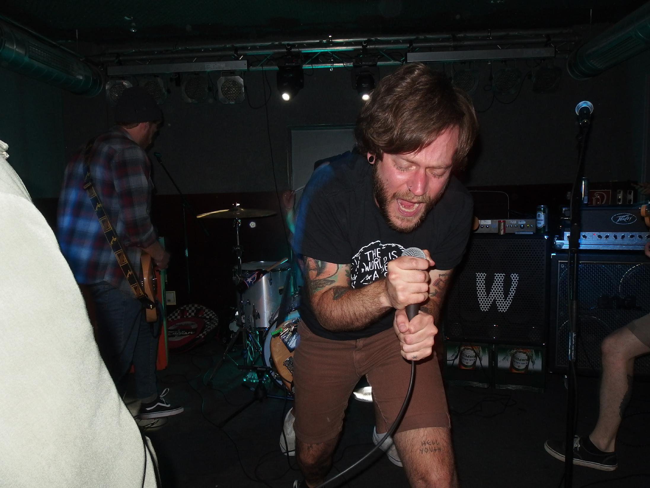 atmen, weiter… aus Landau sind so Indie, die haben nichtmal ein Facebook-Profil. Dafür hammergeile Songs. So ein bisschen in Richtung alte Pascow oder Kaput Krauts mit ein bisschen mehr Hardcore, tiefsinnigen Texten und schönem Understatement. Am Tag vorher noch in Trier unterwegs und etwas verkatert lieferte die Band mit den deutschen Texten einen soliden Gig ab. Ein Demo ist über ihre Bandcamp-Seite erhältlich. Die vier Songs wurden glaube ich auch alle gespielt, plus ein paar bisher noch nicht erhältliche, zum Beispiel das famose Frankfurt/Oder, das sich mit der Tristesse der Großstadt auseinandersetzt, oder das nicht minder geniale Zähne brechen. Die Band sollte man im Auge behalten.