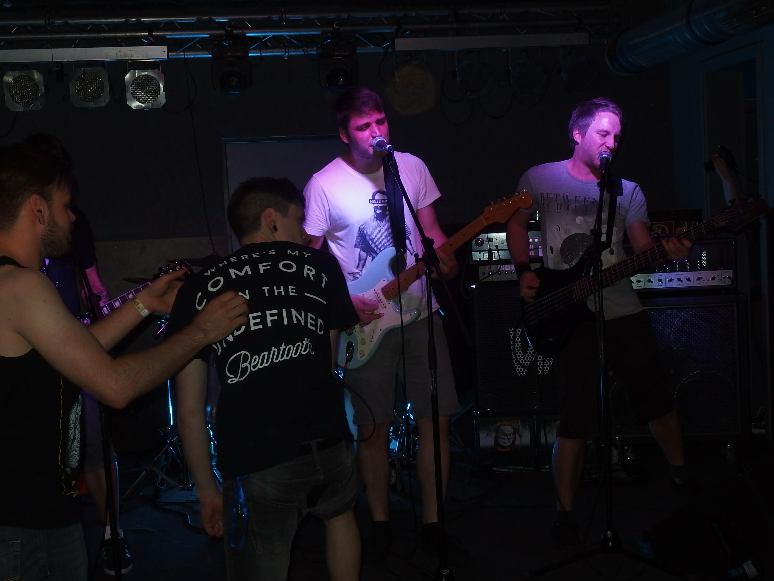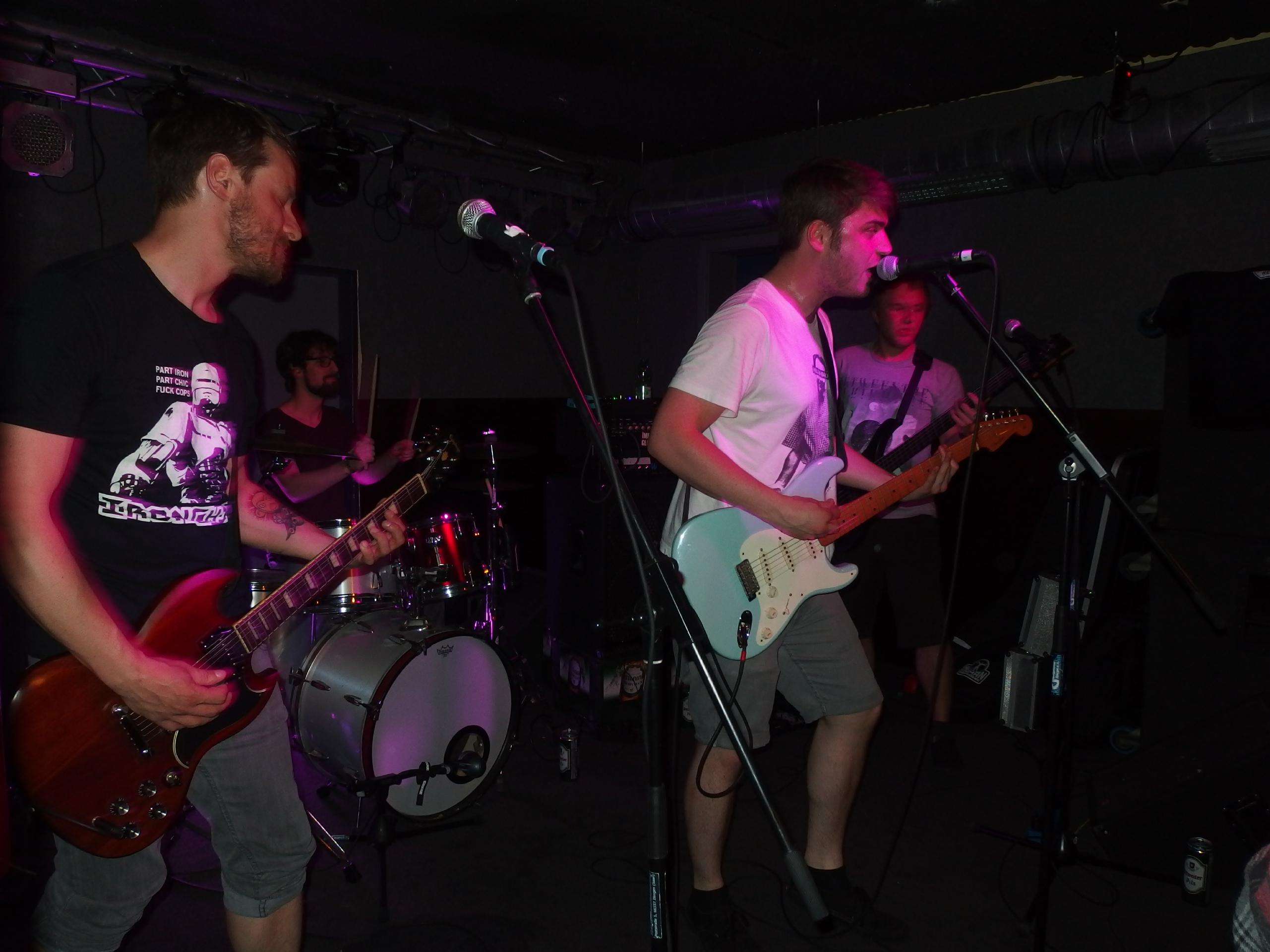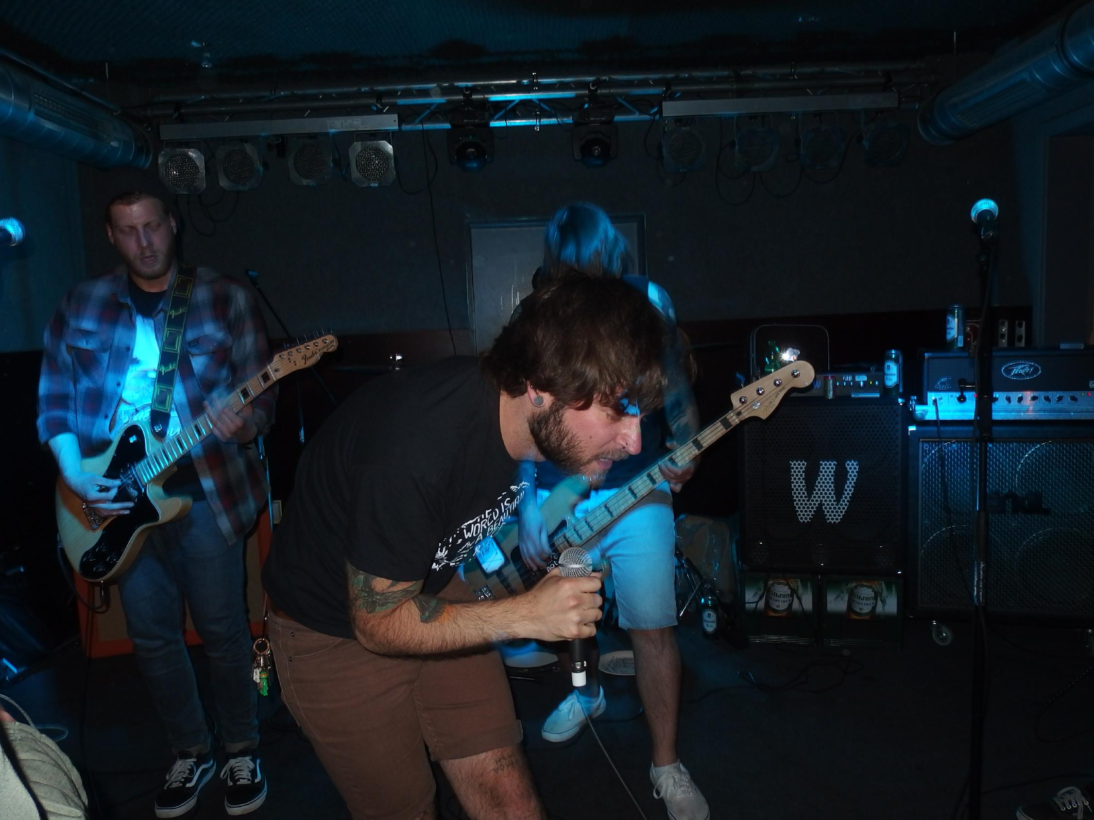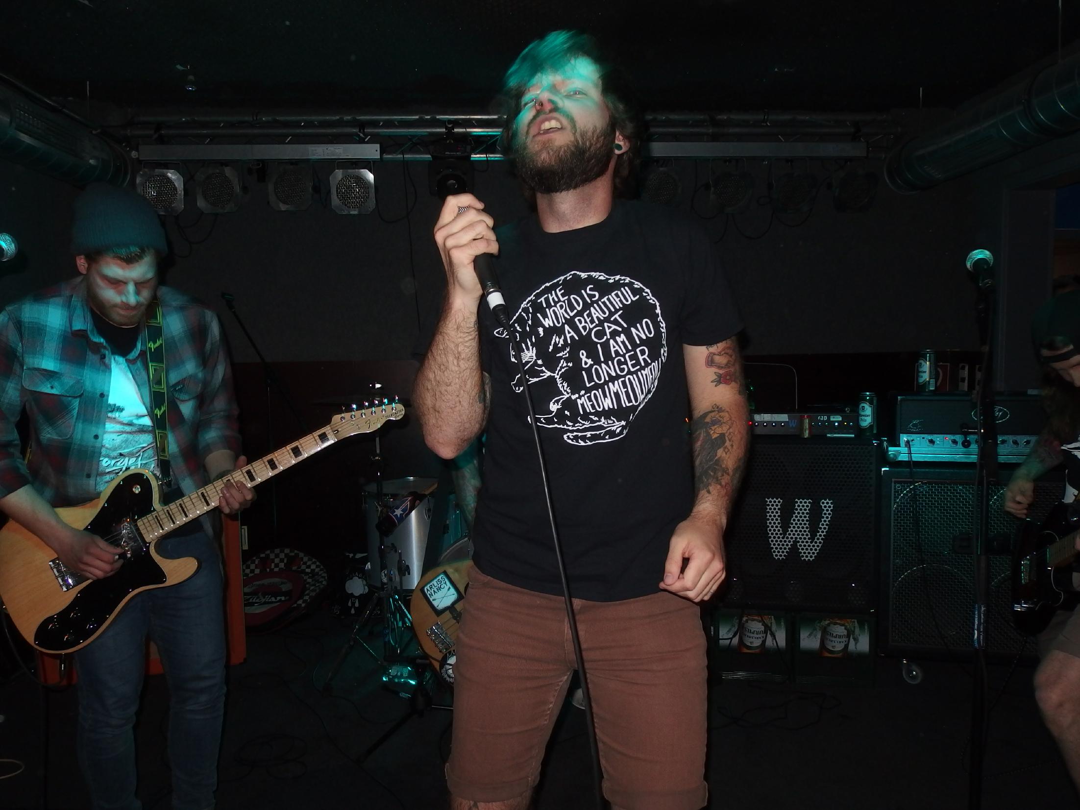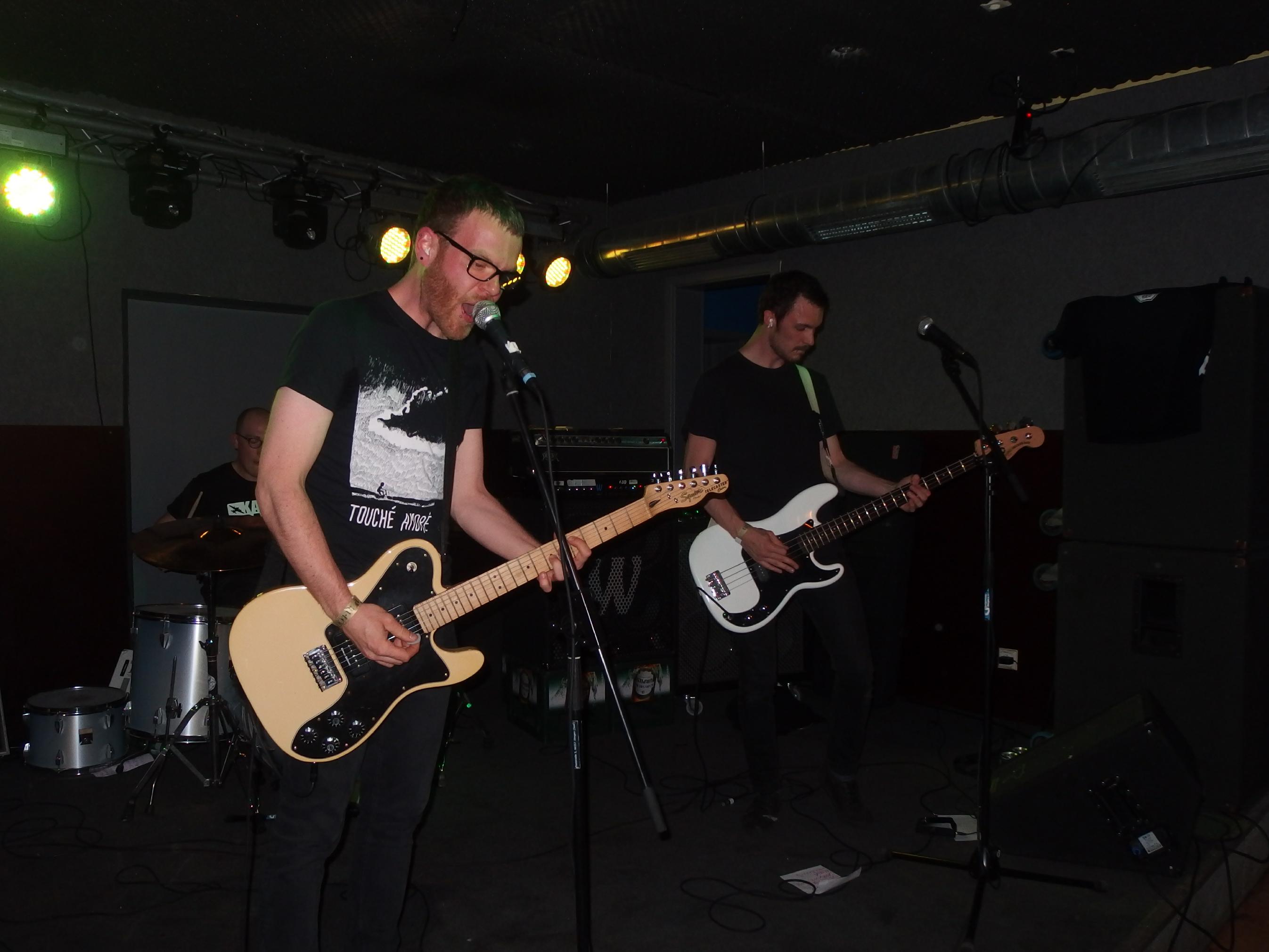 atmen, weiter… aus Landau sind so Indie, die haben nichtmal ein Facebook-Profil. Dafür hammergeile Songs. So ein bisschen in Richtung alte Pascow oder Kaput Krauts mit ein bisschen mehr Hardcore, tiefsinnigen Texten und schönem Understatement. Am Tag vorher noch in Trier unterwegs und etwas verkatert lieferte die Band mit den deutschen Texten einen soliden Gig ab. Ein Demo ist über ihre Bandcamp-Seite erhältlich. Die vier Songs wurden glaube ich auch alle gespielt, plus ein paar bisher noch nicht erhältliche, zum Beispiel das famose Frankfurt/Oder, das sich mit der Tristesse der Großstadt auseinandersetzt, oder das nicht minder geniale Zähne brechen. Die Band sollte man im Auge behalten.