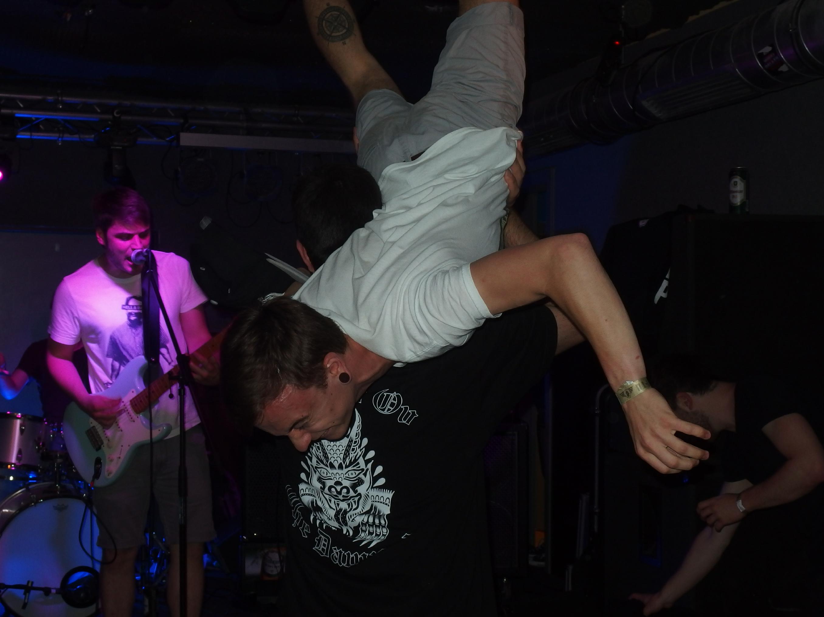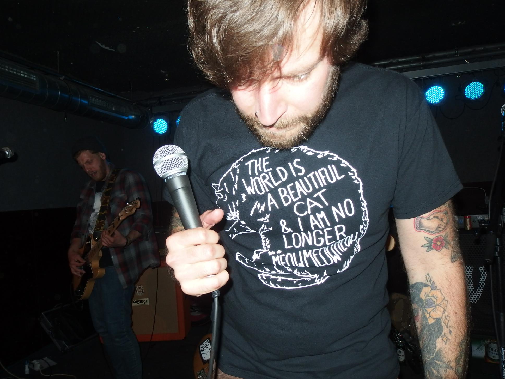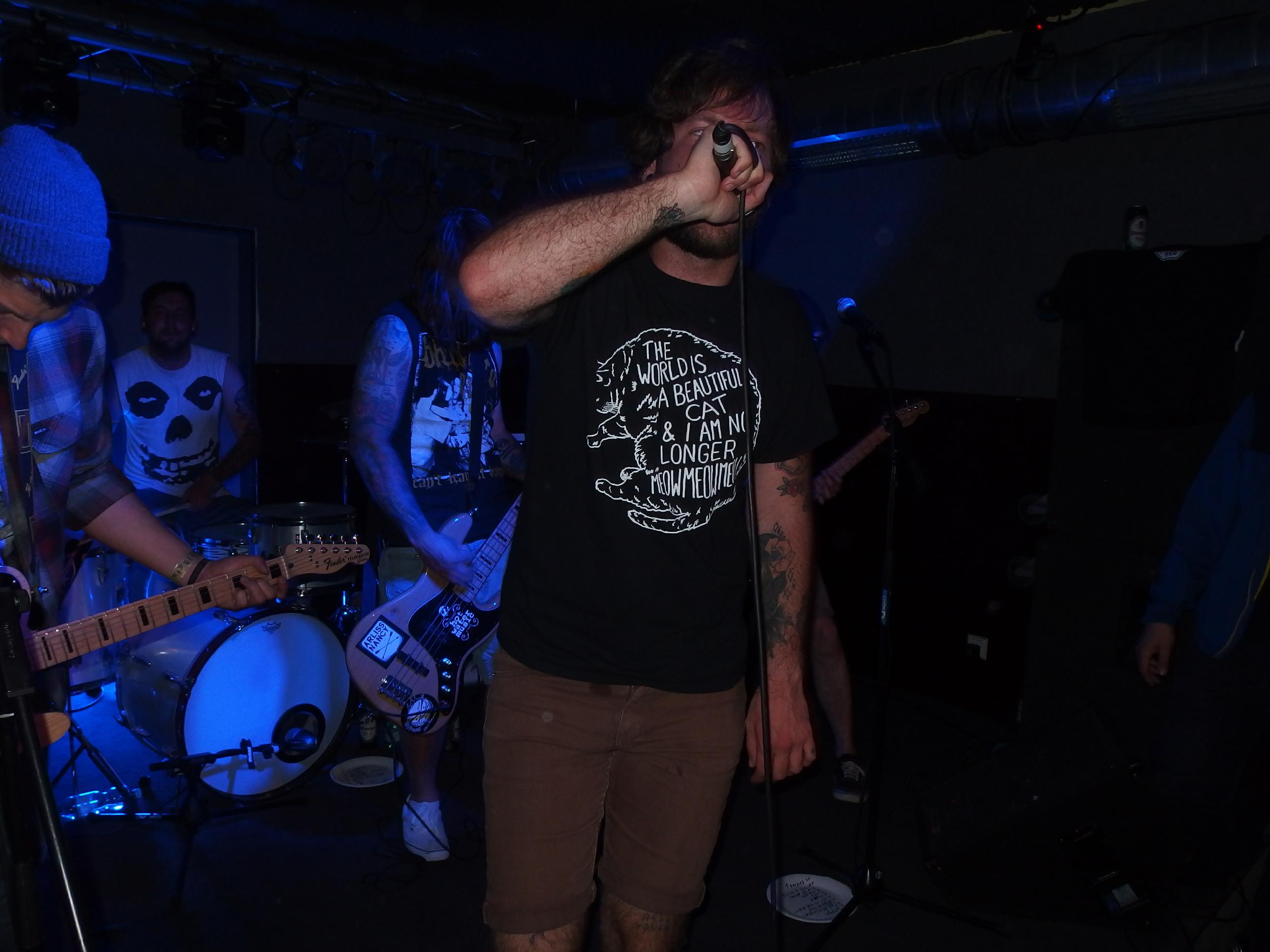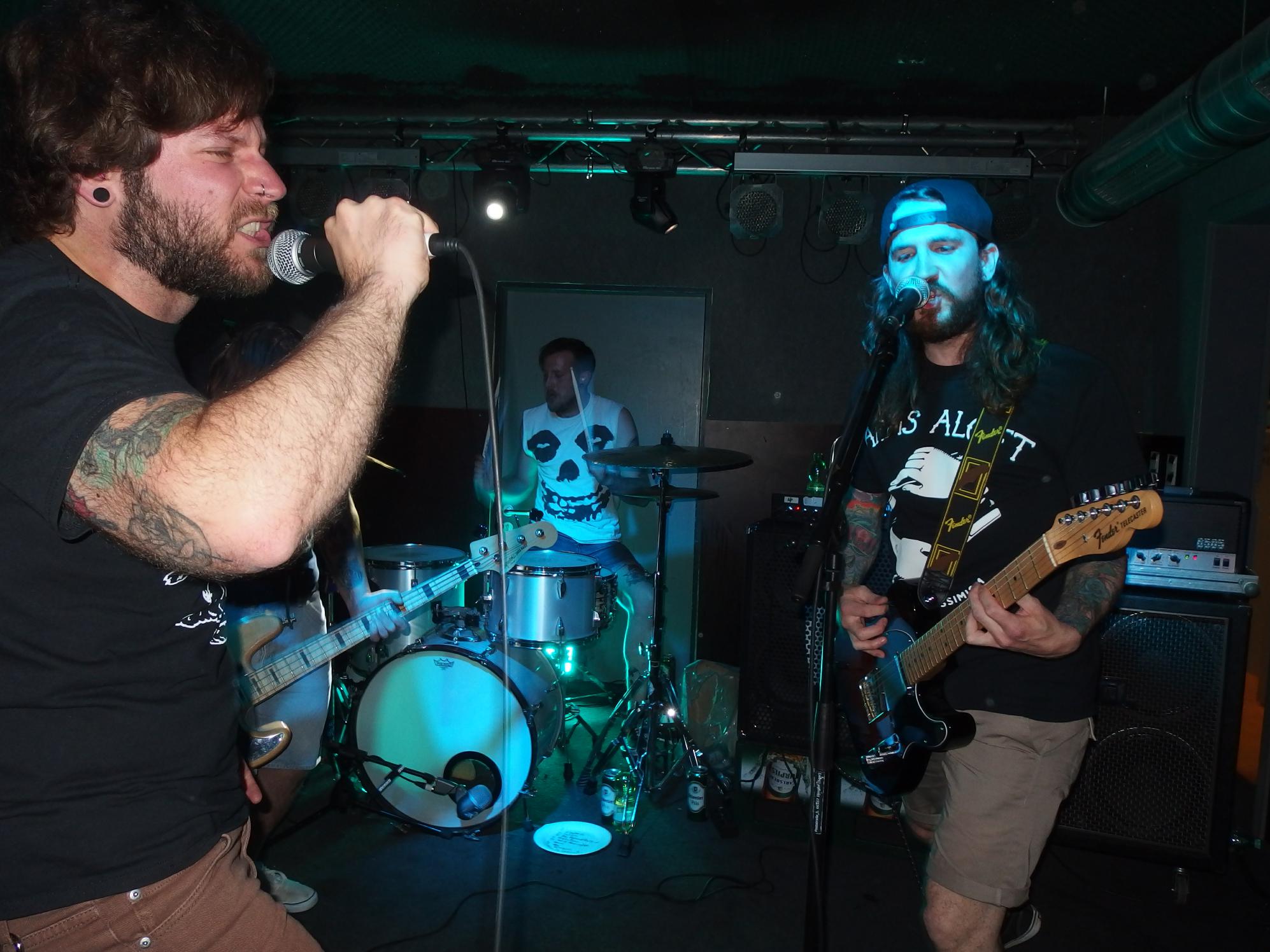 atmen, weiter… aus Landau sind so Indie, die haben nichtmal ein Facebook-Profil. Dafür hammergeile Songs. So ein bisschen in Richtung alte Pascow oder Kaput Krauts mit ein bisschen mehr Hardcore, tiefsinnigen Texten und schönem Understatement. Am Tag vorher noch in Trier unterwegs und etwas verkatert lieferte die Band mit den deutschen Texten einen soliden Gig ab. Ein Demo ist über ihre Bandcamp-Seite erhältlich. Die vier Songs wurden glaube ich auch alle gespielt, plus ein paar bisher noch nicht erhältliche, zum Beispiel das famose Frankfurt/Oder, das sich mit der Tristesse der Großstadt auseinandersetzt, oder das nicht minder geniale Zähne brechen. Die Band sollte man im Auge behalten.