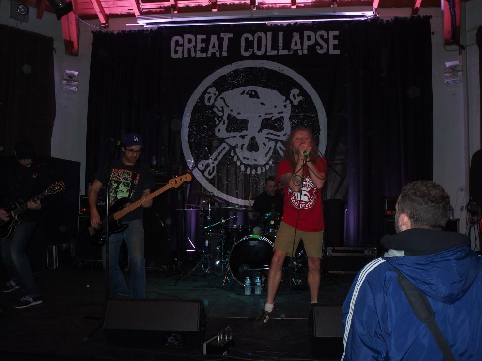 Great Collapse bestehen aus ehemaligen Mitgliedern von unter anderem Death by Stereo und Rise Against. Der größte Pluspunkt ist sicherlich der ehemalige Strike-Anywhere-Frontmann Thomas Barnett, der gekonnt durch den Abend führte. Wie ein Derwisch hottete er über die Bühne und ließ seine meterlangen Dreads fliegen. Aber auch die Ansagen hatten es in sich: gegen Nazis, gegen Trump und für eine linkere Politik. Man fühlte sich an selige Zeiten erinnert, als Hardcore noch eine Message hatte. Lang ists her. Great Collapse jedenfalls sind eine wunderbare Band mit mitreißenden Songs.