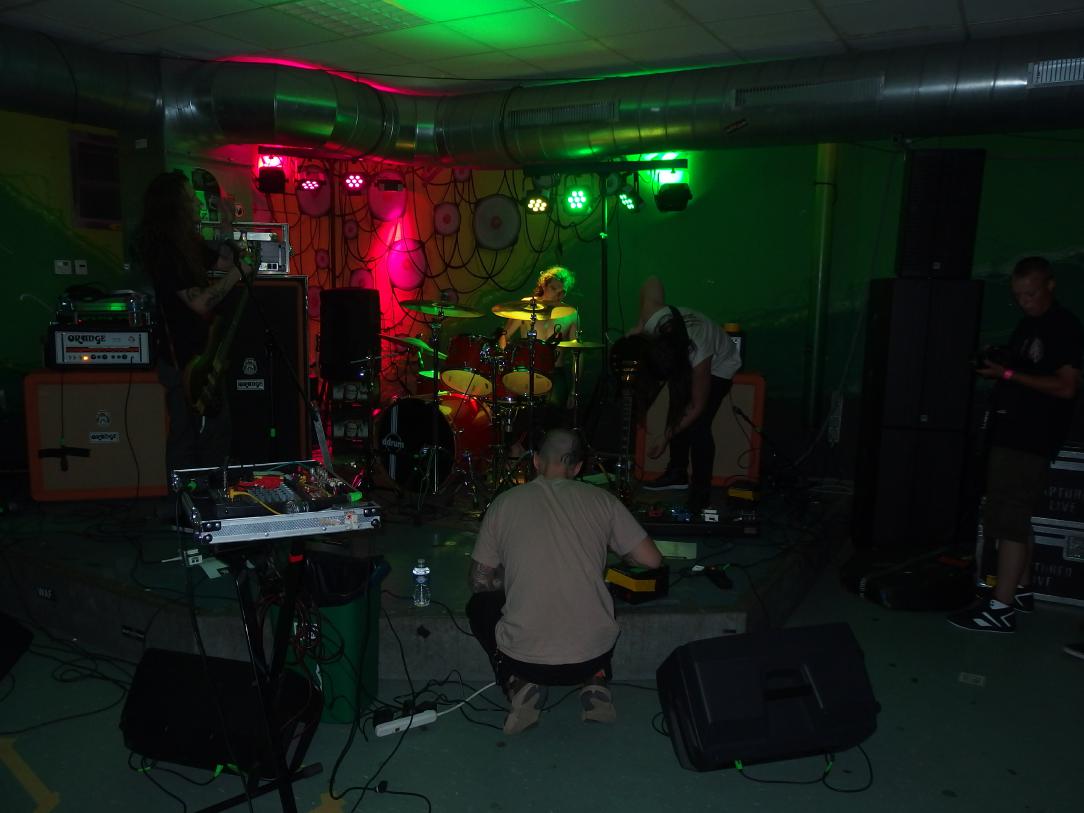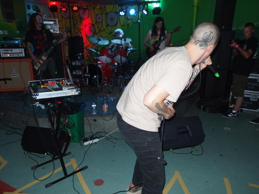 Die waren dann bei Full of Hell ziemlich schnell verschwunden. Wer die Band kennt: hier regiert unbarmherziger Grindcore mit abartigen Vokills, eine Freude für alle Beteiligten. Aber auch hier ein Wermutstropfen: Sänger Dylan Walker war krank. Doch als Grindcore-Band von Welt lässt man einen Gig nicht ausfallen. Das führte zu einem verkürzten Set, aber auch dazu, dass er dezent zweimal kotzte. Nein, nicht das Kotzen, wie man den Death-Metal-Gesang manchmal nennt, er kotzte wirklich, in einen Mülleimer, live, während des Gigs. Das nenn ich mal Commitment. Vielleicht gerade durch diesen Umstand ein besonderer Gig.