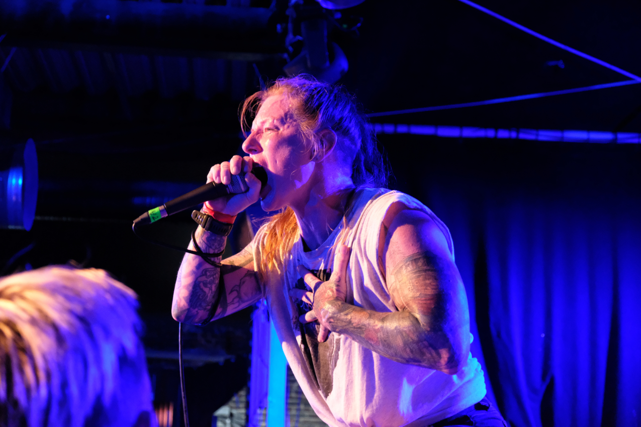 Als wir im Junkyard ankamen, standen die Kalifornier Drain bereits auf der Bühne. Die Truppe, welche mit einem exzellenten Debütalbum vor knapp 2 Jahren auf sich aufmerksam machte, zog alle Register und legte einen bärenstarken Auftritt hin. Eine heftige Mischung aus Moshparts, Metalriffs und der eigenwilligen Stimme von Frontmann Sammy prasselte auf die Zuhörerer:innen ein, die es mit ausgelassenen Bewegungen honorieren.