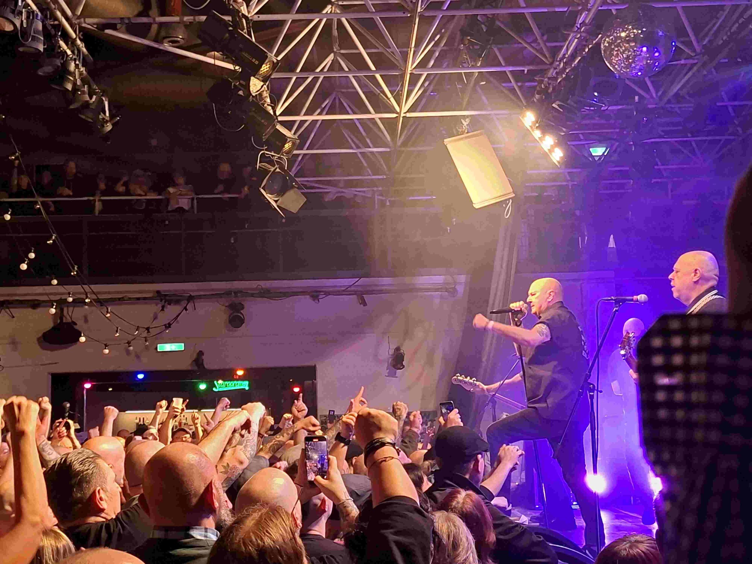 Nach recht kurzer Umbauphase standen Cock Sparrer auf der Bühne und begannen ihr Set klassischerweise mit Riot Squad. Das Publikum war direkt Feuer und Flamme, und wie es bei einem Konzert der Briten üblich ist, sangen alle direkt mit. Das sollte sich nicht groß über das ganze Set ändern. Cock Sparrer legten eine Spielfreude an den Tag, das war einfach unfassbar. Man sah, dass sie richtig Bock und richtig viel Spaß hatten. Dabei hatten sie einen super Sound und spielten sau tight.