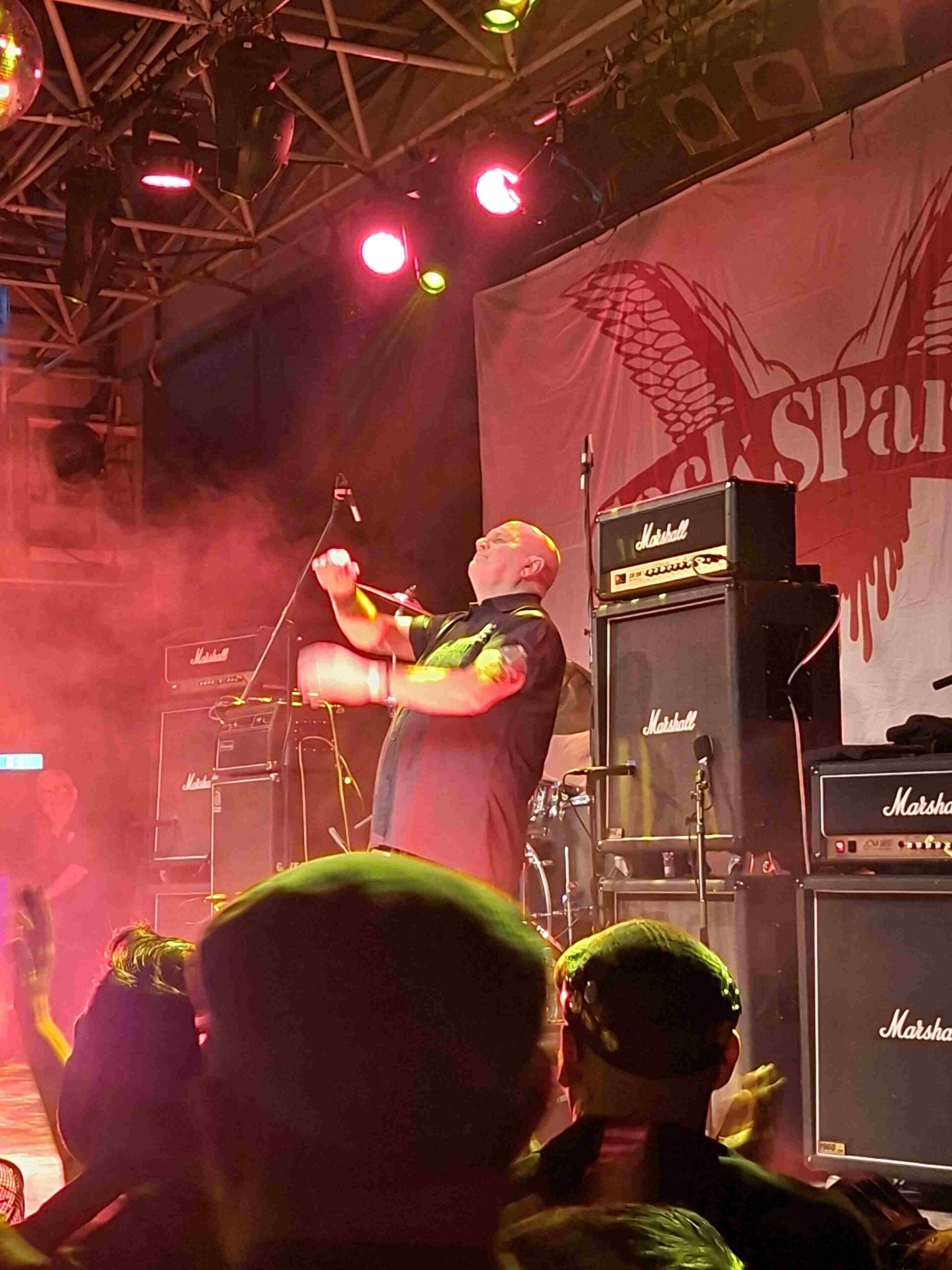 Letztendlich flogen einem hier nur Klassiker um die Ohren, und die Stimmung war stets gut. Jet von Buster Shuffle tauchte zwischendurch auch auf der Bühne auf und begleitete Cock Sparrer bei einem Song am Keyboard.