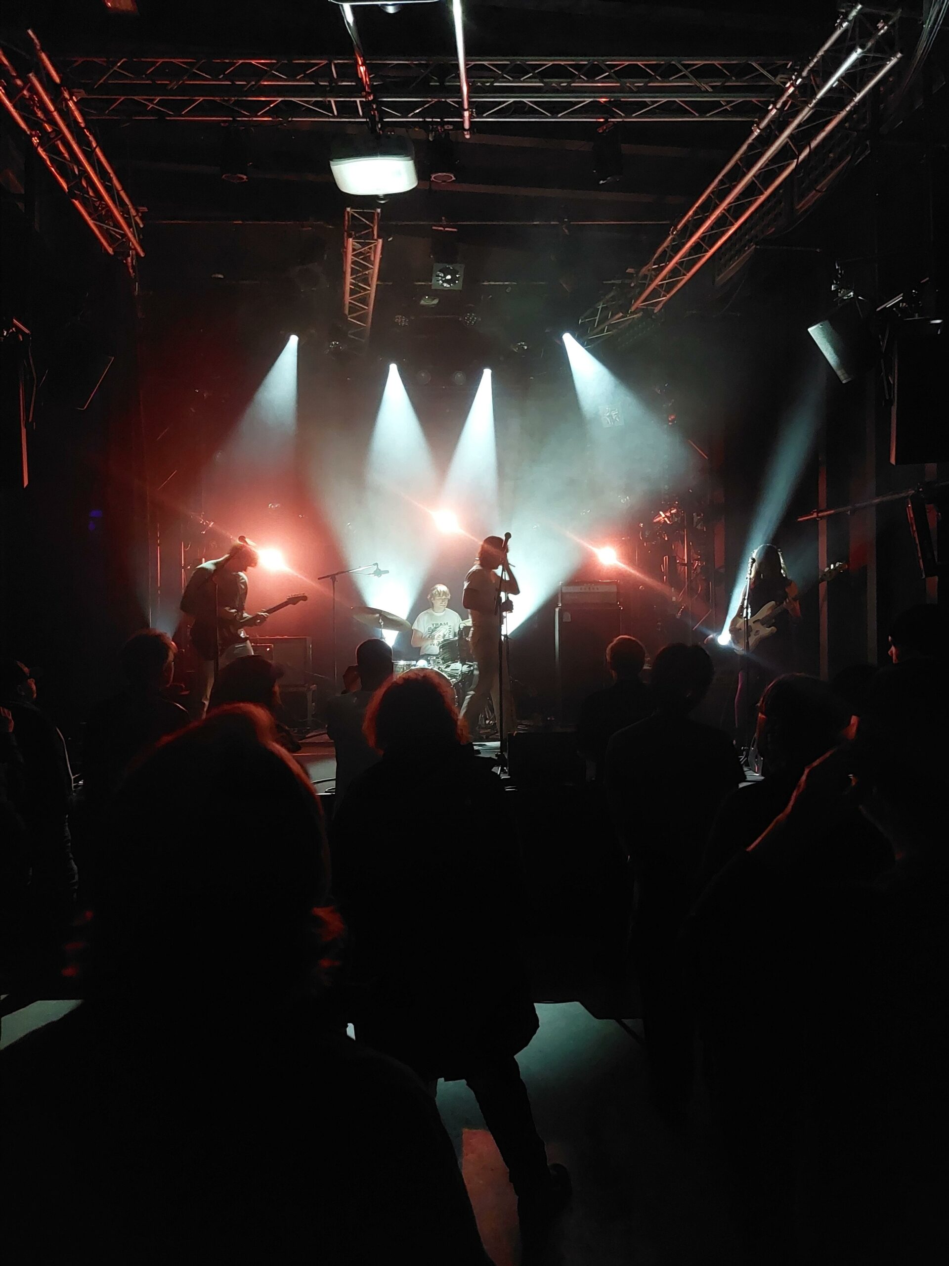 Crows legten dann auch ohne Kompromisse mit ihrem High Octane Sound los. Direkt zum Anfang des Sets sprang James Cox in guter alter Punk-Manier in die Menge, um das Publikum anzufeuern. Auch Crows hatten wie Real Farmer richtig Bock zu spielen. Der Sound der Band wechselte immer wieder von leiseren Stücken zu harten Krachern. Mal ein wenig düsterer, mal poppiger und mal brachialer. Zu sagen sei noch, dass der Sound in den Rotondes glasklar war. So einen guten Sound habe ich echt schon lange nicht mehr gehört. Crows spielten ein recht anschauliches Set, was mit Ansage ohne Zugabe mit dem extrem tanzbaren Song Is It Better? endete. Starker Auftritt der Briten. Crows fanden es ihrer Aussage nach selbst super hier und wollen wieder kommen. Fraglich allerdings, ob das nochmal in so kleinem, intimem Rahmen stattfinden wird. Ich denke, diese Band ist bereit für die großen Bühnen.