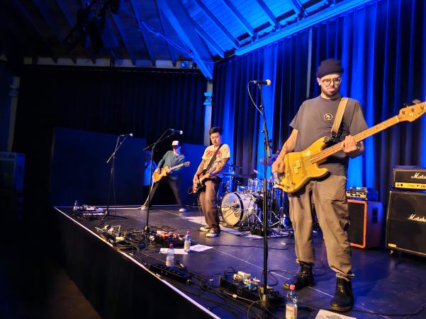 Nun folgten Superbloom aus Brooklyn. Etwas härter aber ebenso grungig klang die Band wie eine Mischung aus Oasis, insbesondere von den Vocals her, Soundgarden und Pearl Jam. Dazu kamen auch ein paar nette Samples und schöne Shoegaze-Effekte. Hervorzuheben ist außerdem das fantastische Artwork ihrer LPs. Wie auch die vorherige Band sind es bislang zwei Tonträger, auf denen die Band ihren musikalischen Stil entfaltet. Beide Bands spielen je ca. 45 Minuten, so das der Abend gegen 22 Uhr endet. Wie so oft ein interessanter und schöner Abend in der altehrwürdigen Stummschen Reithalle mit zwei Bands, in die man sich gleich verliebt hat.Außerdem hoffe ich Die Kette noch live zu sehen, bevor Marco das nächste Projekt startet 😉