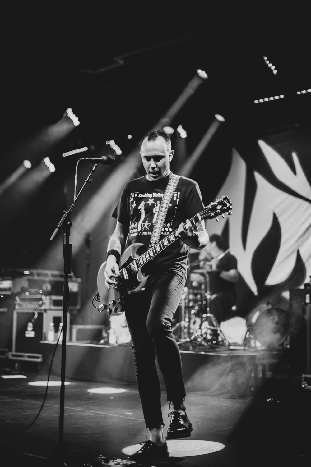 Ein Konzert von Strike Anywhere aus Virginia ist mehr als nur Musik – es ist ein politisches Statement, ein emotionaler Ausbruch. Kein Wunder dass sie ihr Set daher auch gleich mit To the world starteten. Kennt Ihr alle –„I pledge allegiance to the world. Nothing more, nothing less than my humanity“. Vom ersten Song an herrschte Bewegung – auf der Bühne und im Publikum.