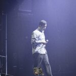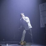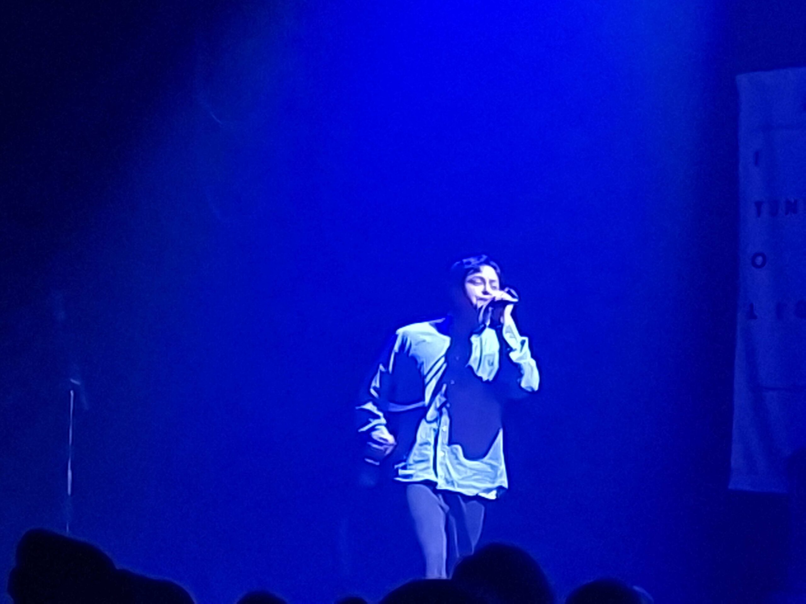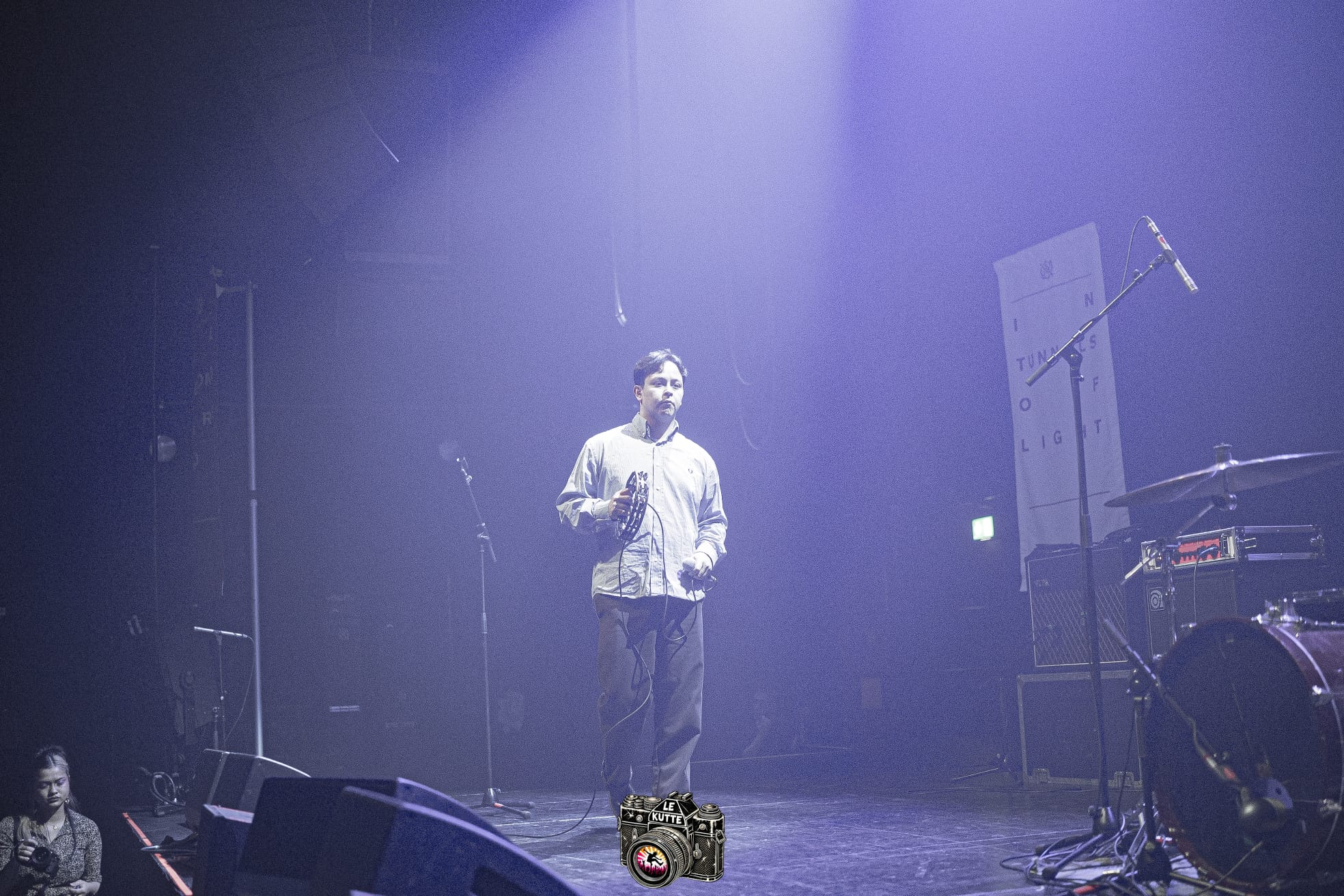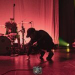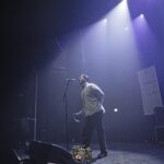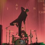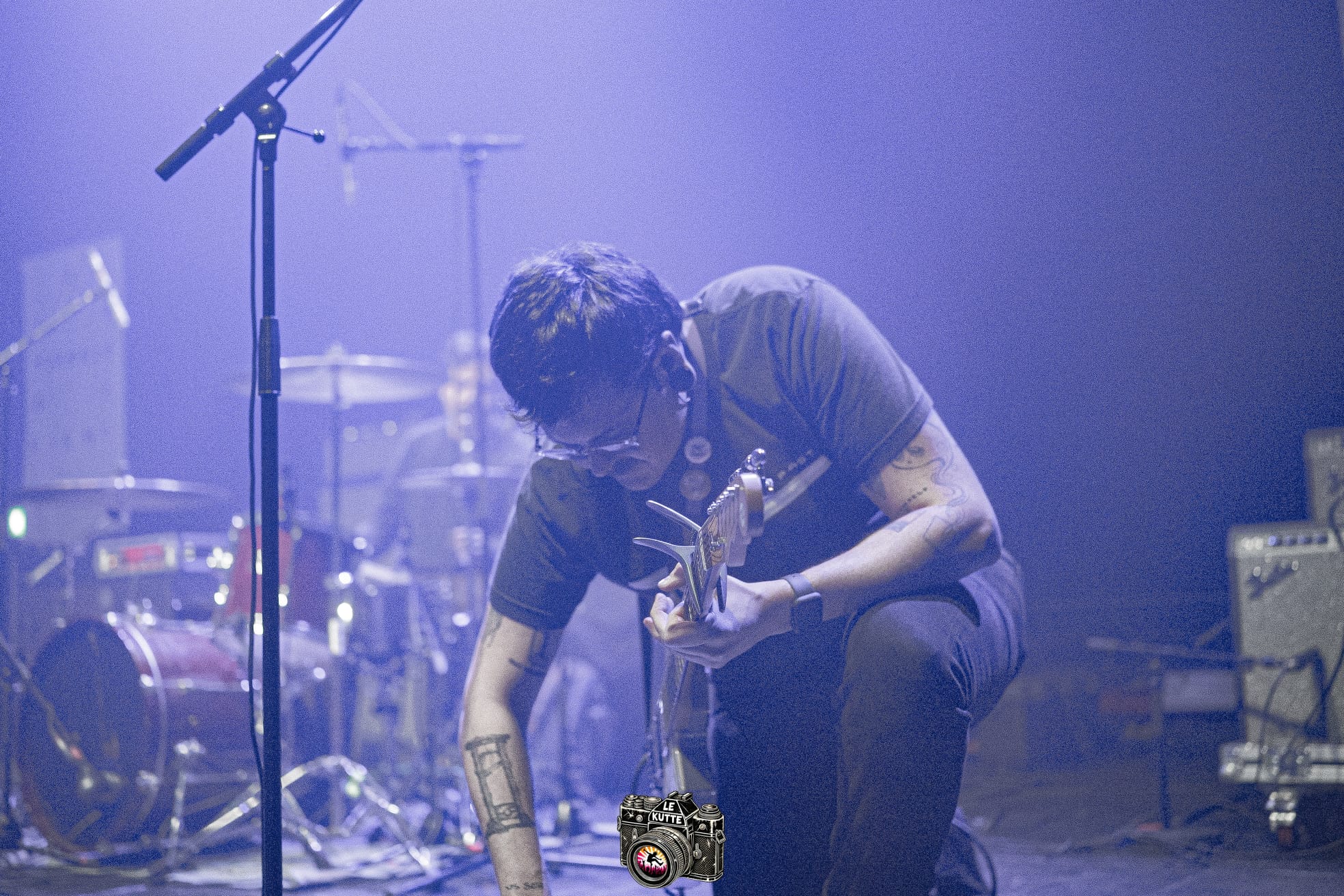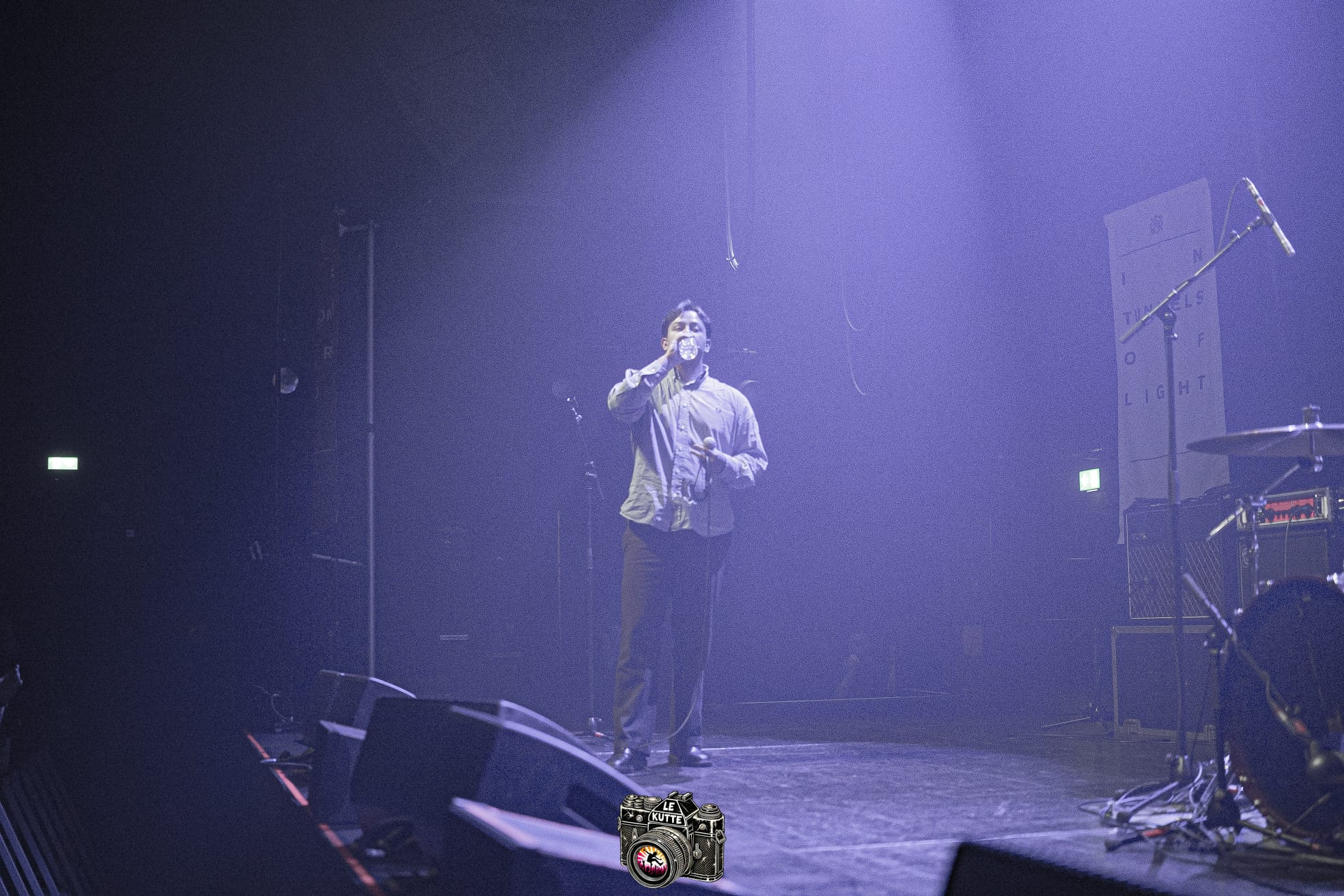 Dann stand endlich die Band auf der Bühne, für die alle hier waren, an diesem Montagabend. La Dispute. Die Bühne sah irgendwie aus wie ein Wohnzimmer. Wollig war und einladend. Jordan Dreyer ging direkt auf Angriff. Entweder trinkt dieser Mann Unmengen an Red Bull, hat ADHS, eine Schilddrüsenüberfunktion oder eine Kombi aus allem. Mir ist das schier unbegreiflich, wie man so über eine Bühne springen kann. Dabei dann auch noch fehlerfrei diese ganzen Lyrics singen kann.