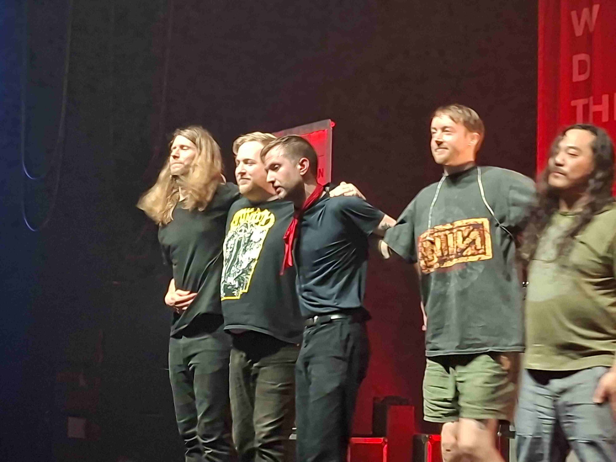 Zwar kenne ich Versus You, aber Vs Self waren mir auch unbekannt. Die Musik der Kalifornier könnte man als Screamo mit diversen Hardcore-Influencen und Jazz beschreiben. Jazz-Core? Math-Core? Kein Plan. Vs Self spielten ohne Bass, dafür mit viel Tamburin und zwei Shoutern. Ganz im Ernst, schlecht war das keinesfalls. Die härteren Parts waren sogar richtig geil und machten Bock. Ein wenig weniger Gefrickel auf der Gitarre hätte das ansich zu ’ner runden Sache gemacht. Das Gefrickel nervte nämlich manchmal, wenn’s dann doch zu lang ging. Trotzdem, wie gesagt: Die härteren Parts machten Laune und die Band empfand ich auch als sehr sympathisch, und eigentlich passten sie dann doch ganz gut als Vorband für La Dispute.