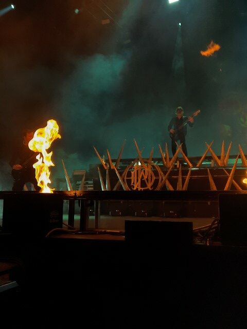 Die Show selbst war zu jedem Zeitpunkt sehr professionell aufgezogen und mitreißend. Viel Feuer, viel Dunkelheit, einfach passend auch zum neuen Album. Der Sound war auch mega gut. Aber da ist die Olympiahalle auch erprobt. Ausverkauft war es im Übrigen weit nicht. Schwer zu schätzen, ich würde so in die Richtung 5000 bis 7000 Besucher tippen. Aber ehrlich, das hat der Stimmung wirklich nichts weggenommen. Denn die Fans hatten Bock. Kurz vor Finito hatte die Feuershow dann ihren Höhepunkt. Crushed wurde mit vielen Flammen und viel Getöse ausgiebig zelebriert. Ist aber auch ne echt fette Nummer. Als Abschluss dann wie zu erwarten war noch die mitreißende Feiernummer Wild Eyes. Da gab das Publikum noch einmal alles. Stimmlich, Moshig, Springend und Rennend. Ein würdiger Song zum Ende eines großartigen Auftrittes.