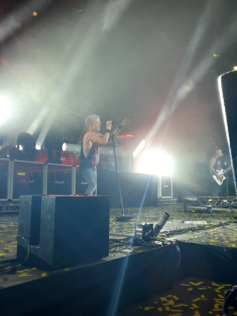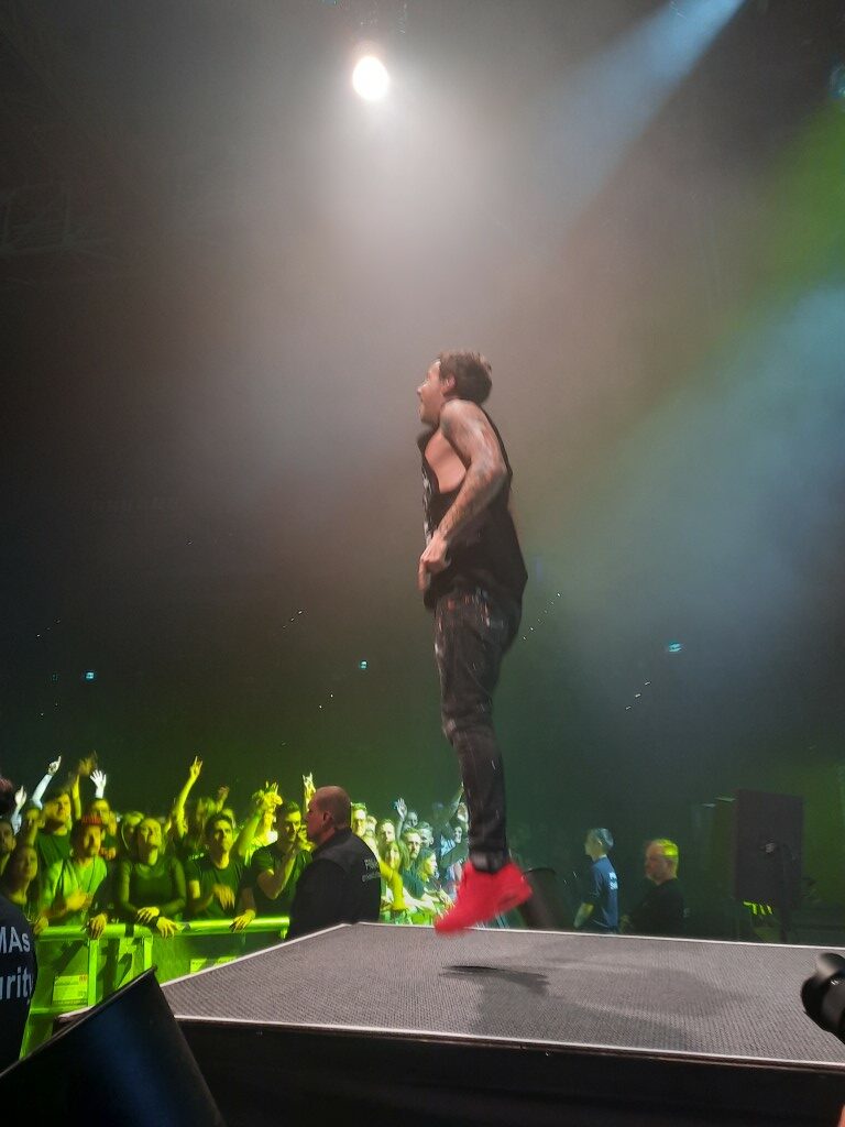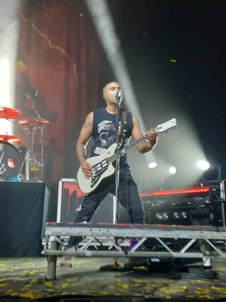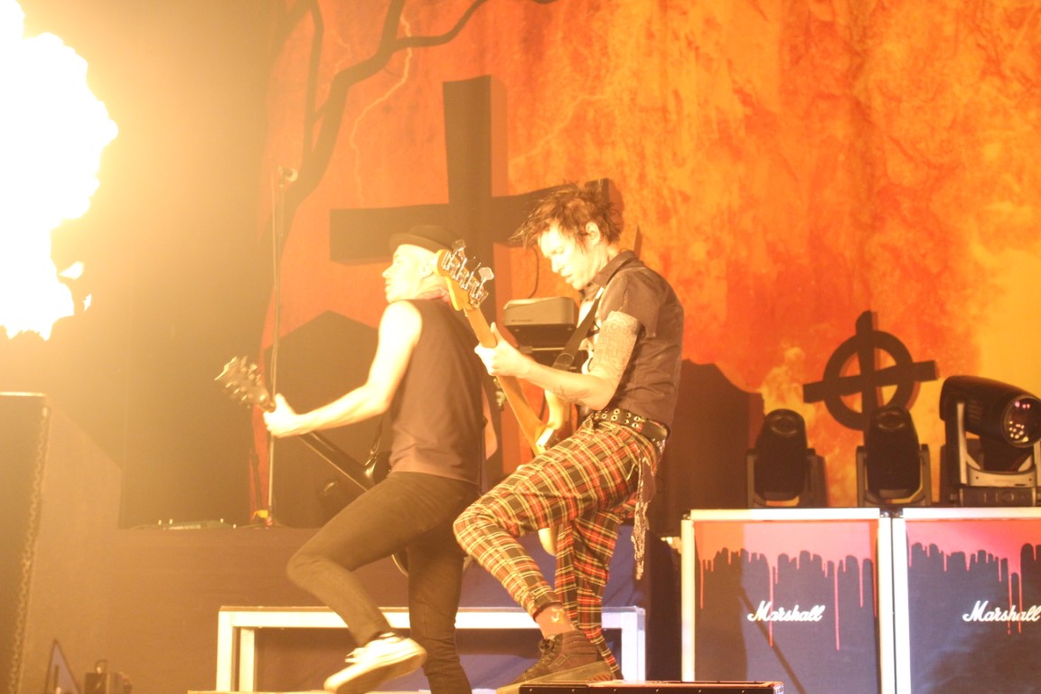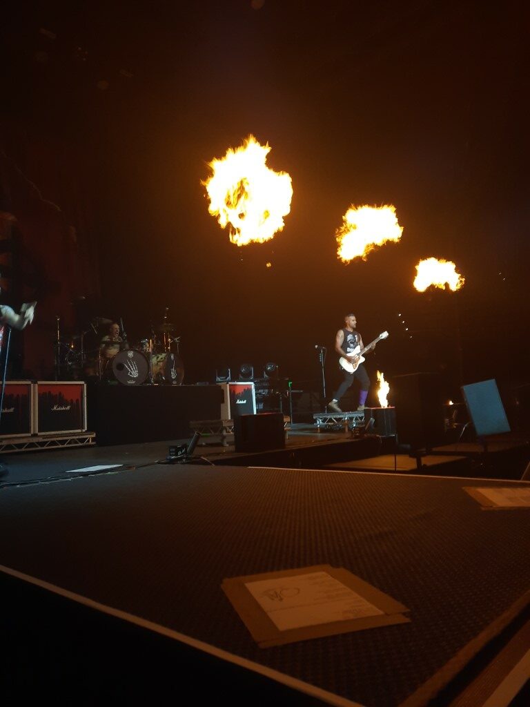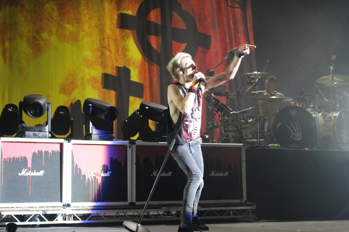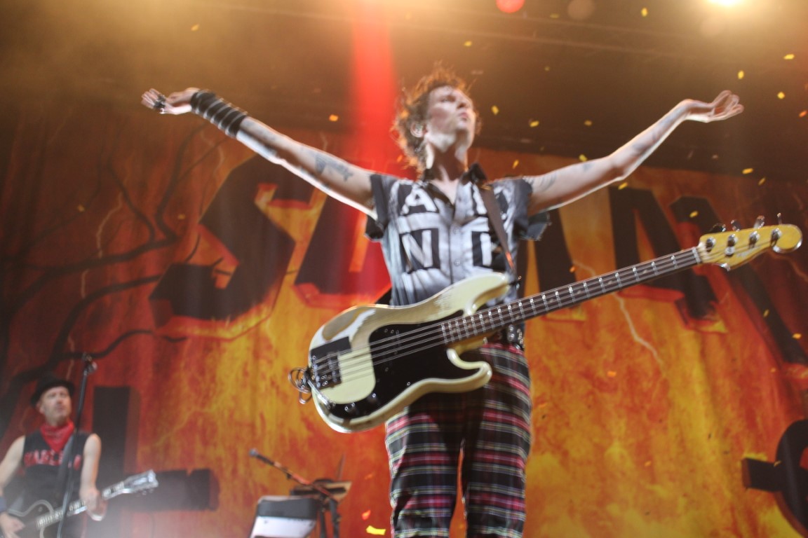 AC/DC als Intro und die altbekannte Ansage „Children of the beast emrace…“ fungierten als Start und als der Vorhang fiel, brachen die Dämme. Ich bin leicht erschrocken, dass Hell Song schon unter den ersten drei Liedern war, aber bei näherer Betrachtung kam mir dann auch, dass die so viele Hits haben, die da noch folgen sollten. Und da gab es auch keine Enttäuschungen. Egal ob Walking Desaster, Fake my own Death, Still Waiting oder In to deep, es wurde alle dargeboten, was die Kanadier zu bieten haben. Garniert mit Nebel, Feuer, Konfetti und Papierschlangen. Auch das Spiel mit dem begeisterten Publikum funktionierte einwandfrei und so hatte Derryck Whibley leichtes Spiel.