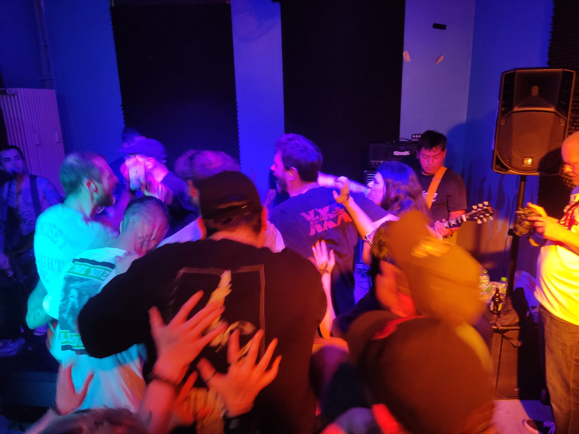 Bei dem Song Landmines gab es noch ein gesangliches Feature. Sorry, ich habe den Namen von dem Typ und auch dem Mädel vergessen, die mitmischten. Der Raum heizte auch gut auf. Bei der Größe allerdings nicht verwunderlich. Gute Ansagen kamen noch gegen Fascho-Deppen und wofür unsere Szene eigentlich steht. Stay Free forderten dann alle auf, mit zu moshen und versprachen, dass keinem, was passiert, da Hardcore ein Safe Space für alle sei. Und so war es dann auch definitiv. Was mich sehr erfreute, war, dass auch viele junge und auch weibliche Kids da waren. Das macht echt Hoffnung. Am Schluss gab es dann mit One Life Youth Crew den wohl größten Hit der Saarbrücker. Verdammt geile Show, die echt Spaß gemacht hat.