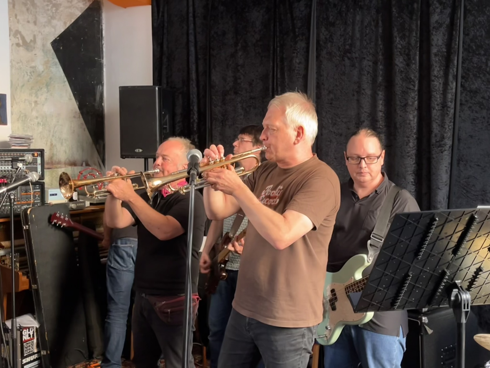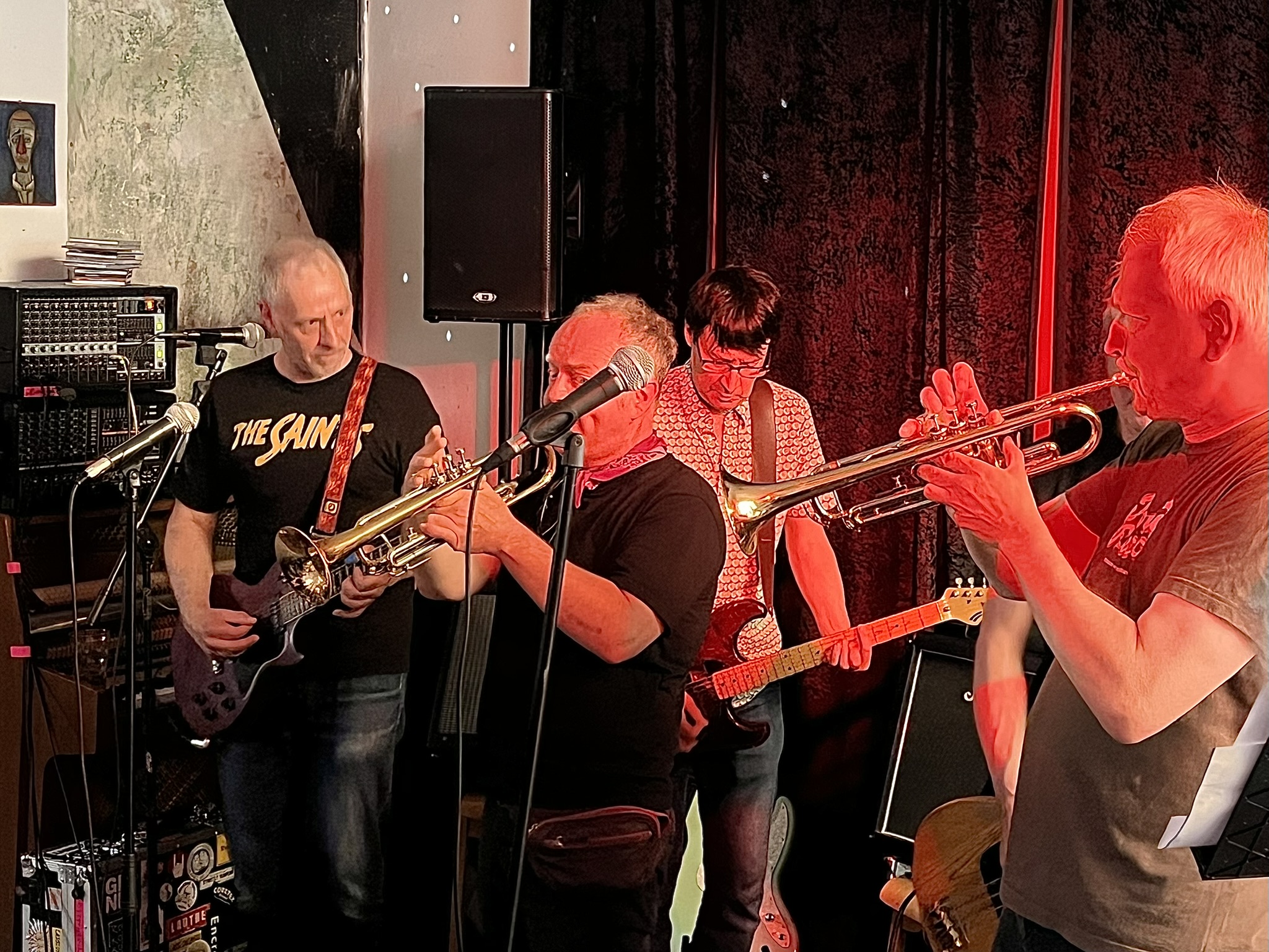 Dass Punkshows auch Familienfeste sind wird hier vorgelebt. Es gibt, neben den beiden Trompetern, auch andere namhafte Gäste. U.a. spielt Markus Weilemann eine Nummer am Bass mit.