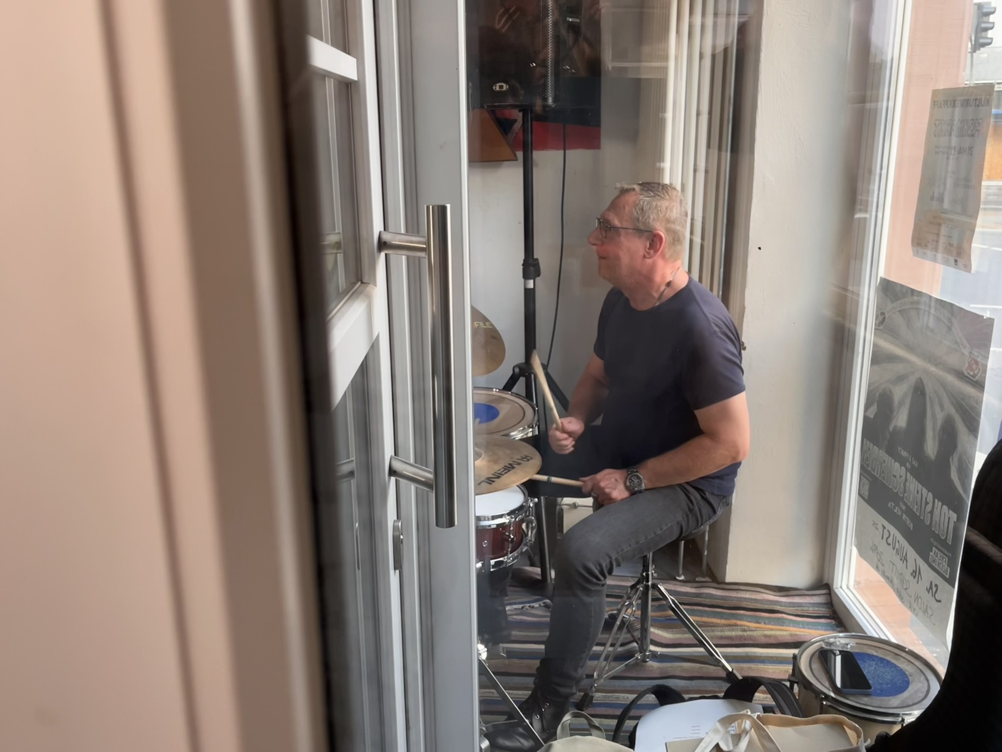 Am Tag vorher lädt die Band Freunde und alte Weggefährten ein zu einem privaten Konzert. Knapp 50 Leute verzichten auf den Tatort am Sonntag und finden sich im Salon Schmitt ein. Hier wurde die letzten Tage und auch am Tag selbst noch geprobt. Immerhin wohnen die Bandmitglieder in ganz Deutschland verteilt.