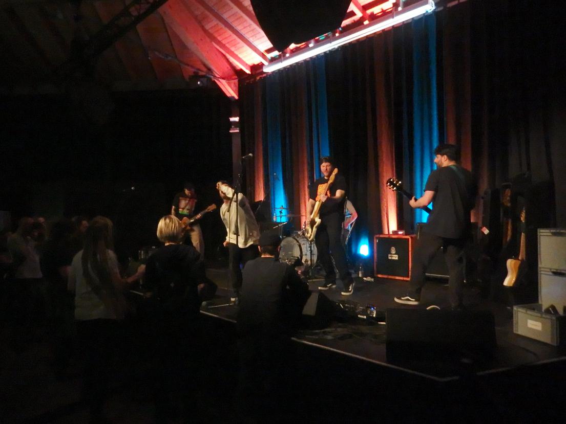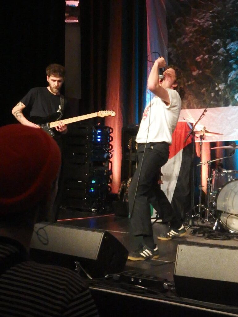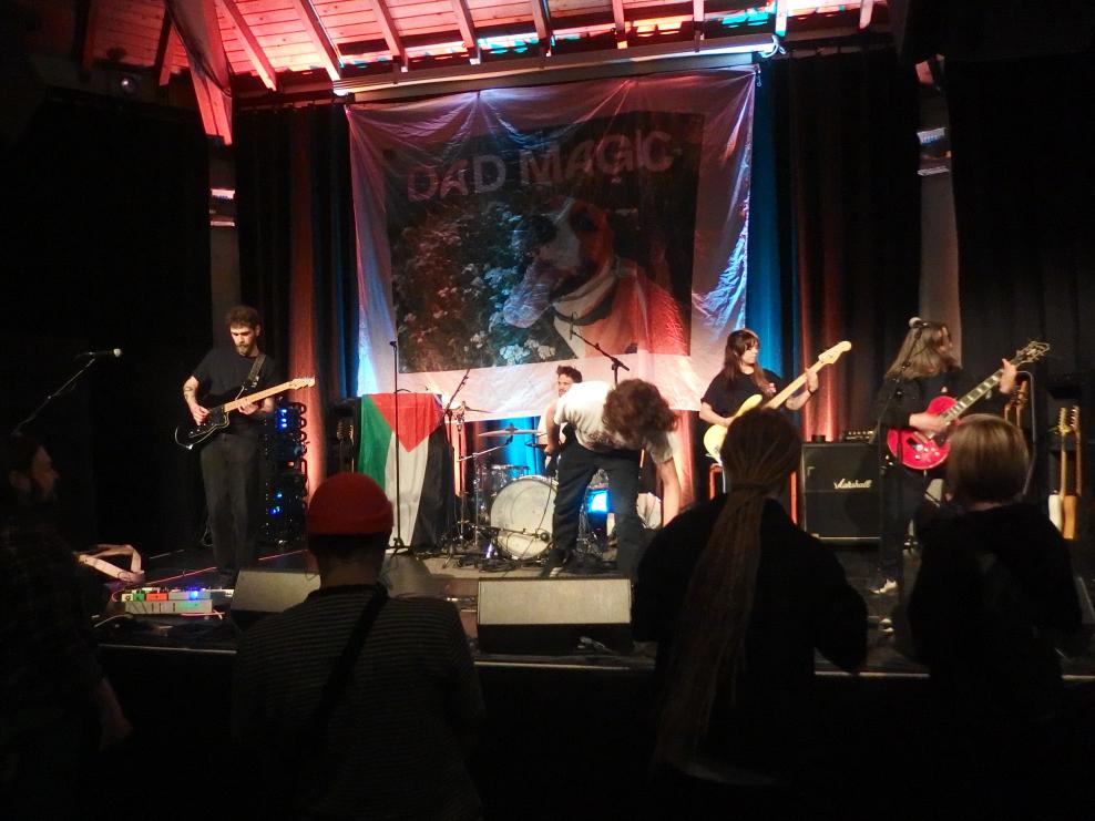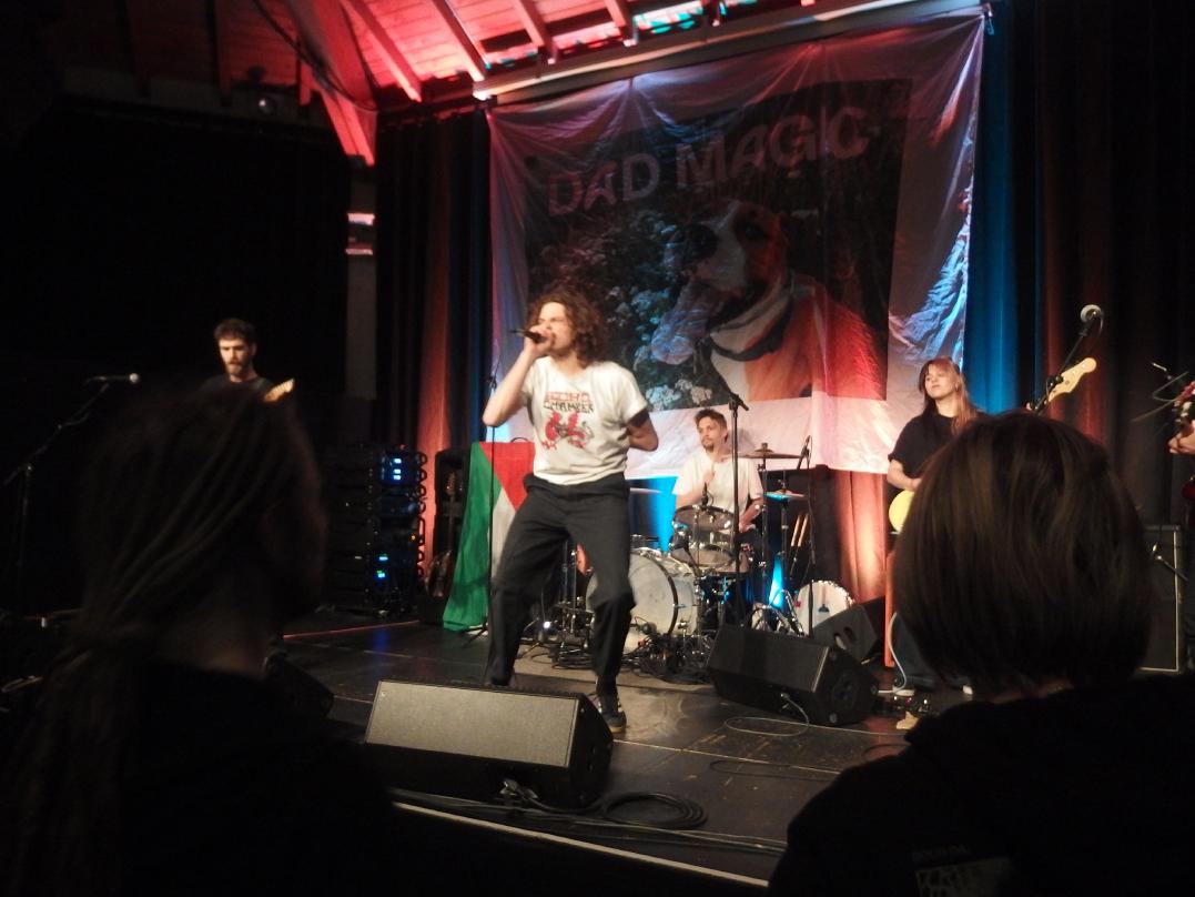 Dad Magic aus Belgien waren die ersten. Ich kam ca. 15 Sekunden nach Beginn der Show an und man hatte das Gefühl, der Sänger müsste schon fertig sein. Sehr agil sprang er über die Hardcore-Bretter, die die Welt bedeuten. Etwas irritierend war dei Palästina-Flagge auf der Bühne, aber dazu später bei Love Letter mehr. Ansagen dazu gab es jedenfalls keine. Die Band spielte sehr tight. Absolut großartiges Geknüppel, das sich live böser anhört als auf der doch sehr melodischen Platte. Dazu Texte gegen den Kapitalismus. Also alles, was man so braucht. Emotional Hardcore wie er 2025 zu klingen hat.