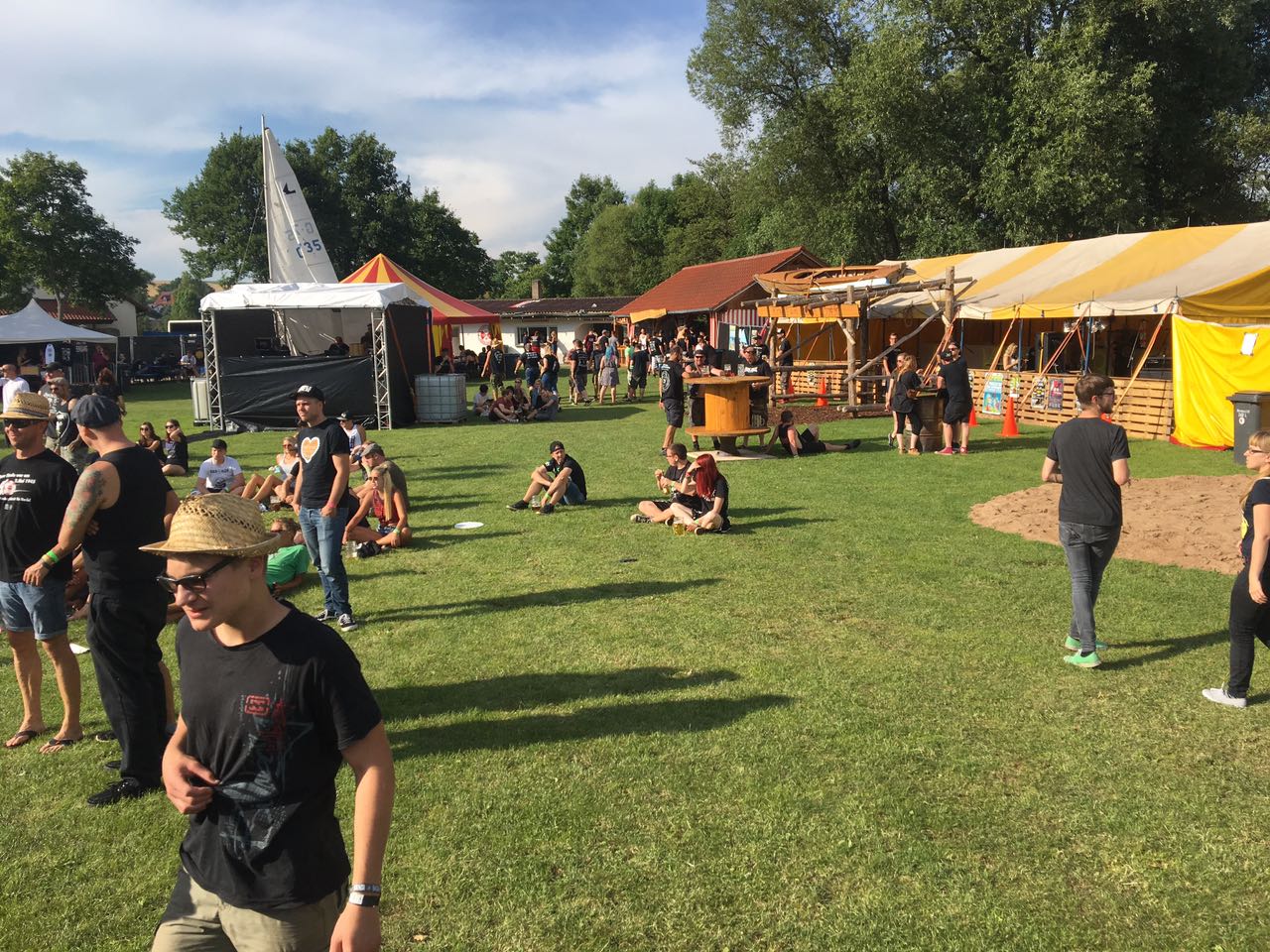 Nachdem wir Sam Alone & The Gravediggers bereits eine Woche vorher auf dem Mission Ready Festival bestaunen durften, war für uns dann erst einmal Campingplatz und Grillen angesagt. Grillen ist auf dem Krach am Bach genau so wenig ein Problem wie sein Auto neben das Zelt stellen. Ist auch immer ganz angenehm sein Zelt, seine Getränke usw. von dem Parkplatz zum Campingplatz zu tragen.