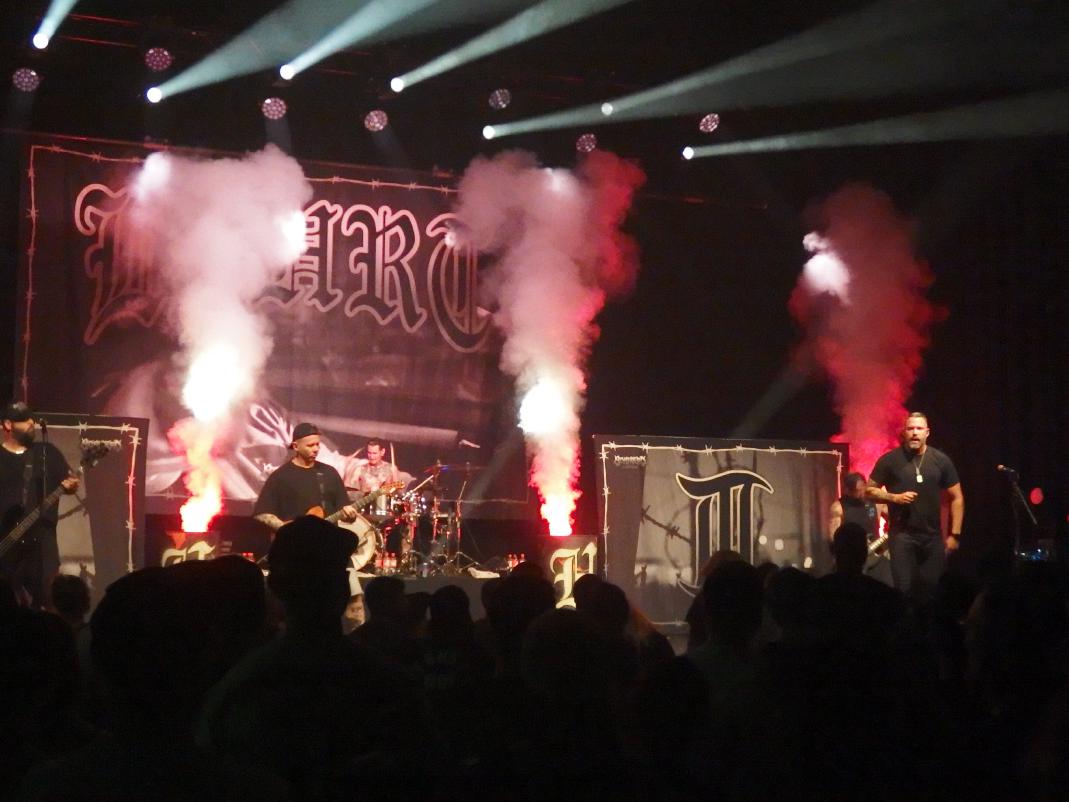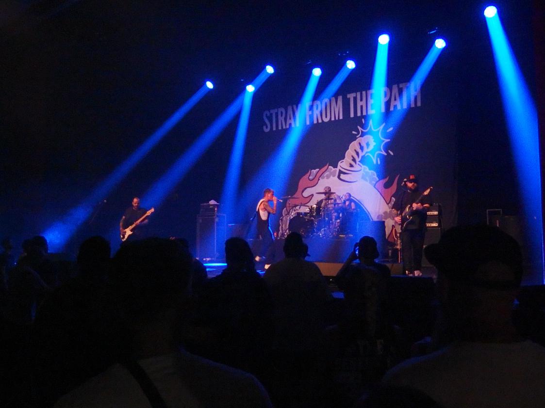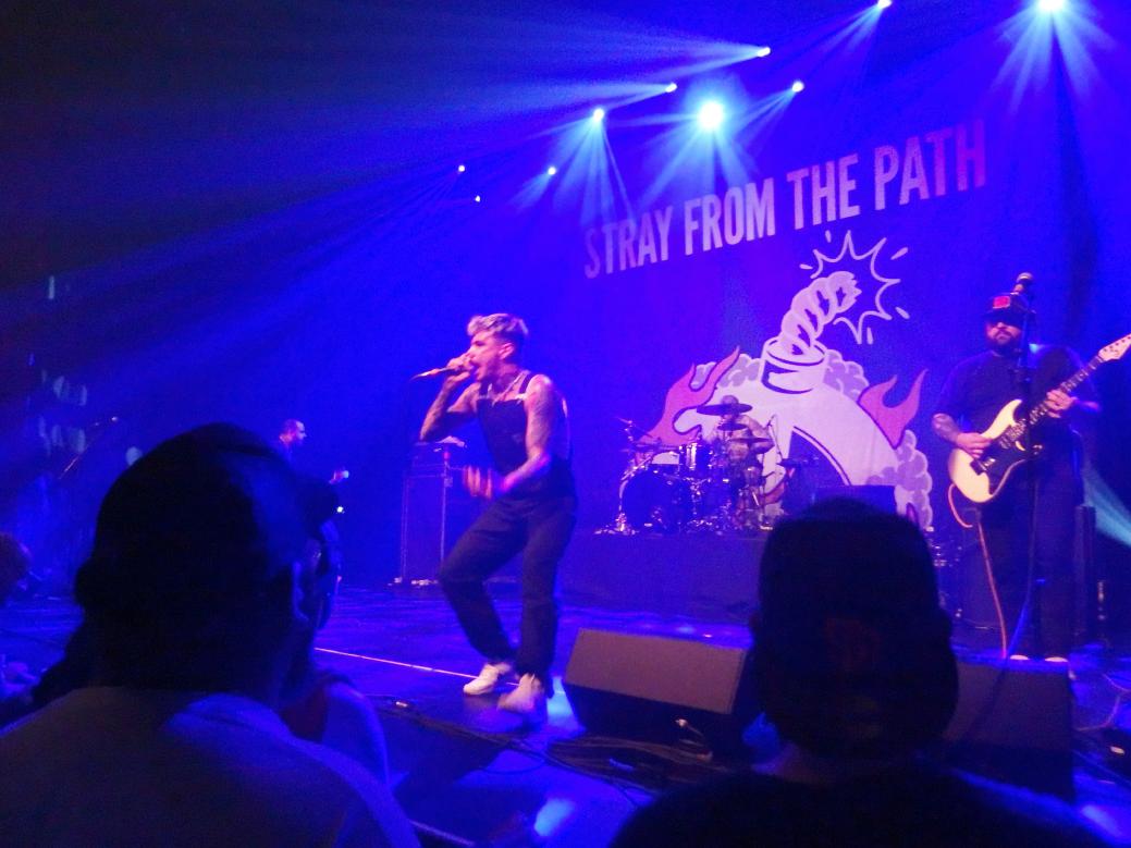 Stray From The Path beeindruckten mich dann vor allem durch ihre pure Energie und das recht extravagante Auftreten des Sängers, der mit seiner blauen Latzhose und Teilen seiner Dance-Routinen doch etwas an Justin Bieber erinnerte. Aber seis drum, die Energie war spürbar und der Auftritt war energetisch sehr geladen. Auch die Ansagen waren gelungen, insbesondere die Anti-Nazi-Ansage bei Goddnight Alt-Right (im Übrigen auch mein Lieblings-Song von der Band). Ein sehr beherzter Auftritt. Das Publikum wurde versucht aus der Reserve zu locken, in dem es als „shy“ (was echt okay ist) bezeichnet wurde und mit der Aussage, dass dies hier ein Safe Space sei (was echt okay ist) und man durchaus etwas rumspringen könnte (was echt okay wäre)… Ihr merkt schon, so ein bisschen seltsam waren die Ansagen dann doch. Und, naja, Hardcore-Shows als „Safe space“, leider ist das auch nur eine Illusion. Wobei man natürlich sagen muss, das die Arschloch-Dichte an diesem Abend zumindest relativ gering gewesen sein dürfte. Das Gesamtpaket überzeugte jedenfalls. Eine tolle Band mit guter Show. Einen Fan mehr haben sie jetzt auf jeden Fall. Am Ende ging der Plan auch auf und es gab zumindest mal etwas Bewegung in den ersten Reihen.