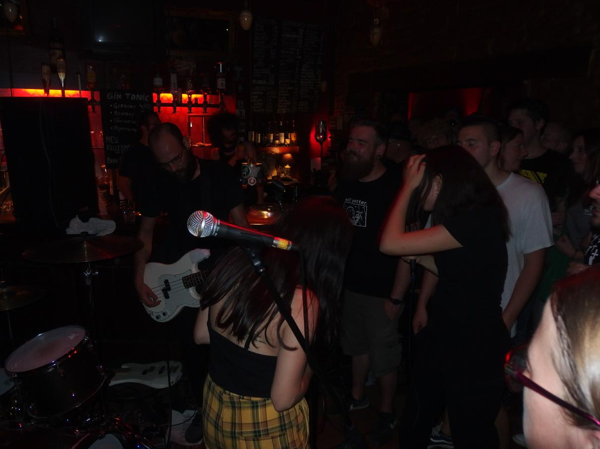Mr. Linus machten die Vorgruppe. Trio, zwei Frauen und ein männlicher Schlagzeuger (der aber auf der offiziellen Facebook-Seite gar nicht genannt wird). Mir bisher unbekannt. Dies war jedoch nicht verwunderlich. Die Band gibt es zwar schon seit mindestens 2014, doch die Ostschweizer Gruppe spielte an diesem Abend ihren allerersten Auftritt in Deutschland. Gefälliger Indiepunk, war auch schon einiges los. Insgesamt ein schöner Auftritt. Etwas überraschte mich das Press-Club-Cover Suburbia. Das erwartet man eigentlich nicht, passte jedoch schön in den Auftritt hinein. Die dazugehörige EP hab ich mir dann auch gleich zugelegt. Gibts als CD oder Vinyl und bietet vier Songs, die sie glaube ich auch alle gespielt haben. Ist auf Platte jedoch etwas softer als live.