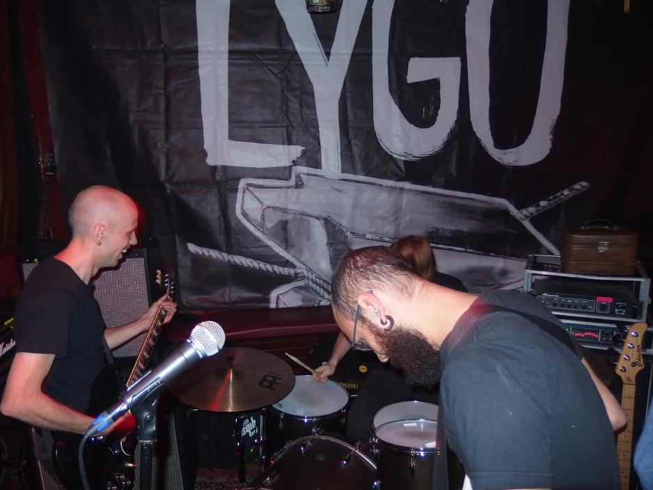 Lygo haben anlässlich ihres zehnjährigen Jubiläums eine kleine Minitour organisiert, die im Saarbrücker Karate Klub Meier (dort hat schon Bukowski gesoffen) ihren Anfang nahm. Da die Karten im Vorverkauf wie warme Semmeln weggegangen sind und die kleine Kneipe recht übersichtlich ist, hab ich mir gerade noch eine sichern können. An der Abendkasse blieben dann doch noch zwei liegen, wenn ich es richtig mitbekommen habe. Wo die beiden sich dann noch hätten hinstellen sollen… es war jedenfalls supervoll und das an einem Mittwoch…