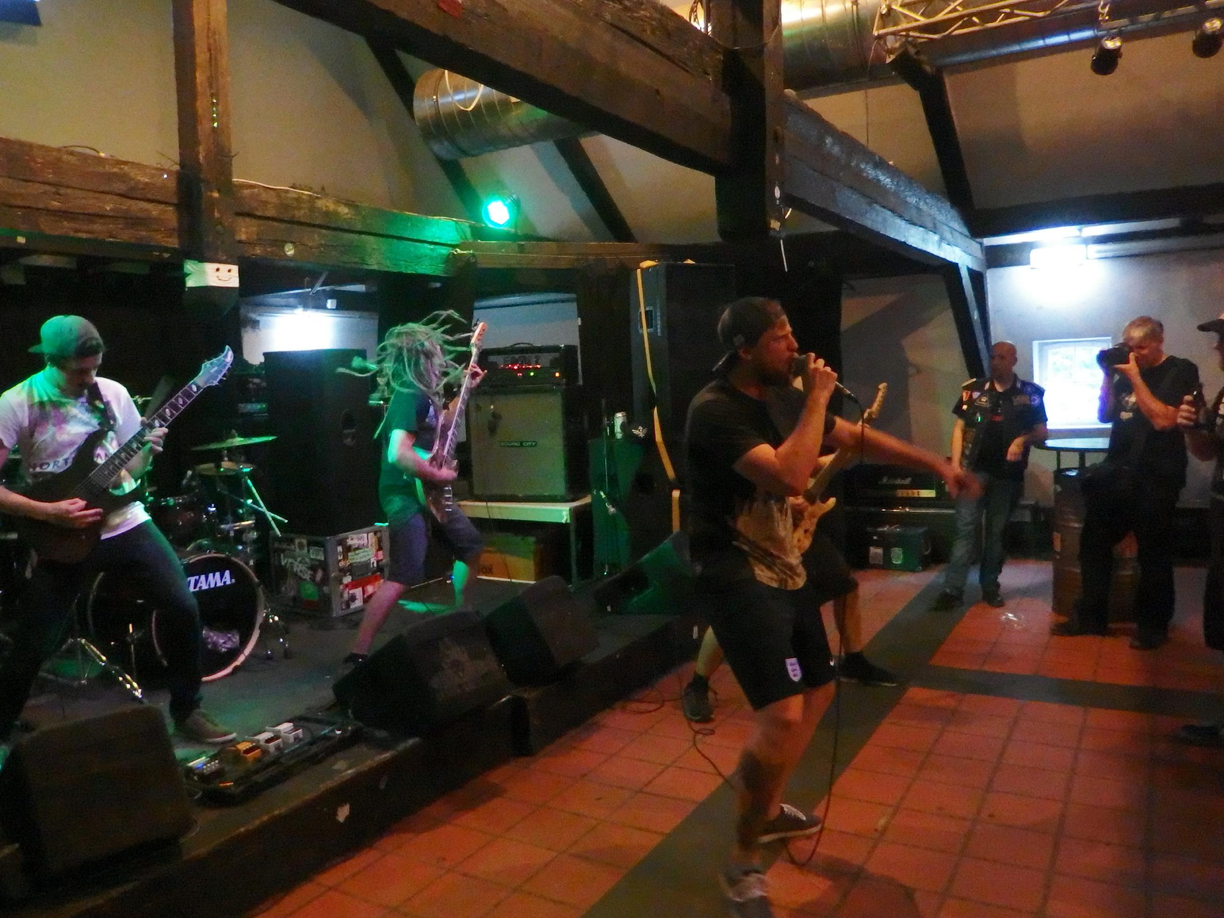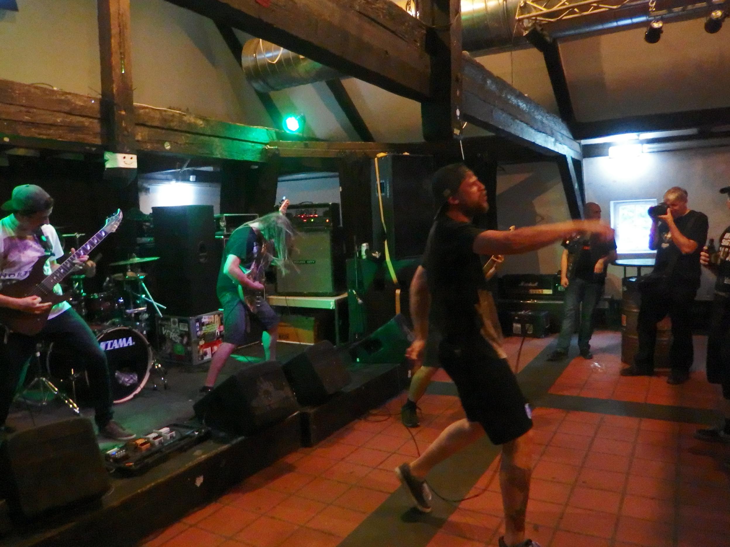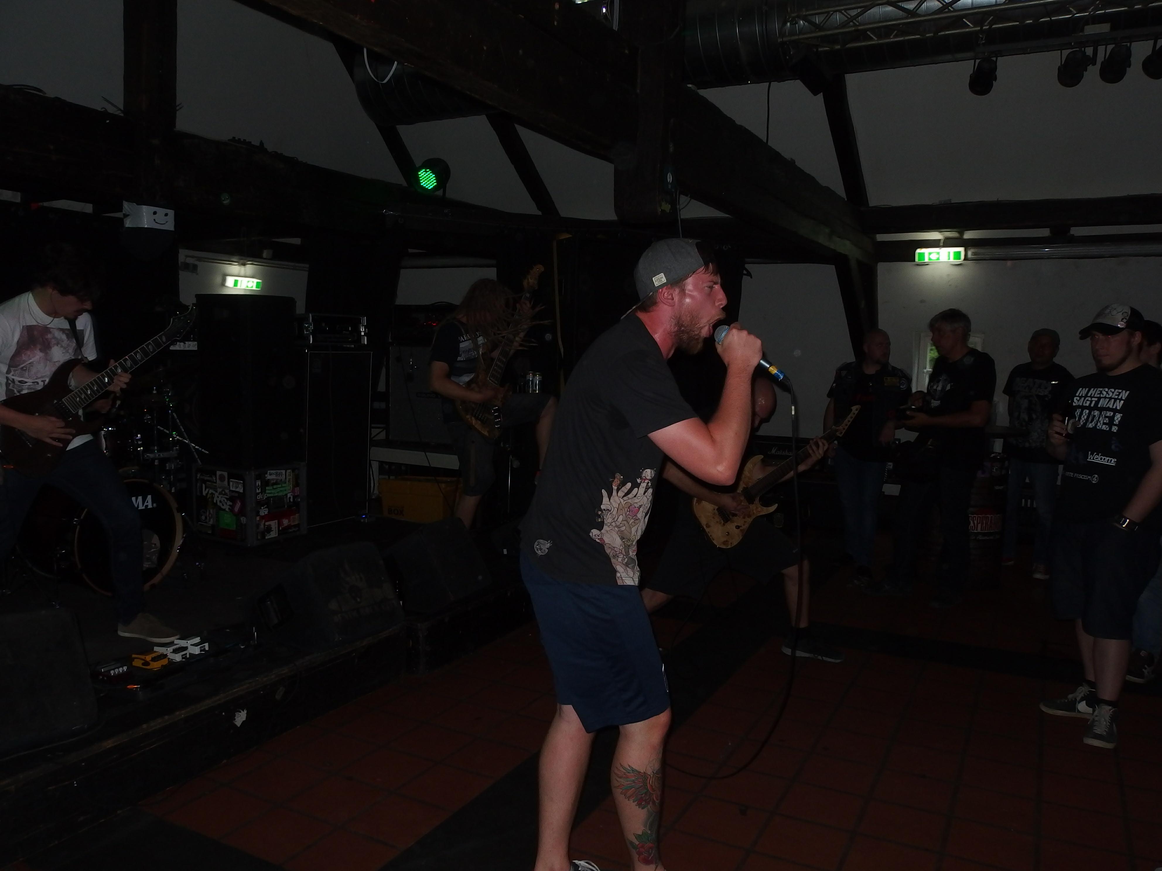 Inhuman Rampage aus Eppeldorf in Luxemburg eröffneten den Abend. Nun ja, die Band existiert seit 2010 und spielt laut eigenen Aussagen Metal-/Deathcore. Ja, das ist wohl war, denn man hatte so das Gefühl, das jedes Instrument ein anderes Lied spielte. Das ist glaube ich bei dieser Musikrichtung auch so üblich. Die Band wusste dennoch ganz gut zu unterhalten und die Wartezeit zu überbrücken.