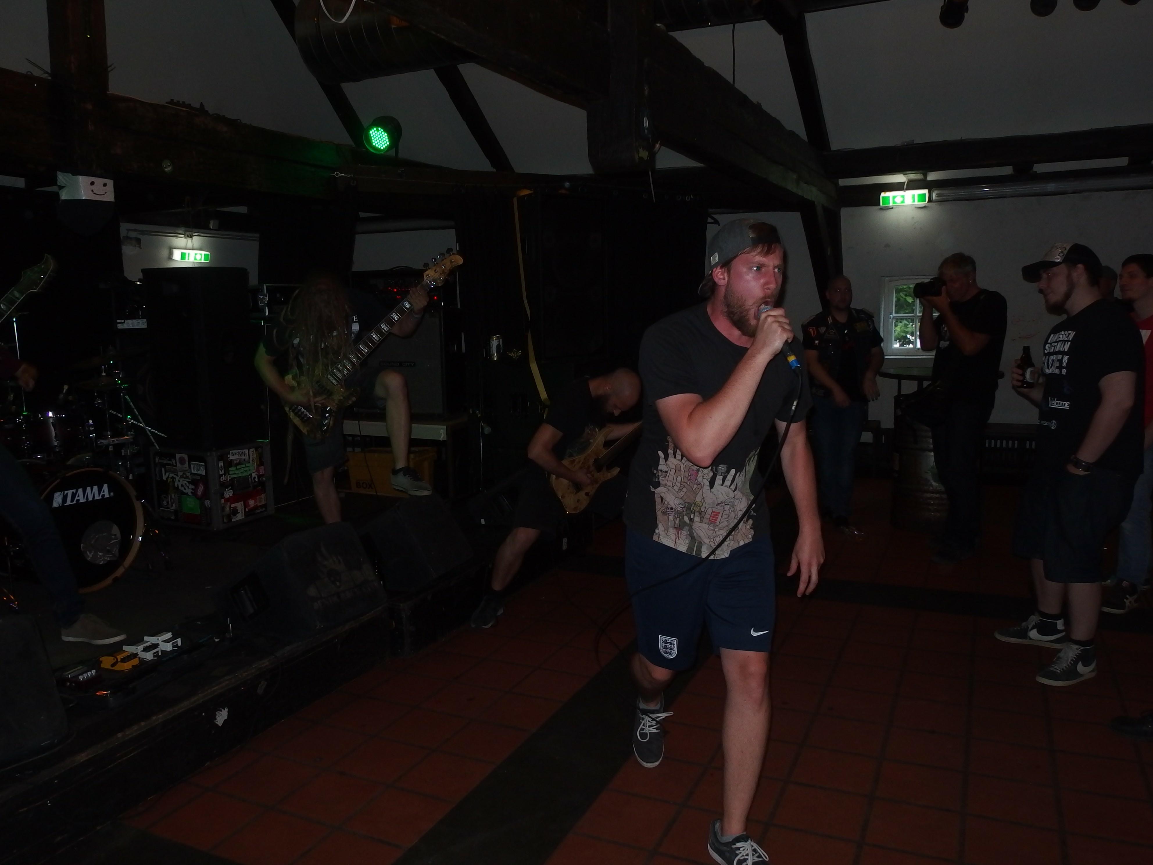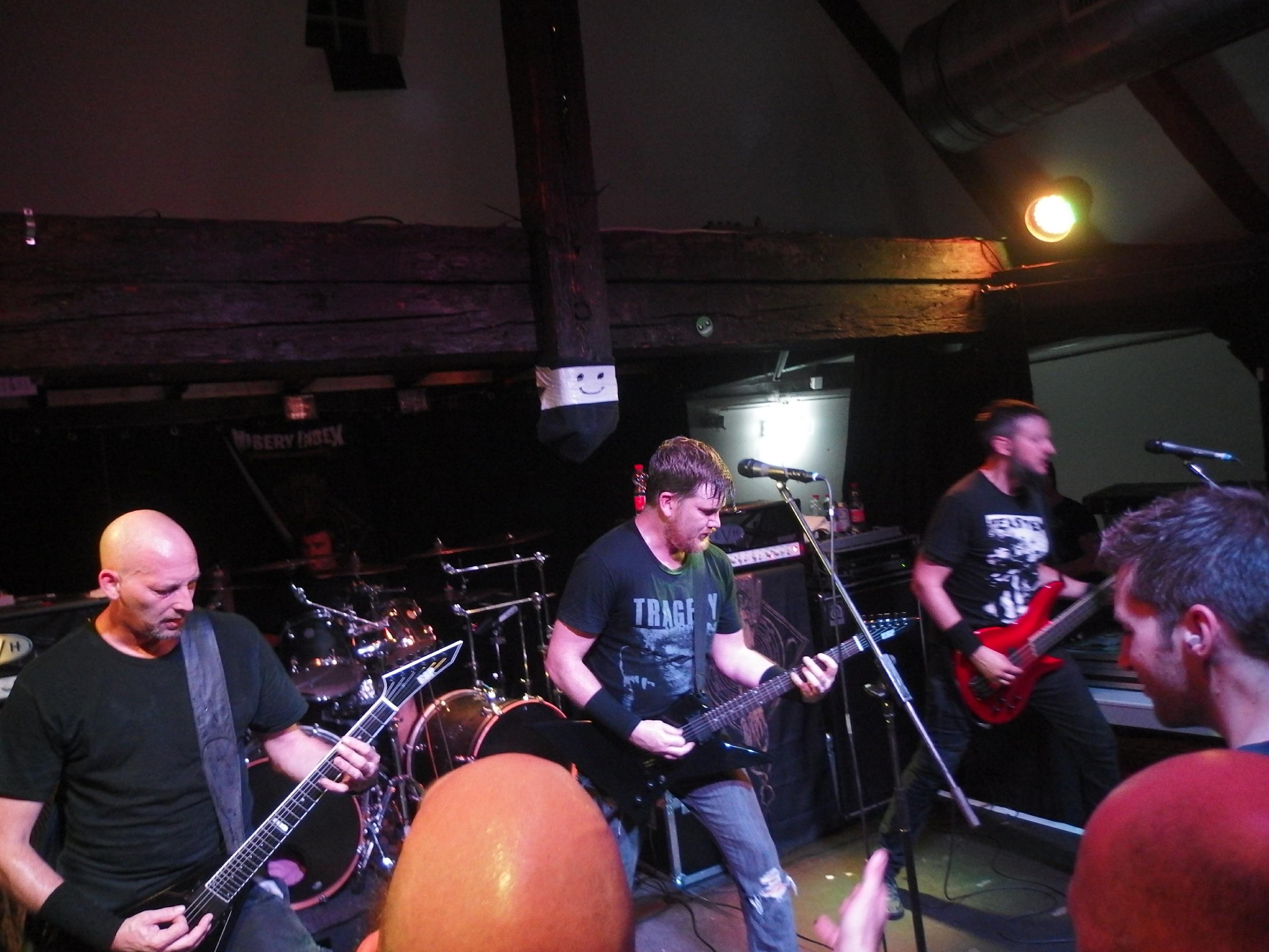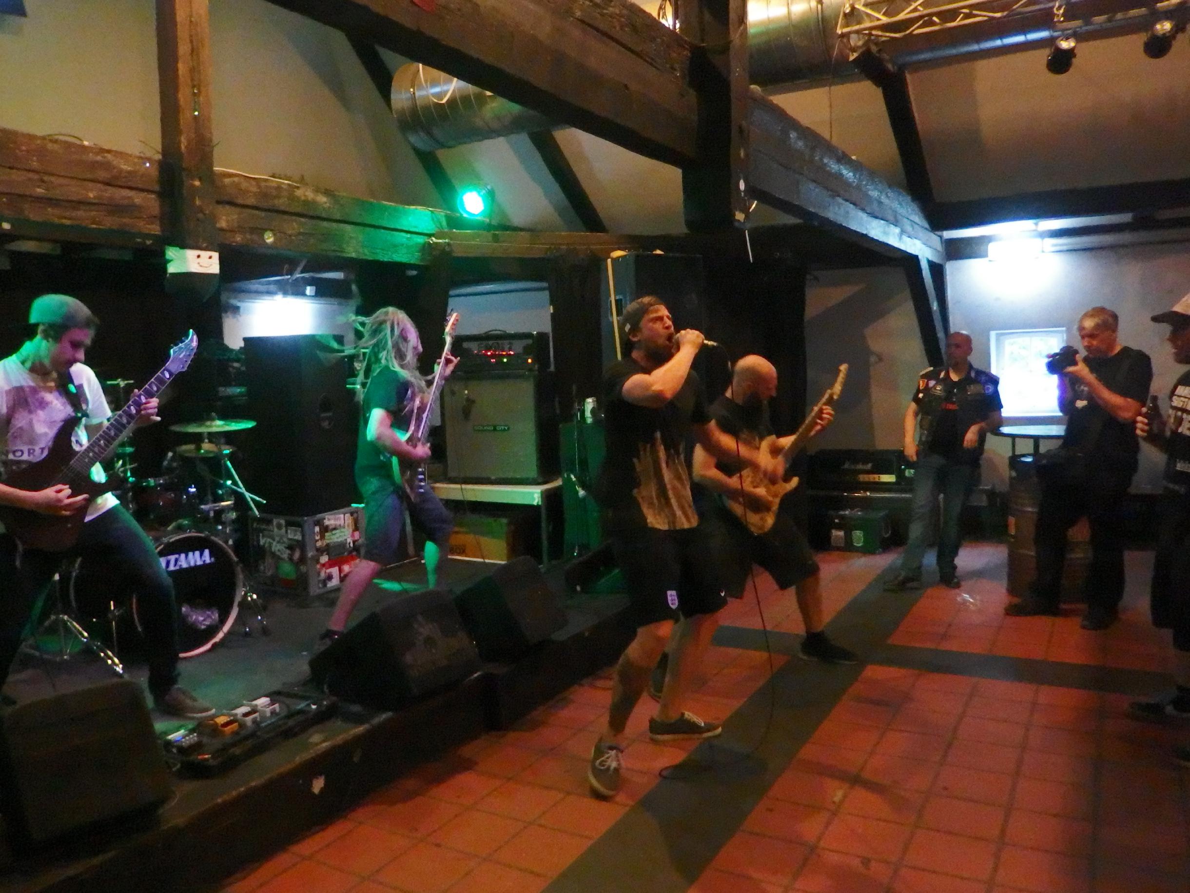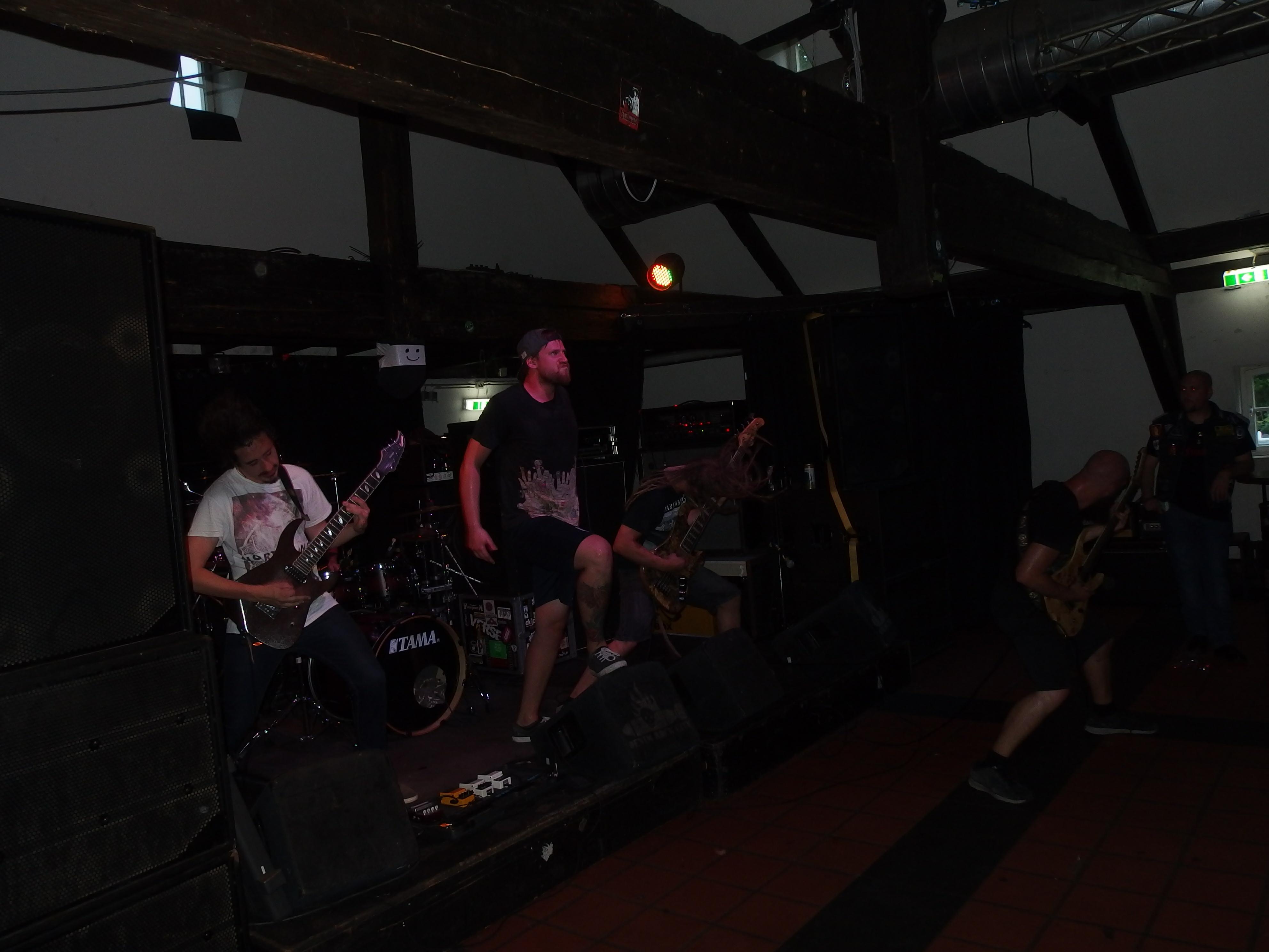 Inhuman Rampage aus Eppeldorf in Luxemburg eröffneten den Abend. Nun ja, die Band existiert seit 2010 und spielt laut eigenen Aussagen Metal-/Deathcore. Ja, das ist wohl war, denn man hatte so das Gefühl, das jedes Instrument ein anderes Lied spielte. Das ist glaube ich bei dieser Musikrichtung auch so üblich. Die Band wusste dennoch ganz gut zu unterhalten und die Wartezeit zu überbrücken.