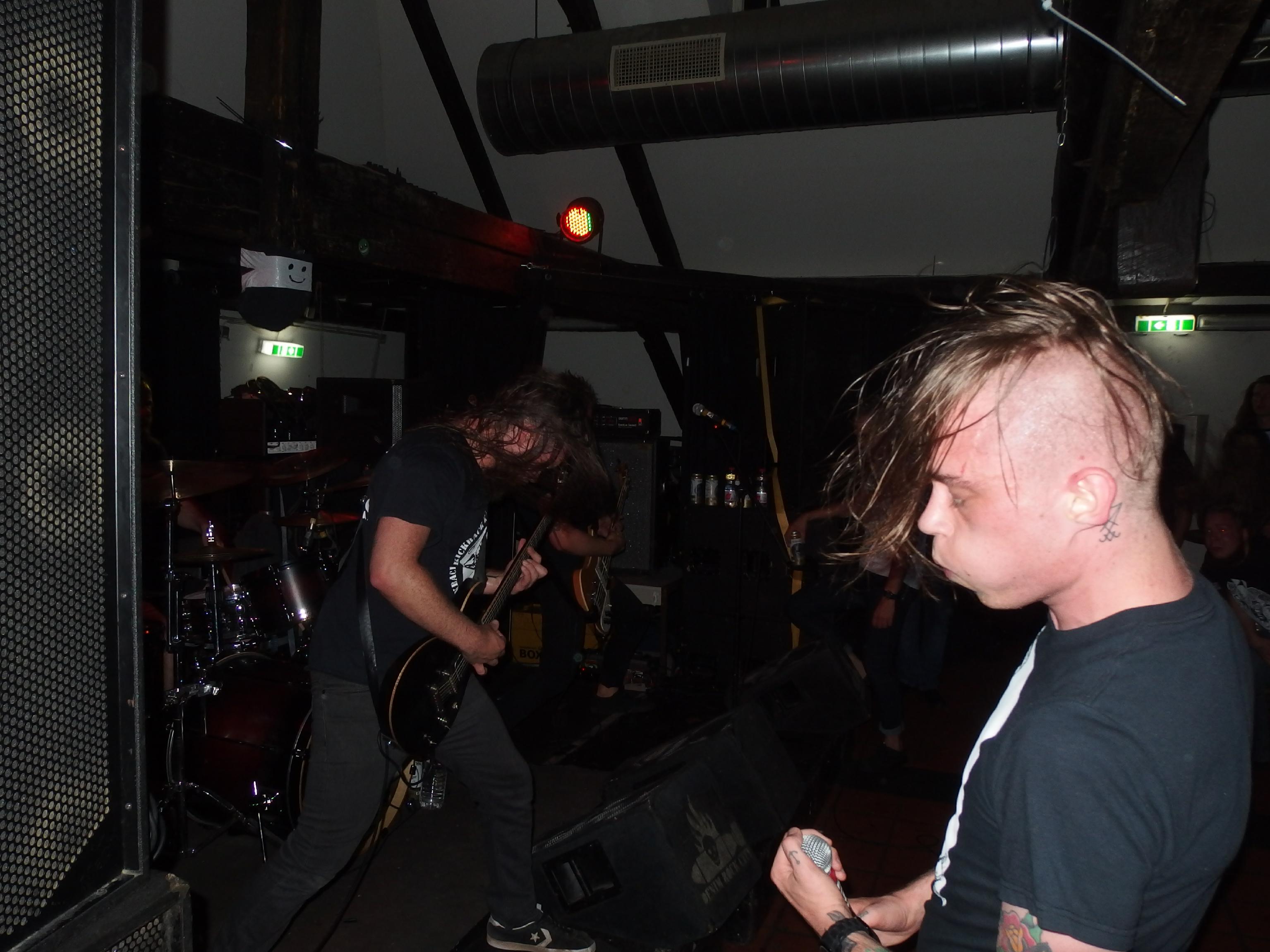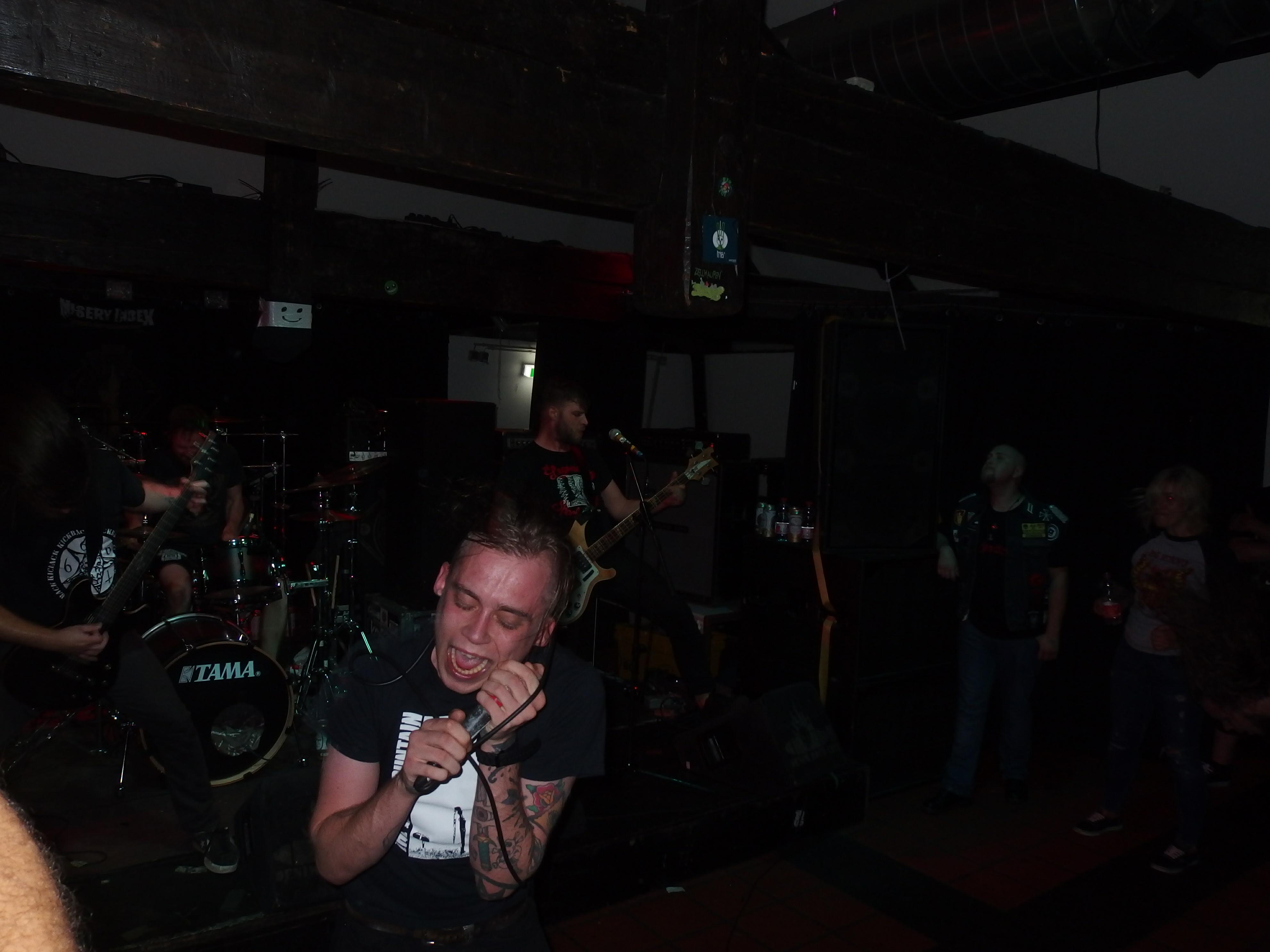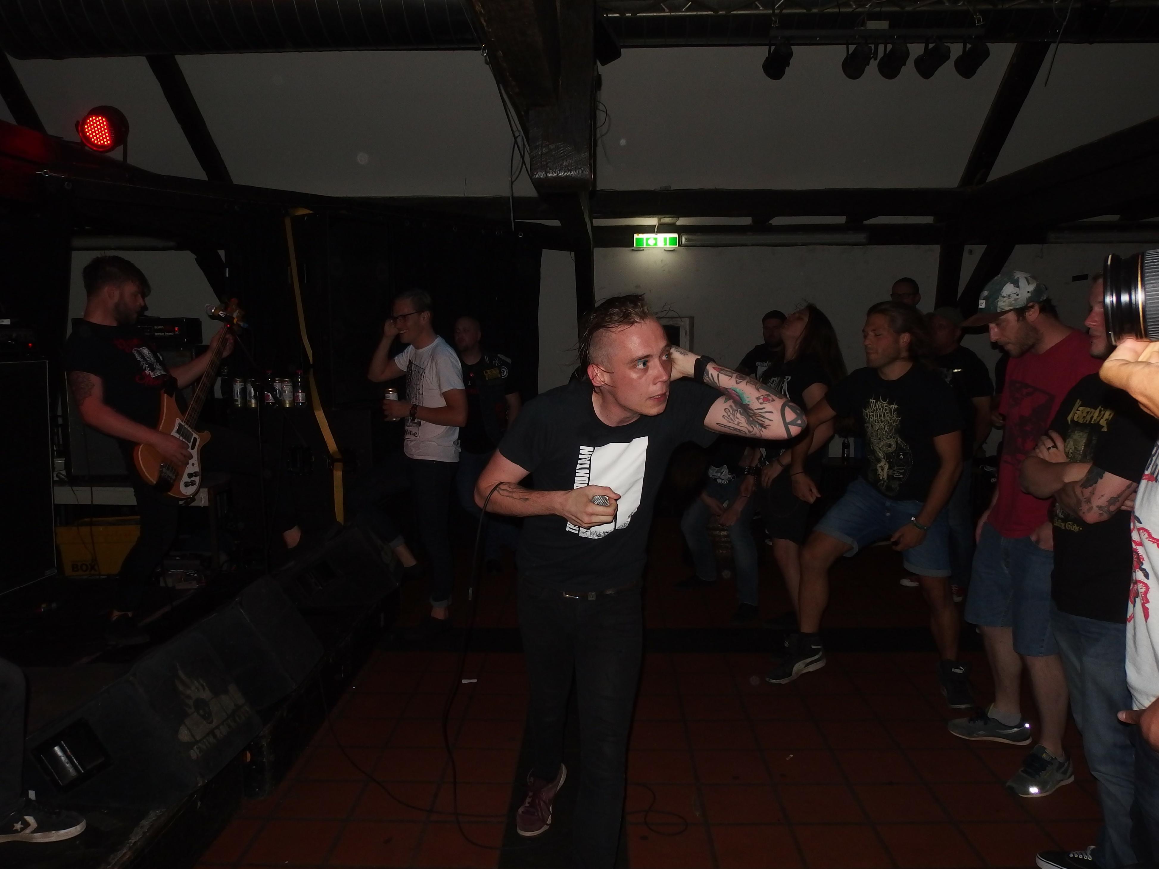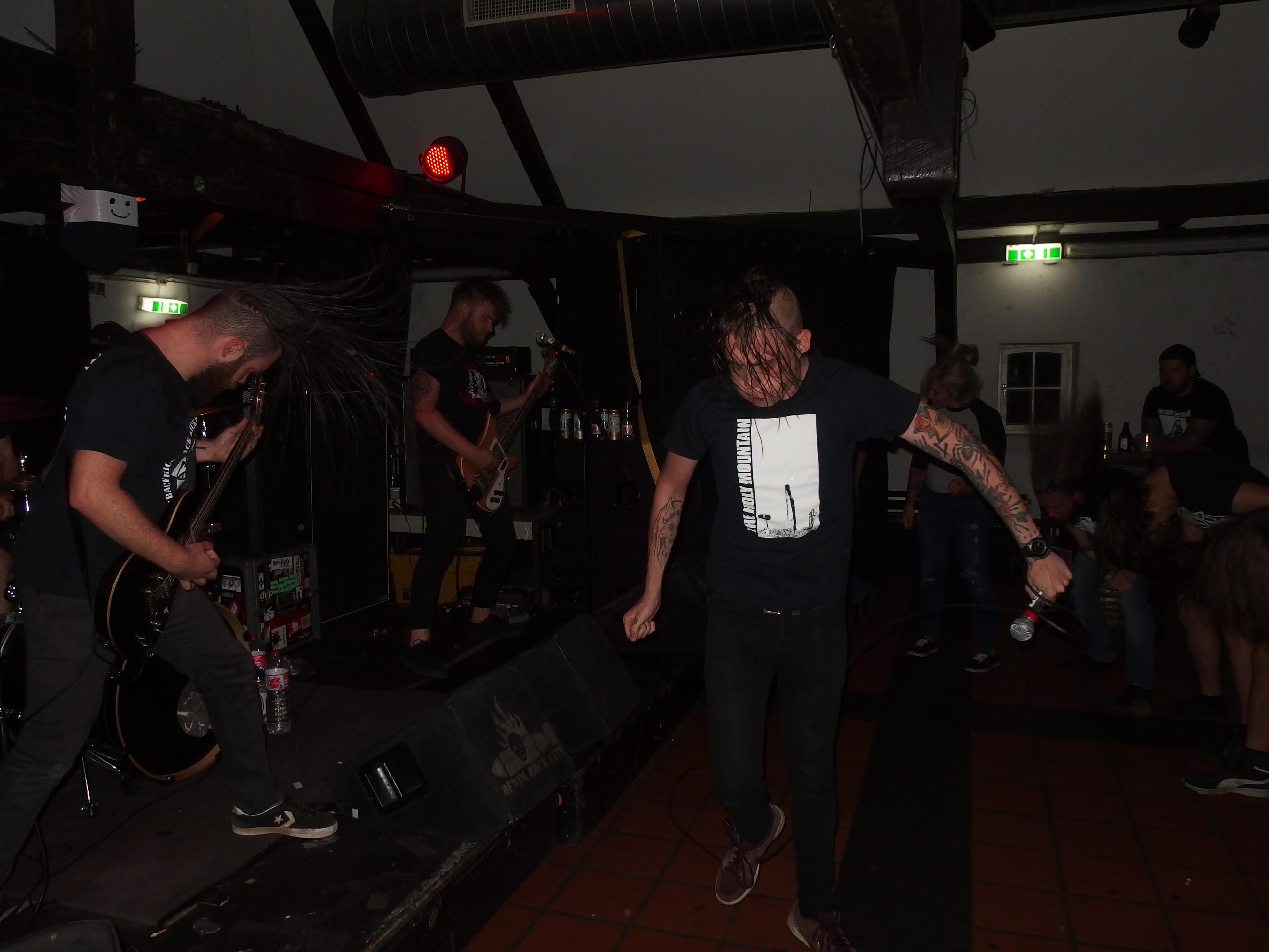 Teethgrinder aus den Niederlanden walzten mit ihrem grindigen Crustcore danach alles weg und hinterließen keine Gefangenen. Im Gegensatz zur ersten Band stimmte hier definitiv alles. Das Zusammenspiel klappte hervorragend. Insbesondere Sänger Jonathan Edwards ist eine richtige Frontsau und performte die ganze Zeit im Publikum. Mit einem Album über das deutsche Label Lifeforce und einer EP (Bandcamp-Link) im Gepäck war auch genug Material da, um das Publikum zu unterhalten. Feines Fest!