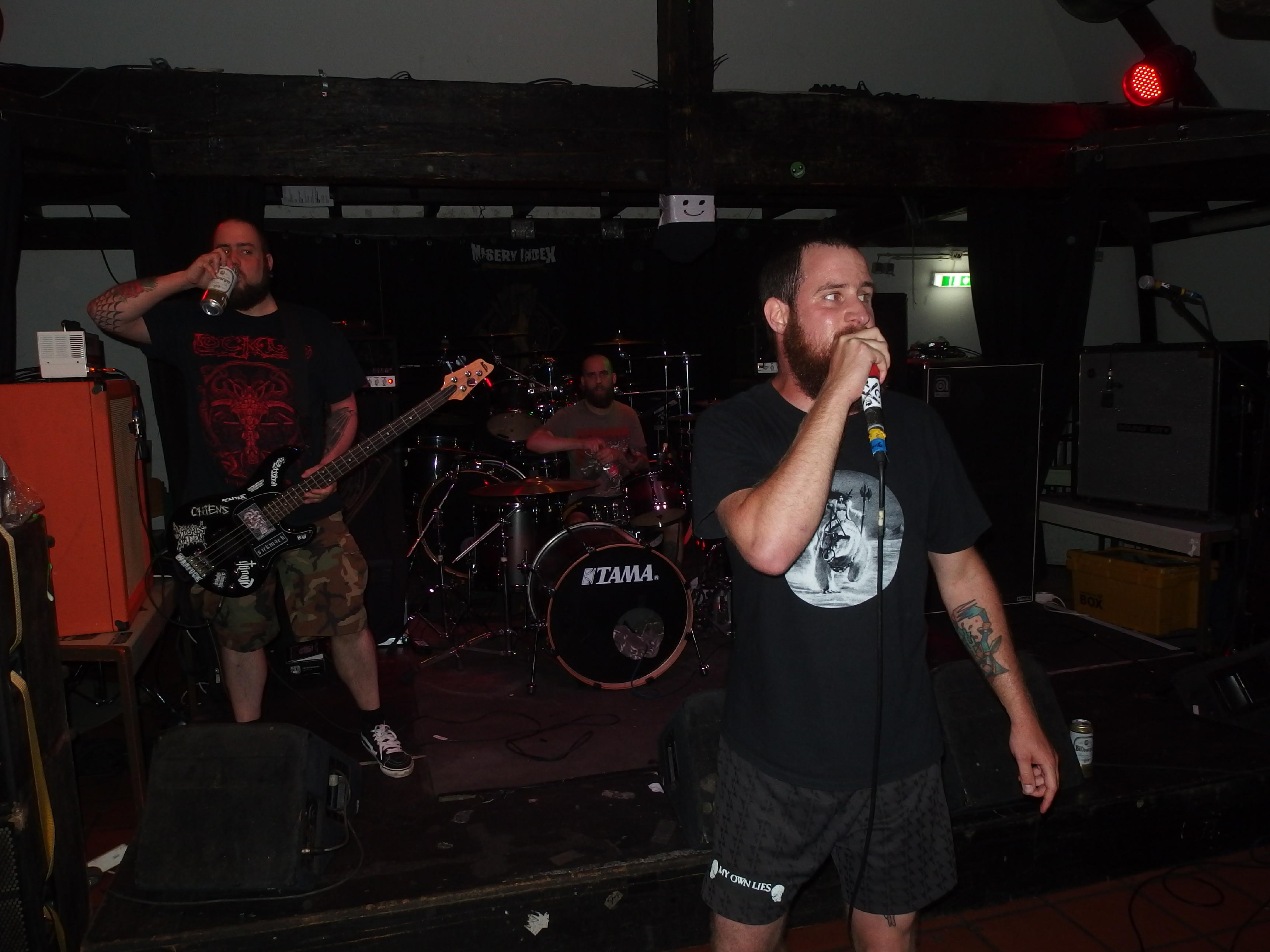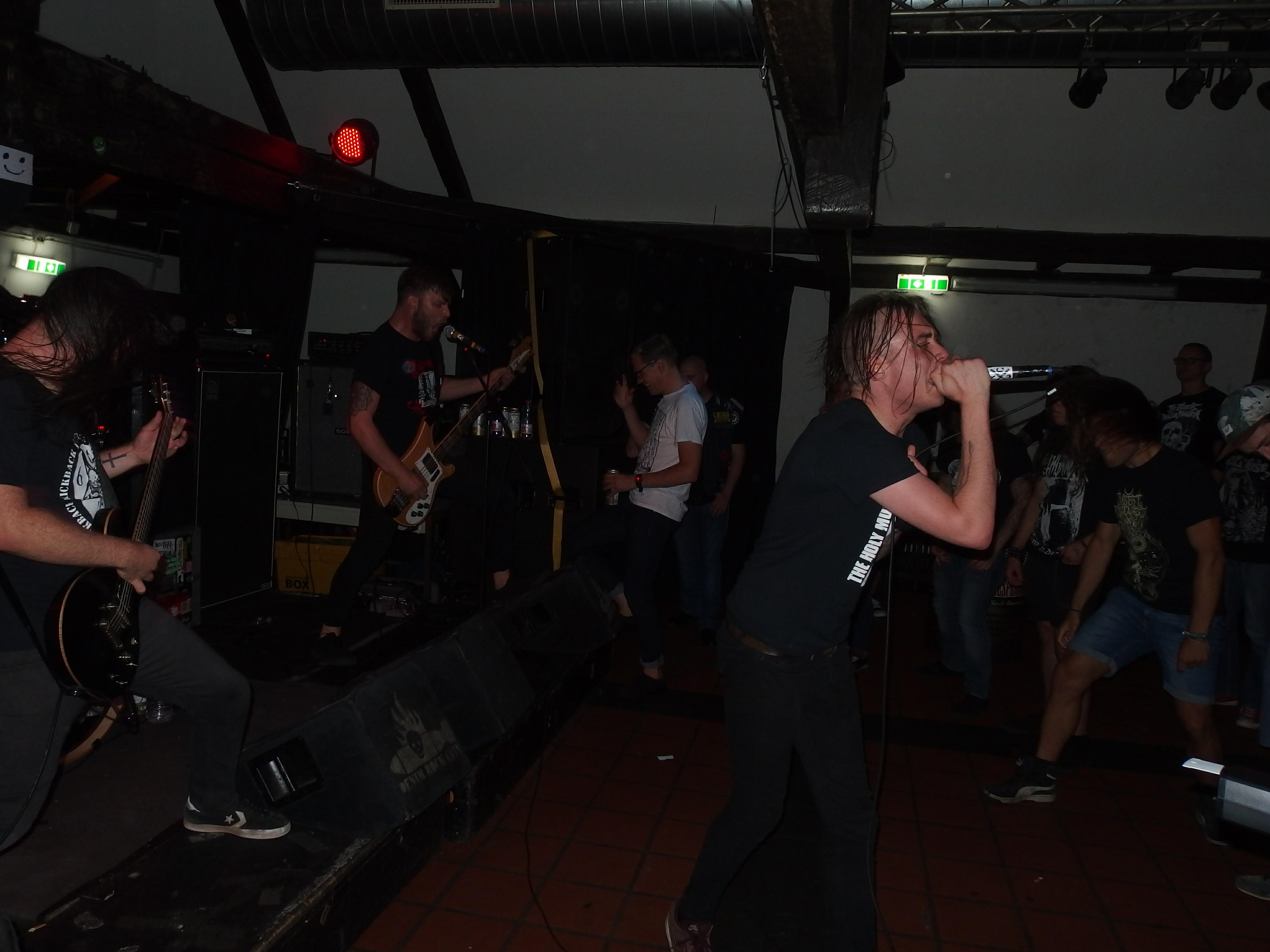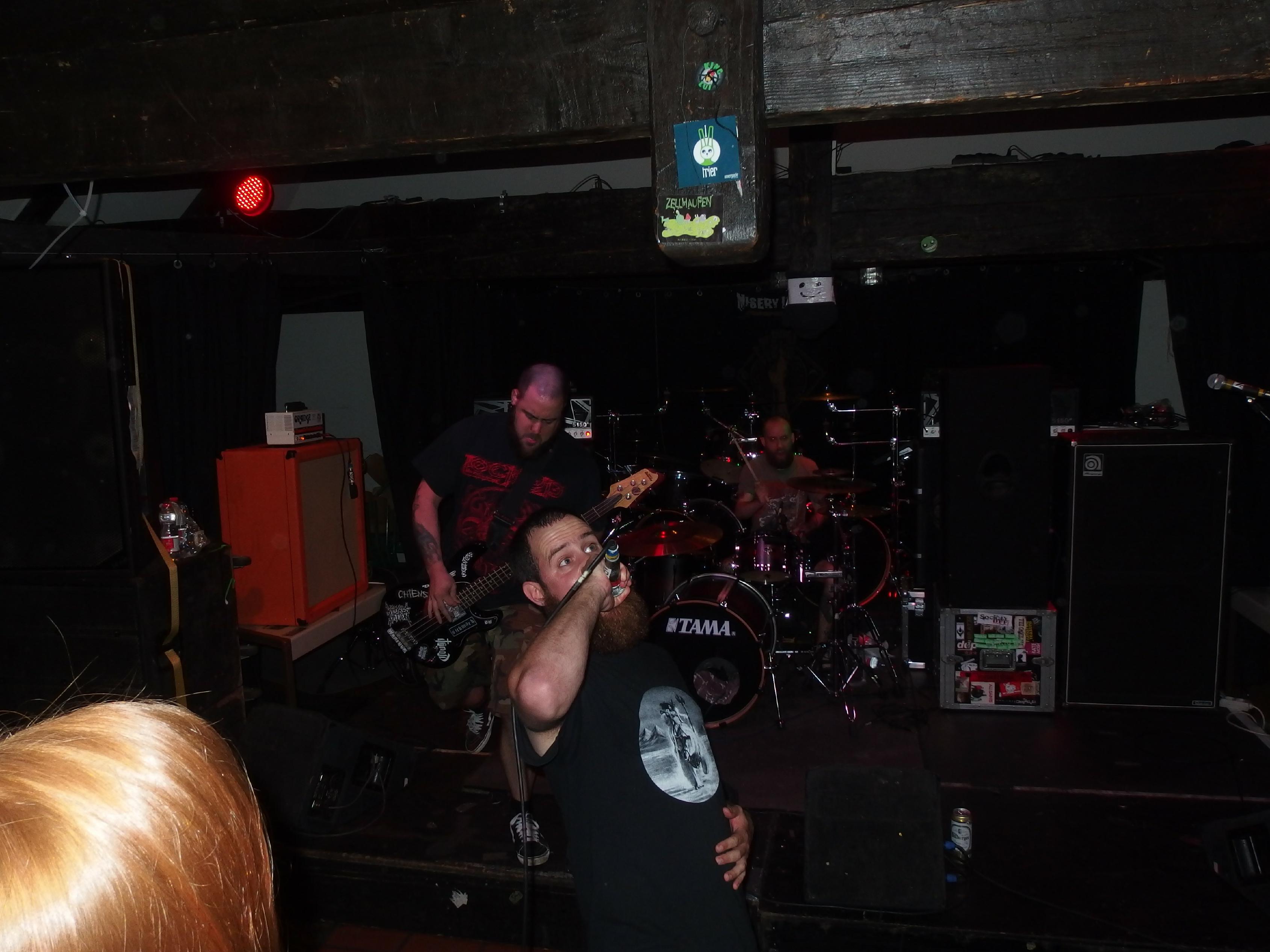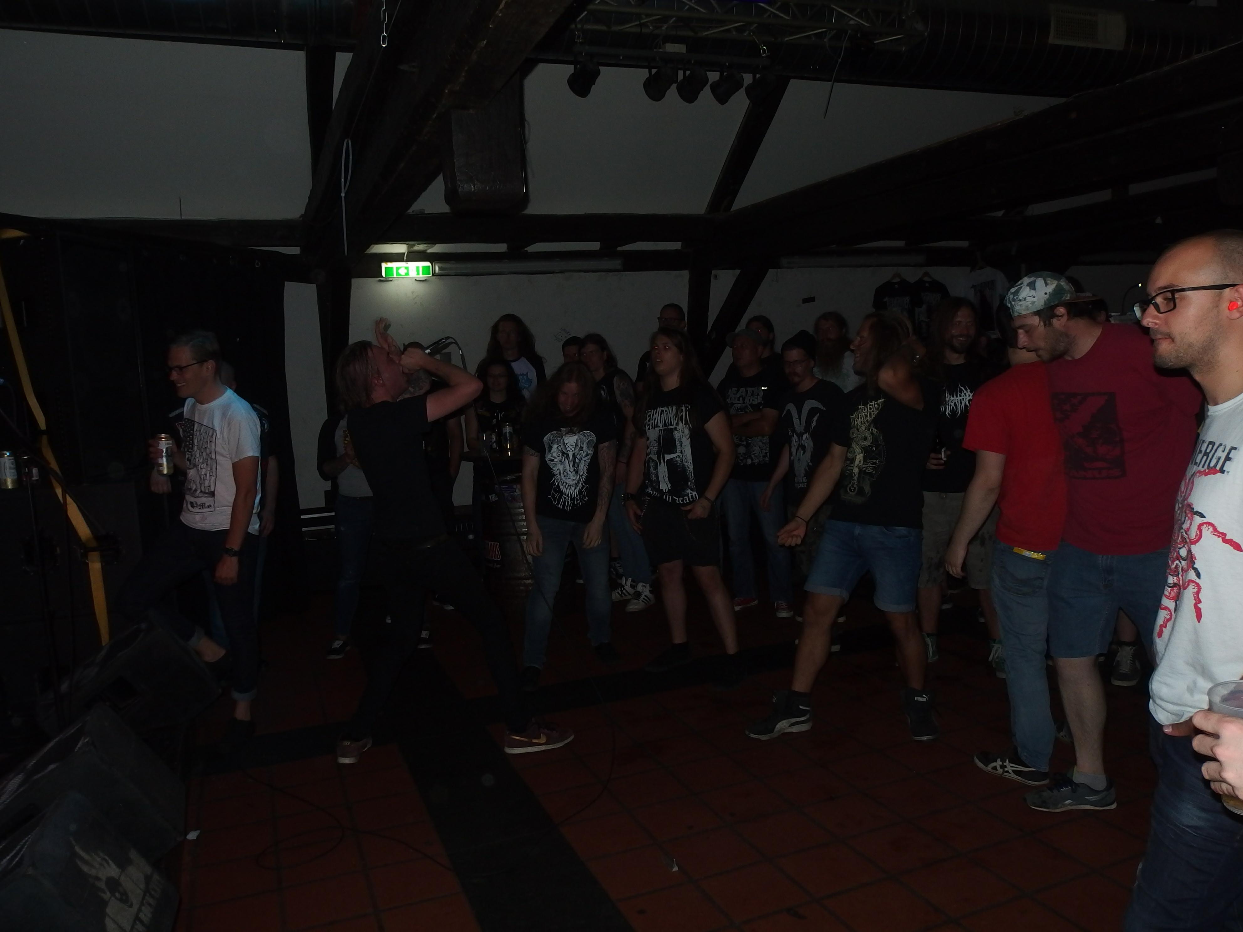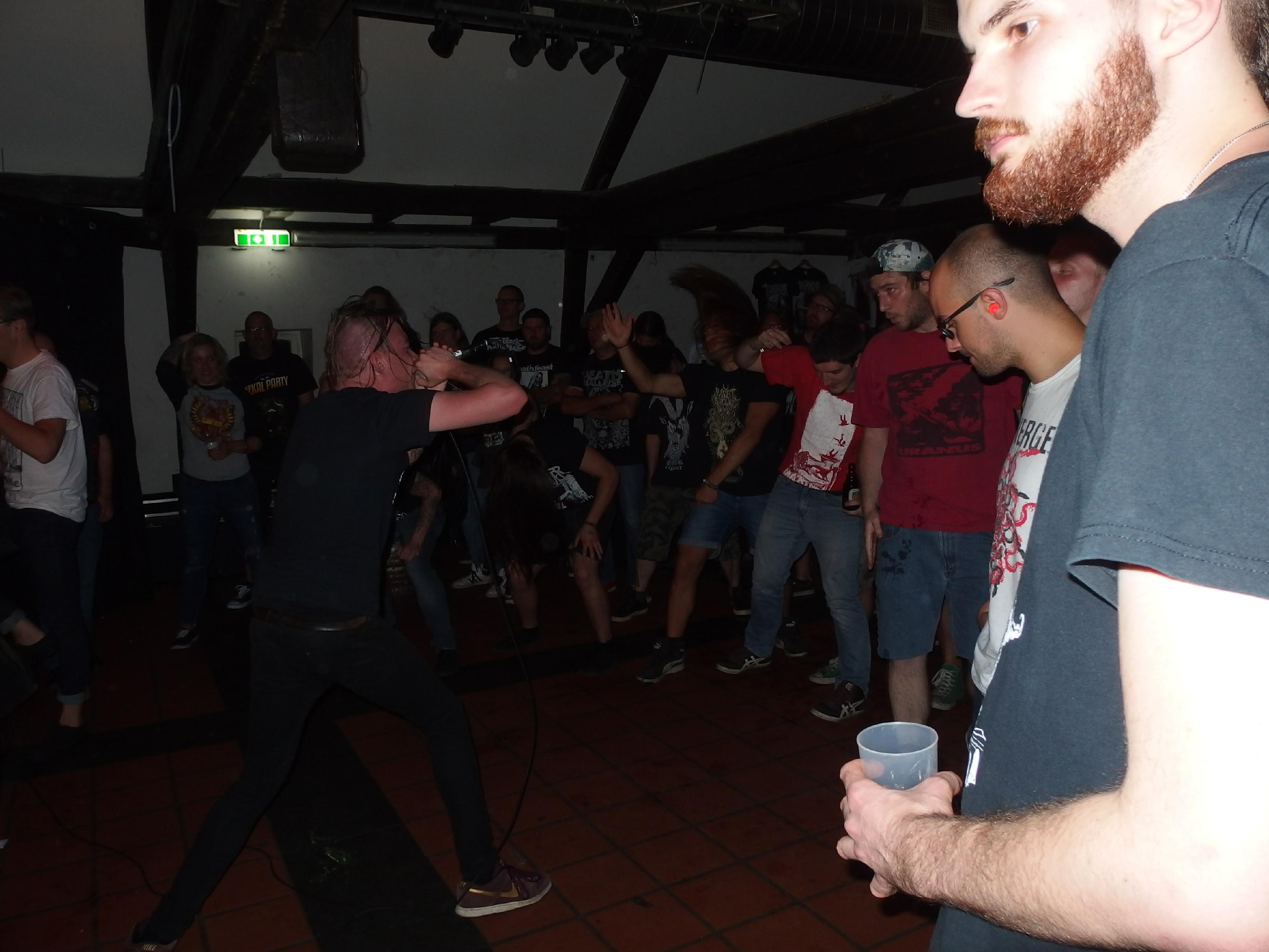 Das Trierer Exil lockte zu einem Grindcore-Abend. Das ist doch was Feines an einem Freitagabend und so entschieden wir uns relativ spontan, die paar km für eine kurze Sause zu überwinden. Wir waren nicht die Einzigen, die von weiter her anreisten, um uns von vier Bands aus dem härteren musikalischen Segment die Ohren ruinieren zu lassen.