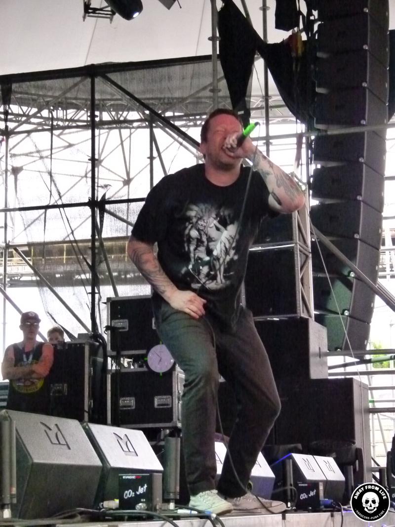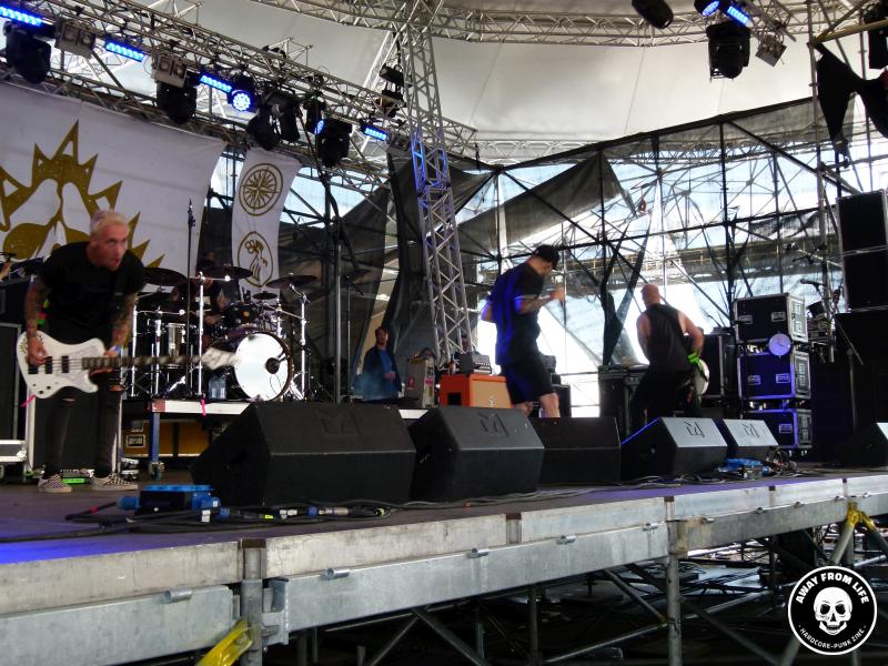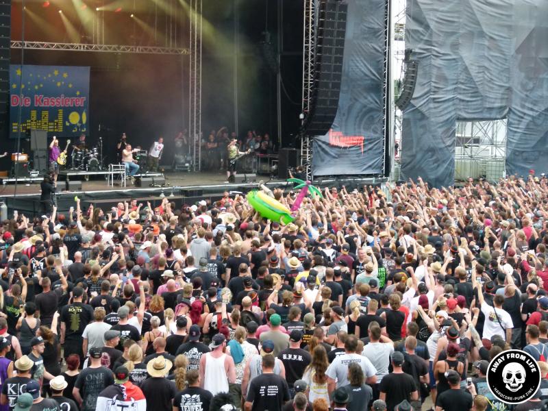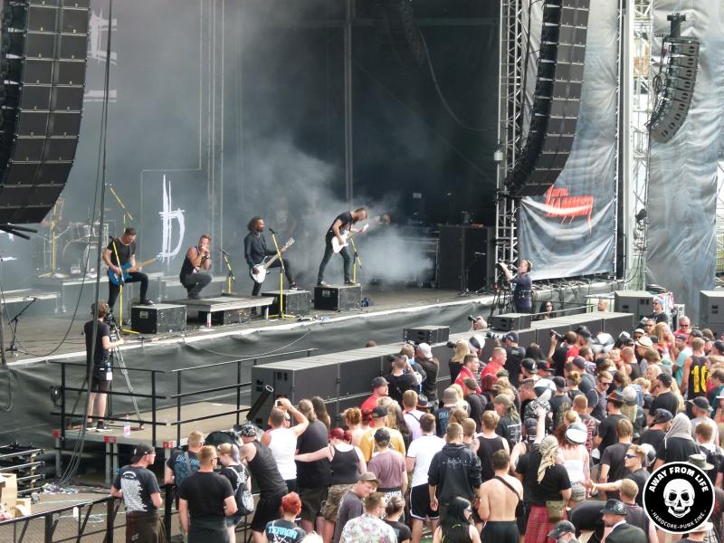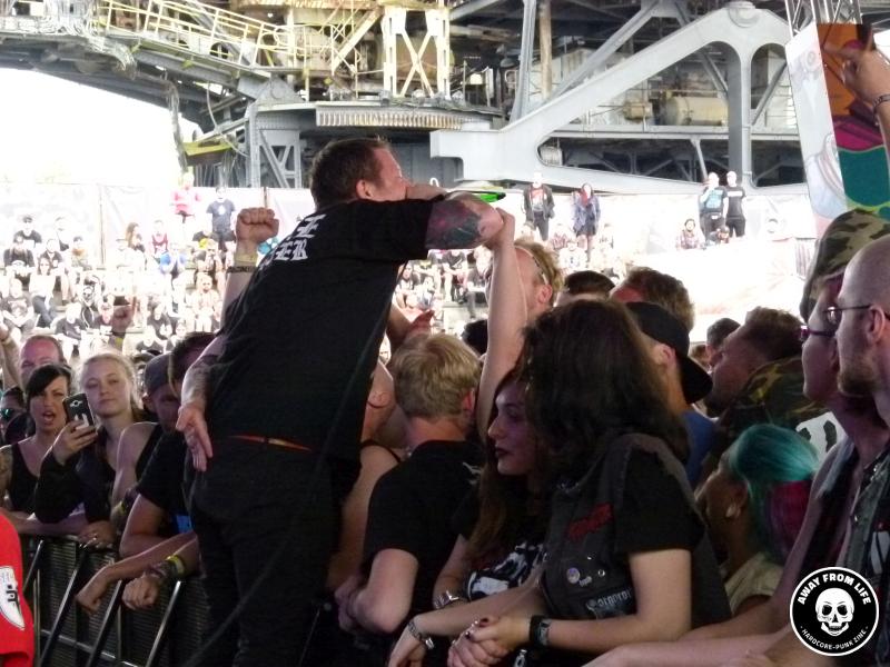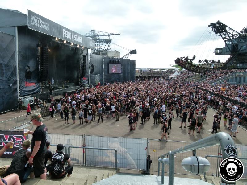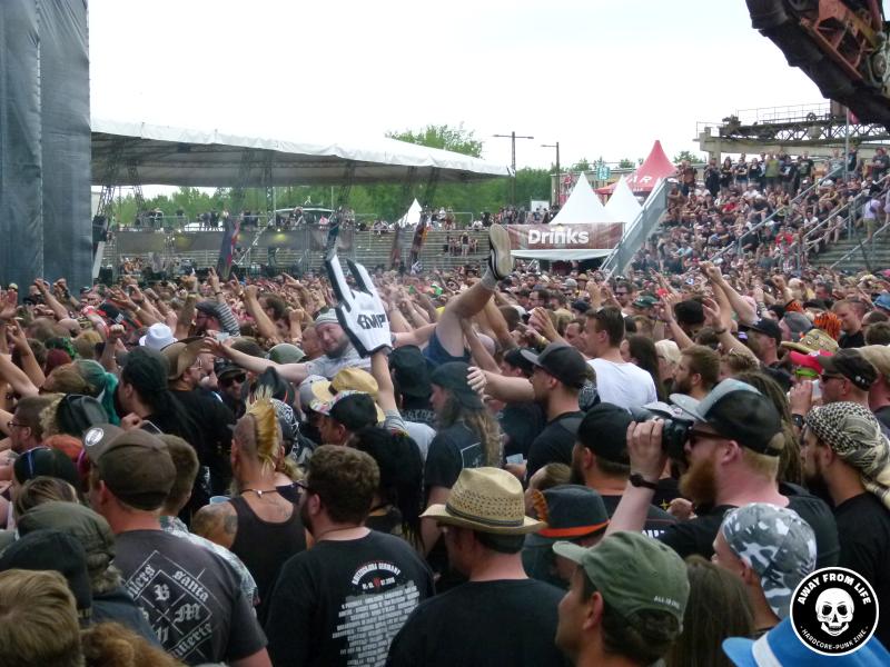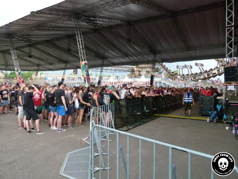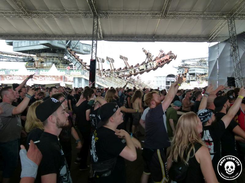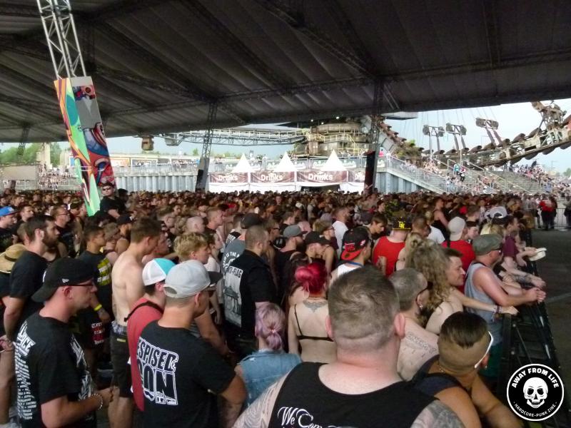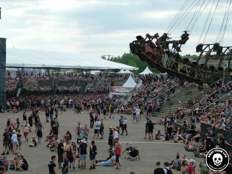 Die Mainstage ist auch eine tolle Location für sich. Aber auch dort fehlten die Matten, ganz klar. Dort einfach bis zum Wellenbrecher und ihr erlebt wieder richtig tobende Mengen. Auch das Pendeln zwischen Hardbowl und Mainstage war ja einfach und ich wage mal zu behaupten, dass viele dadurch auch einfach viel mehr Bands wahrgenommen haben und wahrnehmen konnten, was auch eine schöne Sache ist. Was mir, ich mag mich da auch täuschen, aufgefallen ist, auch im Gespräch mit einigen Menschen, dass der Sound sehr oft , hmm, schlecht will ich nicht sagen, er war schlicht weg oder wahnsinnig verschwommen und nicht präsent. Keine Ahnung ob das am Wind lag, aber am Wellenbrecher fehlte viel und hat dementsprechend auch oft die Stimmung gedrückt. Ich weiß nicht, ist ja nun in dem Sinne keine freie Fläche mehr, wie vorher, wo sich das alles so verflüchtigen kann… Vielleicht wäre es eine Möglichkeit, dass man auf der Höhe vom Mischturm links wie rechts auch nochmal Boxentürme aufbaut, um auch dort wieder alle mitzunehmen. Würde sich bei dem Gelände ja anbieten.