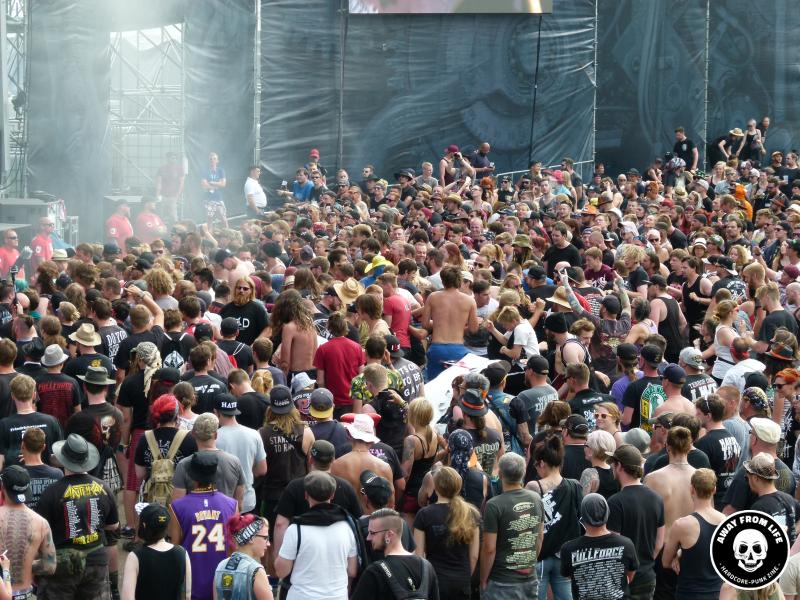 Ich weiß, das hört sich einfach nur nach Kritik an und alles war Sch…, aber nein, das war es definitiv nicht! Das Line-Up mit 82 Bands war super. Dazu sei nochmal gesagt, das man glaube ich nicht verstehen muss, warum so viele einen Alarm gemacht haben, wegen dem vierten Headliner oder „wo bleiben überhaupt die Headliner“ und solch leeres Gesülze. Ganz schlimm. Wenn euch da was nicht passt, dann nehmt das für euch hin und zieht eure Konsequenzen daraus, aber hated und spitted doch nicht so auf den sozialen Netzwerken rum. Und die „freie Meinung“ hat da irgendwie wenig mit zu tun, wenn man überall Gift und Galle spuckt und alles schlecht macht. Manchmal konnte man schon das Gefühl haben, dass da Rufmord begangen wird. Viele Festivals würden sich solch ein Line Up und solch ein Gelände wünschen, bei solch moderaten Ticketpreis.