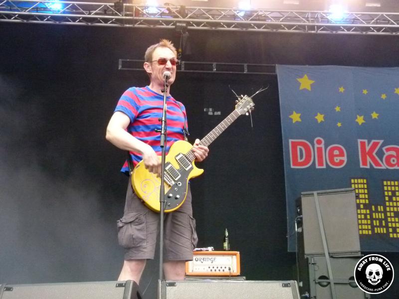 Ein Thema, was wohl auch in Zukunft noch öfter auf Besucher, wie Veranstalter zukommen wird ist das Wetter. Wir hatten ja nun Donnerstag das Glück, dass wir ein paar mal was abbekommen haben, aber das erste Unwetter, als Wolf Down abgebrochen haben, war definitiv nicht schön, aber für alle noch glücklich verlaufen. Ich möchte nicht in der Haut des Veranstalters und der Behörden stecken, wenn es um Abbruch geht. Jetzt das große „Aber“. Der Abbruch bei Wolf Down war viel zu spät und ich vermute, dass wisst ihr jetzt auch und habt deswegen dann auch vorsorglich bei Toxpack abgebrochen. Alles richtig gemacht beim zweiten Mal! Dem gebührt größter Respekt, sich als Veranstalter auf die Bühne zu bewegen und sich diesbezüglich zu äußern mit wütender, trauriger und verzweifelter Stimme und ich glaube wir haben das auch honoriert! Und an die Miesepeter, die das nicht verstehen, die waren wohl 2012 nicht dabei, wenn plötzlich durch Blitzschlag neben einem 50 Menschen umfallen oder Hagel groß wie Tennisbälle auf einen einschlagen. Wir hatten alle richtig Glück, auch die Securities, die mit uns da draußen waren und einfach nur ihren Job machen mussten, den teilweise aufgebrachten Menschen, den teilweise schon verängstigten Menschen und den verwirrten, die nicht mehr wohin wussten, als plötzlich die Taubenei großen Hagelkörner kamen. Ihr Mieseperter seit es, die solche gefährlichen Situationen eskalieren lassen, nicht die Security! Durchatmen, ist alles gut gegangen, alle sich nochmal selbst auf den Prüfstand stellen und nächstes Mal, wenn so etwas passiert, läuft das besser!