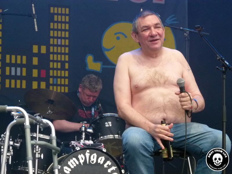 Wie es auf anderen Plätzen war, kann ich nicht beurteilen. Aber ich glaube, wenn man manchmal so die Stimmung eingefangen hat und was teilweise so geredet wurde, dann möchte ich mal mit auf den Weg geben: Leute, wir sind auf dem Festival, um mal aus dem „normalen Leben“ raus zu kommen, zu feiern, abzuhängen, einen trinken, das Leben zu genießen und dann tut man sich vielleicht keinen Gefallen damit, wenn man rumnörgelt, dass nicht an jedem Weg gleich eine Dusche steht, ein eigenes Klosett und am besten noch eine Bardame. Wenn man Bock hat zu duschen, dann steckt man sich ein Pils ein und geht da eben hin und wer kein Bock hat, bleibt eben sitzen – ganz einfach.
