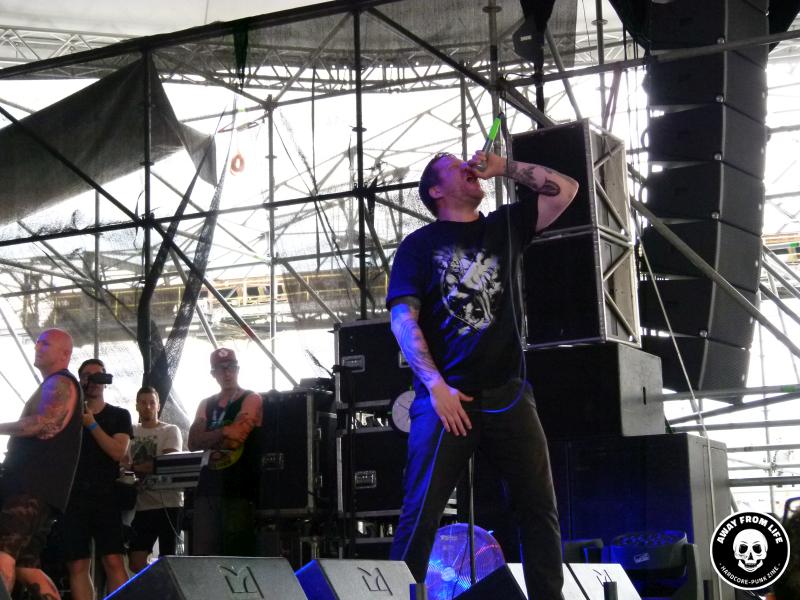 Dann zum Hardbowl und zur Mainstage. Sound Hardbowl war top, vielleicht manchmal etwas zu leise, wodurch der Nachdruck etwas fehlte, aber sonst echt Bombe. Und, ja, der befestigte Boden ist super, weil nix matschig wird, kein Staub in den Atemwegen usw, aber bitte, bitte, bitte packt von vor der Bühne, bis zum Mischpult, Gummimatten hin, weil das ist so beim Tanzen schon um ein vielfaches belastender, wer sich aufs Mett packt, tut sich richtig weh und das hat auch dazu geführt, dass die Menschen viel verhaltener gefeiert haben. Macht den Hardbowl wieder zu einer richtigen Rangelbude, wo man sich wieder beim Tanzen die Schmerzen holt und nicht durch den Fußboden! Beim Splash mag das so ja gehen, aber nicht bei uns! Wir wollen den Bands auch viel zurückgeben, aber so geht das nicht. Vielleicht wäre es auch nochmal eine Sache, den Hardbowl doch insgesamt auch noch wieder etwas dunkler zu gestalten, um etwas mehr Flair rein zu bringen.