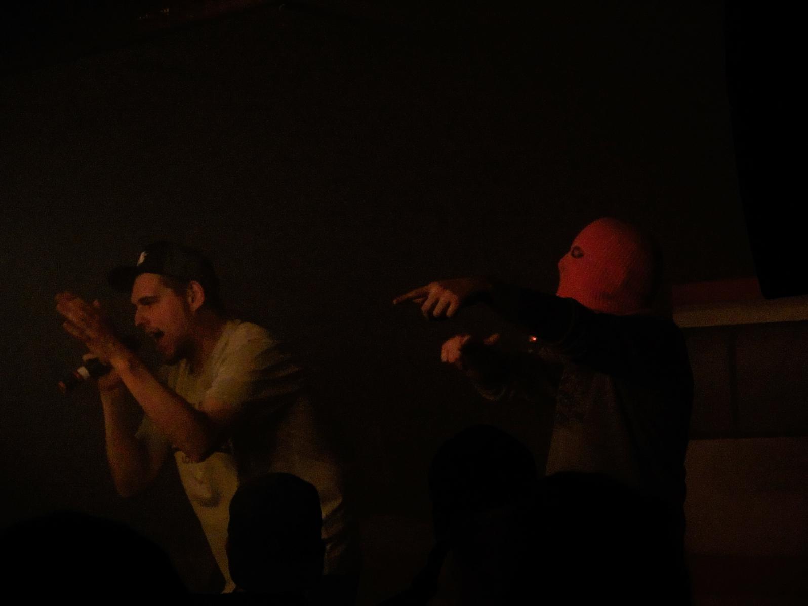 Und dann ging es endlich los. Lange mussten die Saarländer auf die vierköpfige Band warten. Der angekündigte November-Gig fiel leider wegen einer Erkrankung von Johnny Mauser aus, so dass dies quasi ein Nachholgig war und der aktuellen Tour vorangestellt wurde. Mittlerweile hatte sich das altehrwürdige Juz Försterstraße auch merklich gefüllt. Vor der Bühne machte sich ein junges Publikum breit, wie in obig zitiertem Textteil war alles dabei, Hip-Hopper, naja, waren eher selten, Raver konnte ich jetzt nicht so genau erkennen, dafür aber Punker, Kids und Antifa. Los gings mit Kennenlernrunde vom neuen, wirklich superben Album Metropolis (Review hier), läutete einen gut 90-minütigen Gig ein, der mit zum Besten zählt, was ich an Hip-Hop live gesehen habe (war aber auch nicht viel). Und das, obwohl es relativ schnell zu einem Patzer kam. Müsste bei Atmen gewesen sein, als bei der Hook von Johnny Mauser plötzlich ohrenbetäubendes Pfeifen kam. Ist natürlich seltsam, wenn dann die Hook weiter läuft, obwohl der Rapper den Mund nicht mehr bewegt. Die darauf folgende Entschuldigung muss ihm wohl selbst peinlich gewesen sein. Das Hip-Hopper allerdings oft mit Halb-Playback arbeiten ist gemeinhin üblich und ja, manchmal waren ein paar Gesangspassagen doch verdächtig nah an der Platte. Ich bin da immer zwiegespalten, aber zumindest an diesem Abend war das nicht ganz so schlimm.