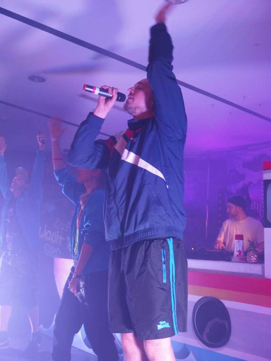Ein paar Worte noch zum Bühnenbild. Dieses stellte ein Schiff dar, an Deck der Spion Y, der den Plattenteller bediente und sehr routiniert aussah. Direkt davor dann die drei Rapper Johnny Mauser, Captain Gips und natürlich Marie Curry, die dazu ja auch noch für den Gesang, insbesondere bei den frühen Songs verantwortlich zeichnet. Den Mittelspot wechselten die drei munter ab, je nachdem, welcher Verse gerade kam. Geboten wurde ein buntes Potpourri aus alten und neuen Hits. Dass das indizierte Flora bleibt nicht kam, war erwartbar, insbesondere weil es ja nur von Gips und Masuer stammt. Mir persönlich fehlte Heben ab Jogginghosentag, das herrlich selbstironische Das Goldene Ticket sowie ihr Überhit Heimat im Herzen. Zur Auflockerung gabs auch ein kurzes DJ-Set, zudem kamen beim Samplertrack Love Will Never Die und später auch noch mal vermummte Gestalten auf die Bühne. Die sahen mit ihren Regenbogenfarben aber nicht sehr furchteinflößend aus. Insbesondere weil der eine klar als Johnny Mauser auszumachen war 😉