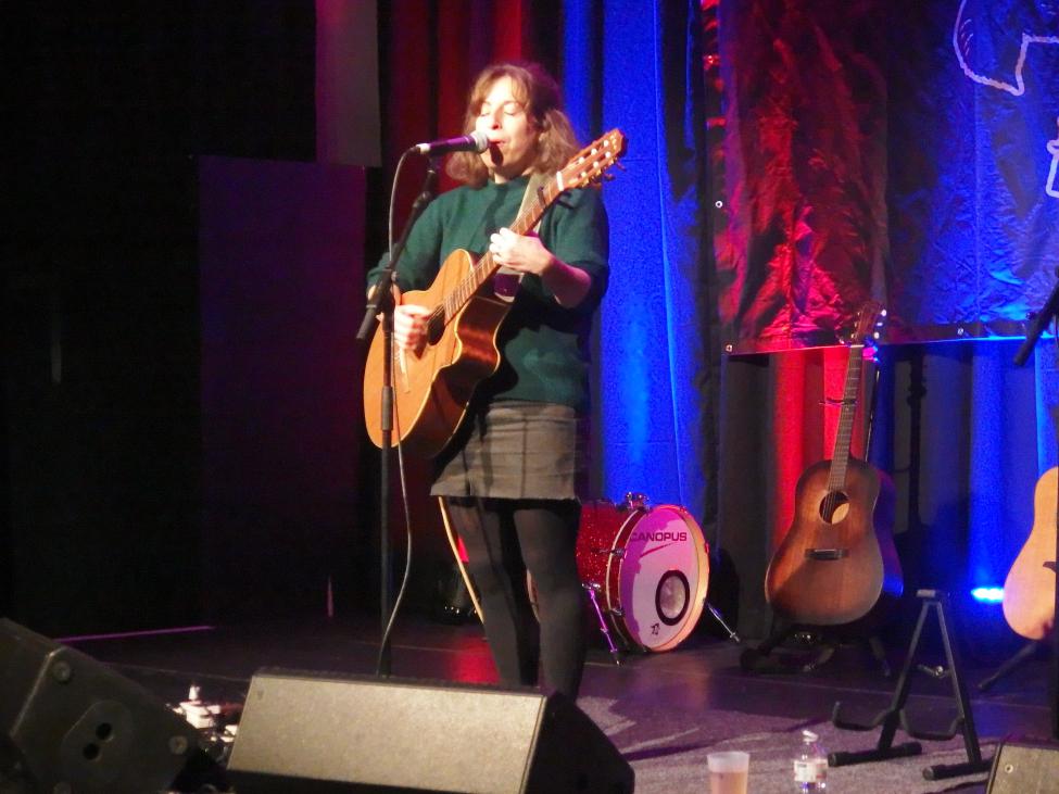 Traditionell komm ich ja immer zwei Songs an nem Donnerstag zu spät, so war es auch heute. Colletti kannte ich so ein bisschen aus meiner Bubble, hatte sie aber noch nie live gesehen und nur als Duettpartner bei Citizen Tim (Review hier) bisher singen gehört. Ihre Eigenbeschreibung lautet: „//sad songs for happy people//“ und ich finde das passt ganz gut, im positiven Sinne. Colletti hat eine schöne, positive Stimme und eine gute Bühnenpräsenz. In der Konzertwoche konnte sie mit zwei ihrer Lieblingskünstler auftreten: Matze Rossi (ex-Tagtraum) und Uli Sailor (ex-Terrorgruppe). Läuft bei ihr kann man sagen. Und auch heute bekam sie mehr als Höflichkeitsapplaus. Ihre erste EP Searching for Former Solace, von der auch die meisten Songs stammten, ist über Barhill Records erschienen und jetzt ausverkauft. Ich hab mir höchstselbst das letzte Exemplar gesichert. Über Spotify kann man aber noch reinhören 😉