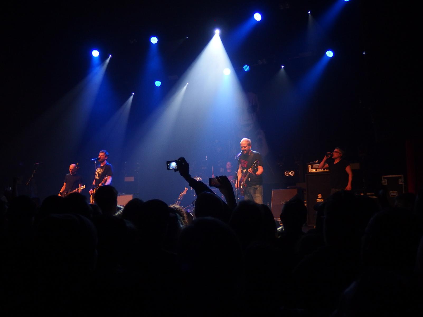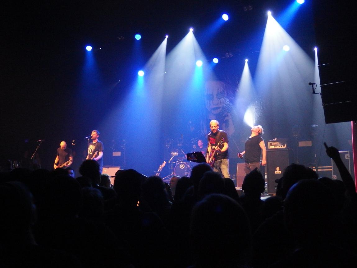 Fuck, das war vielleicht ein Gig! Los gings mit Silberblick & Scherenhände und natürlich hatten sie Frau Wolf eingeladen, die dann auch ihre Gesangeskünste zum Besten gab. Ich habe mal ein paar von ihren Solosachen gehört, aber ehrlich gesagt, die können gegen das Pascow-Lied überhaupt nicht anstinken. Pogo von der ersten Minute an, leider gelangen mir deshalb auch keine tollen Fotos, aber wir sind ja immer noch ein Fanzine und keine Hochglanzpostille. Weiter gings mit Ich, Jello Biafra und das WOM. Bei The Weltordnung is the fuck wurde genialerweise noch Jenny from the Block mit eingebaut. Und weiter ging der Ritt durch die Hölle, also durch so gut wie alle Schaffensperioden der Bandgeschichte. Pogo, Crowdsurfing… Bier- und Pfeffi-Nachschub gabs dann von der Band geliefert in die ersten Reihen. Eine nette Geste war auch, das Bier zum Mercher durchreichen lassen. Mittlerweile klappte es auch wieder an den Theken. An Gästen kam auch Nadine Nevermore auf die Bühne, die gekonnt ins Mikro kreischen durfte.