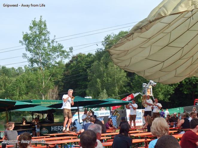 Seit Wacken ist es offensichtlich usus geworden, eine Blaskapelle die Festivals eröffnen zu lassen. So auch hier, wo dies die Donautaler übernahmen. Viel war bei der Eröffnung noch nicht los. Die Bierbänke füllten sich aber bei diesem Prachtwetter relativ schnell.