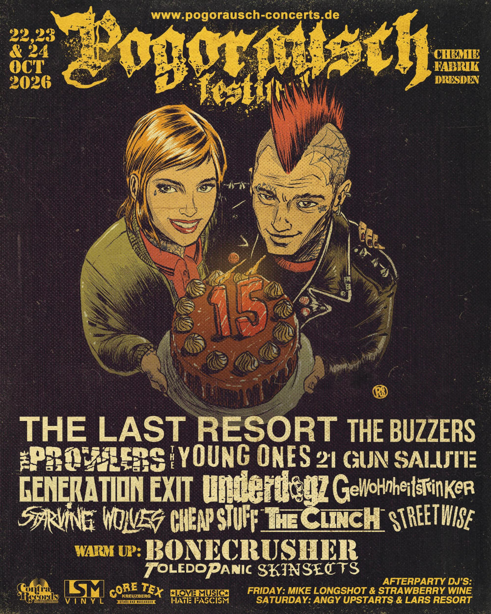 Das zweitägige Festival findet am 23. und 24. Oktober 2026 einmal mehr in der Chemiefabrik in Dresden statt. Mit dabei sein werden in diesem Jahr unter anderem The Last Resort, The Young Ones, Gewohnheitstrinker und Starving Wolves.