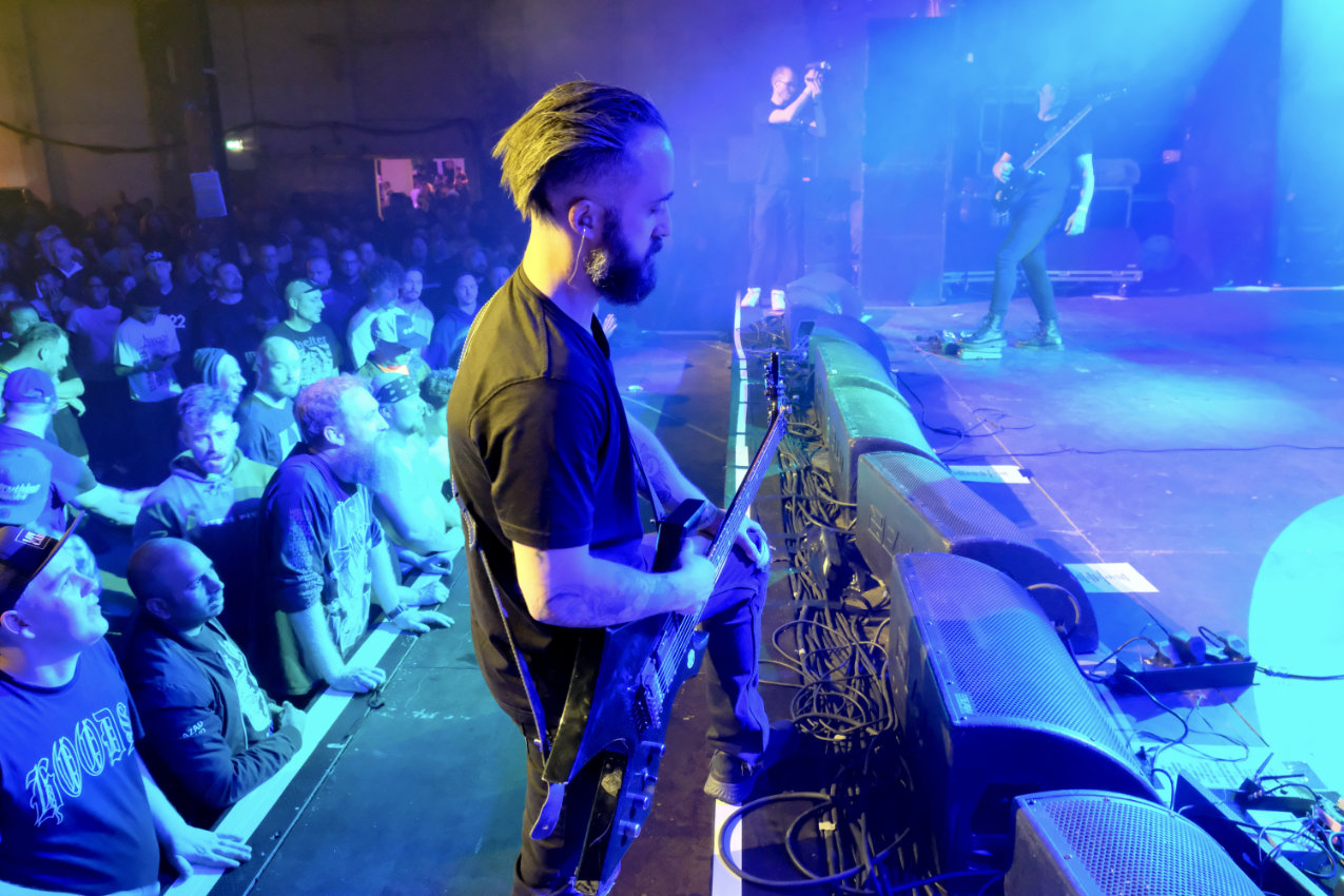 Nach der Show war mir klar, dass ich bei den weiteren Bands meinen direkten Platz zum Fotografieren vor der Bühne räumen musste. Den Fehler wie beim Shelter-Gig 2019 vor der Bühne zerquetscht zu werden (siehe The Sound Of Revolution 2019) und möglicherweise Schäden an der Kamera in Kauf nehmen zu müssen, wollte ich nicht noch einmal machen. Es war eine weise Entscheidung, wie sich herausstellte.