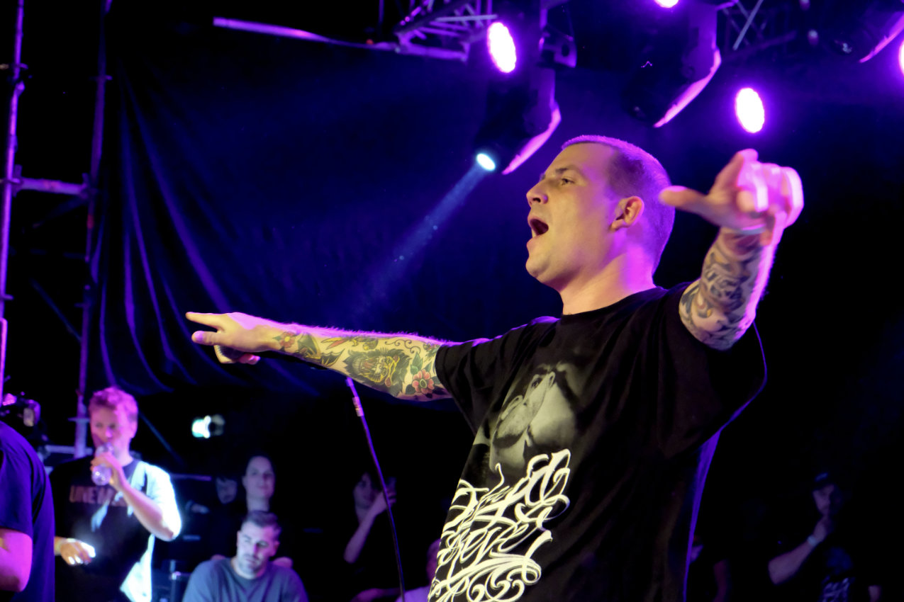 Auf zwei Hardcoreshows folgten Evil Conduct. Die Herren des schon gesetzteren Alters brachten die Anhänger des Oi-Punk in Laune. Ich hatte mich sehr auf sie gefreut, war aber etwas enttäuscht, was jedoch nicht an der musikalischen Qualität lag. Nachdem bei den Bands davor ordentlich was los war, ging es bei Evil Conduct beschaulicher zu. Der enge Kontakt zum Publikum fehlte. Zugegeben, es kann auch an mir gelegen haben. Seit 11 Uhr nonstop unterwegs zu sein, soviel in sich aufnehmen… die Luft war raus. Also runter von der Bühne, schauen wo die bekannten Gesichter so steckten und sich einen Moment hinsetzen. Abseits der Bühne wurde in der Food Hall die legendäre Party zelebriert. Die bekannten DJ`s legten Hits der 80er und 90er Jahre auf zu denen ausgelassen getanzt und gesungen wurde.