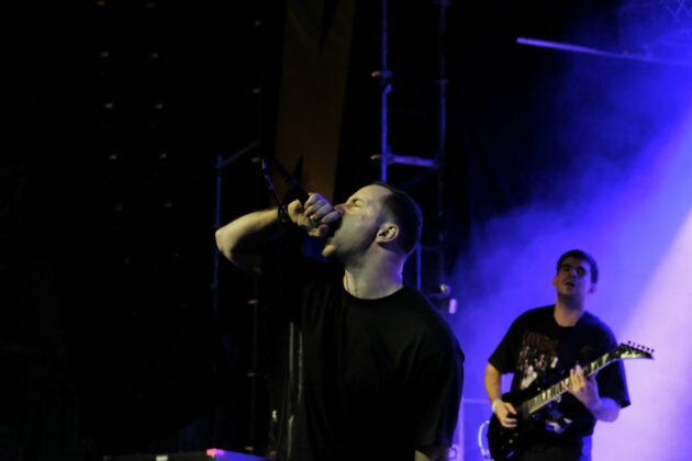 Mein Energielevel war trotz der Pause auf ein Minimum geschrumpft. Kurz spielte ich mit dem Gedanken, die Kamera im Locker zu verstauen, einen Platz auf der Treppe gegenüber der Bühne einzunehmen und von dort aus das Spektakel zu verfolgen. Aber nein… wofür war ich denn da?! Also die letzten Kraftreserven mobilisiert, ab zur Bühne und weiterging`s mit dem Fotografieren. Zumindest einige Bilder wollte ich einfangen. Ich bin froh mich dazu entschlossen zu haben, nach den ersten Gitarrenriffs war die Energie zurück und ich in meinem Element. Backfire! machten dort weiter, wo Integrity aufgehört hatten und rissen alle in ihren Bann.