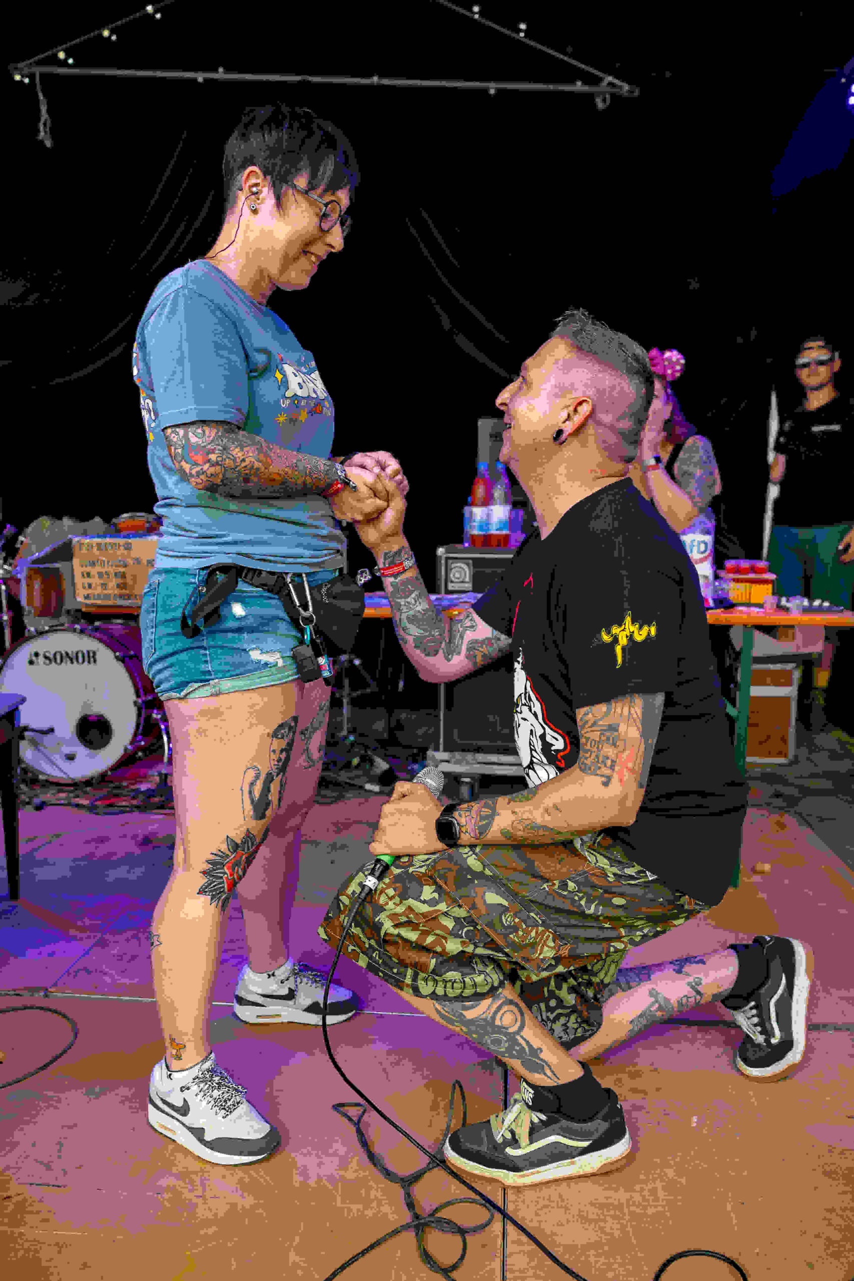 Es ist nun mal so, dass Silke und ich seit sechs Jahren ein Paar sind. Als wir uns kennenlernten, sprachen wir über Musik, und es stellte sich heraus, dass wir beide Tickets für die Riez hatten und jeder alleine hinfahren wollte. Bei unserem ersten Date legte sie mir ein laminiertes Timetable hin (das macht sie auch heute noch). Als ich sah, was sie alles sehen wollte, war ich noch faszinierter. Zwei Wochen darauf fuhren wir dann gemeinsam hin, teilten uns einen Schlafplatz im Auto, und somit war die Riez unser erstes gemeinsames Festival. Der Rest ist Geschichte.