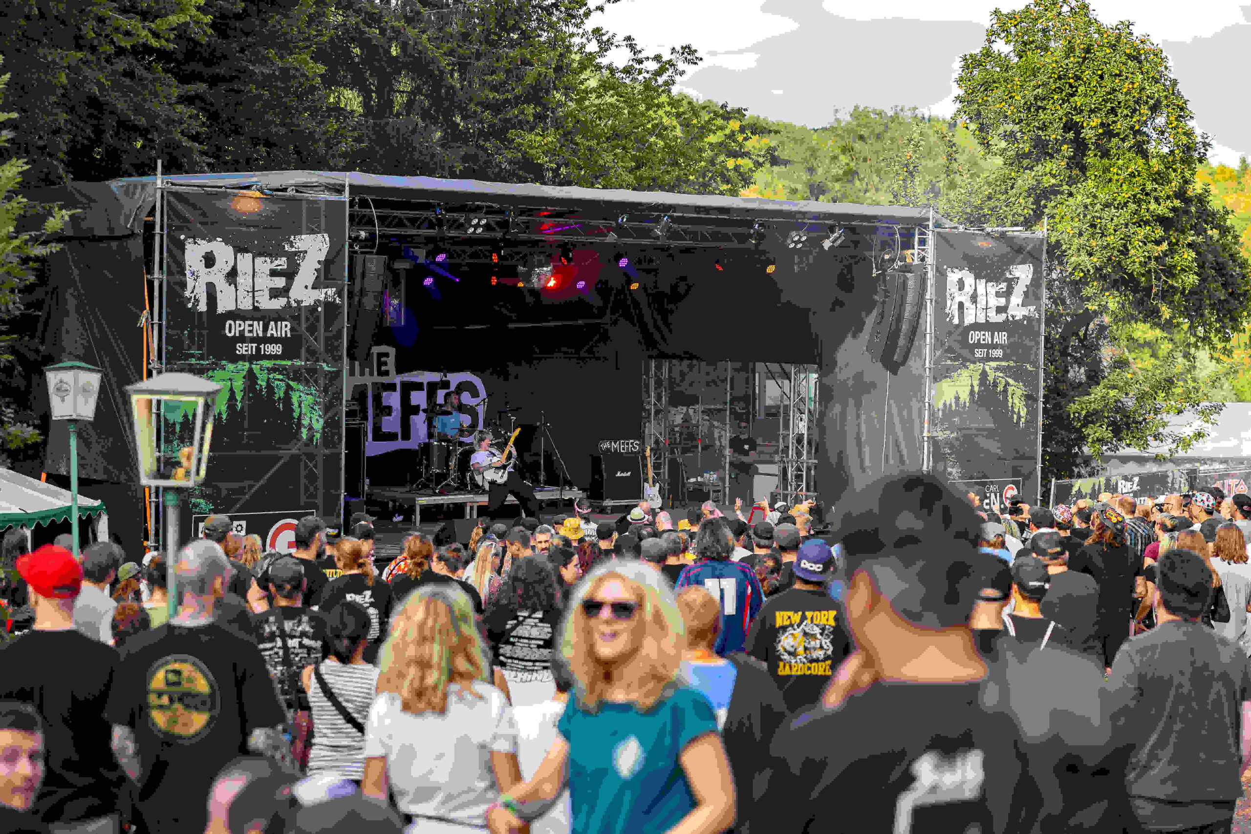Obwohl die Band mir mehrmals empfohlen wurde, gefiel sie mir auf dem Jera null. Ich ging da nach zwei, drei Liedern. Lag es daran, dass es so früh war, oder dass die Bühne für die zwei Musiker viel zu groß war und viel zu wenig Leute da waren? Oder lag es an meiner Stimmung? Ich weiß es nicht. Aber ich muss jetzt echt eine Lanze brechen. Was The Meffs auf der Riez aufs Parkett legten, war mehr als geil. Hier zündeten sie sofort, und das beim ganzen Publikum.